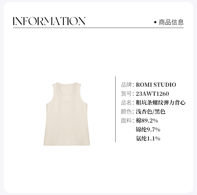 ROMI STUDIO“率性基础"粗坑条螺纹圆领弹力针织吊带背心23AWT1260