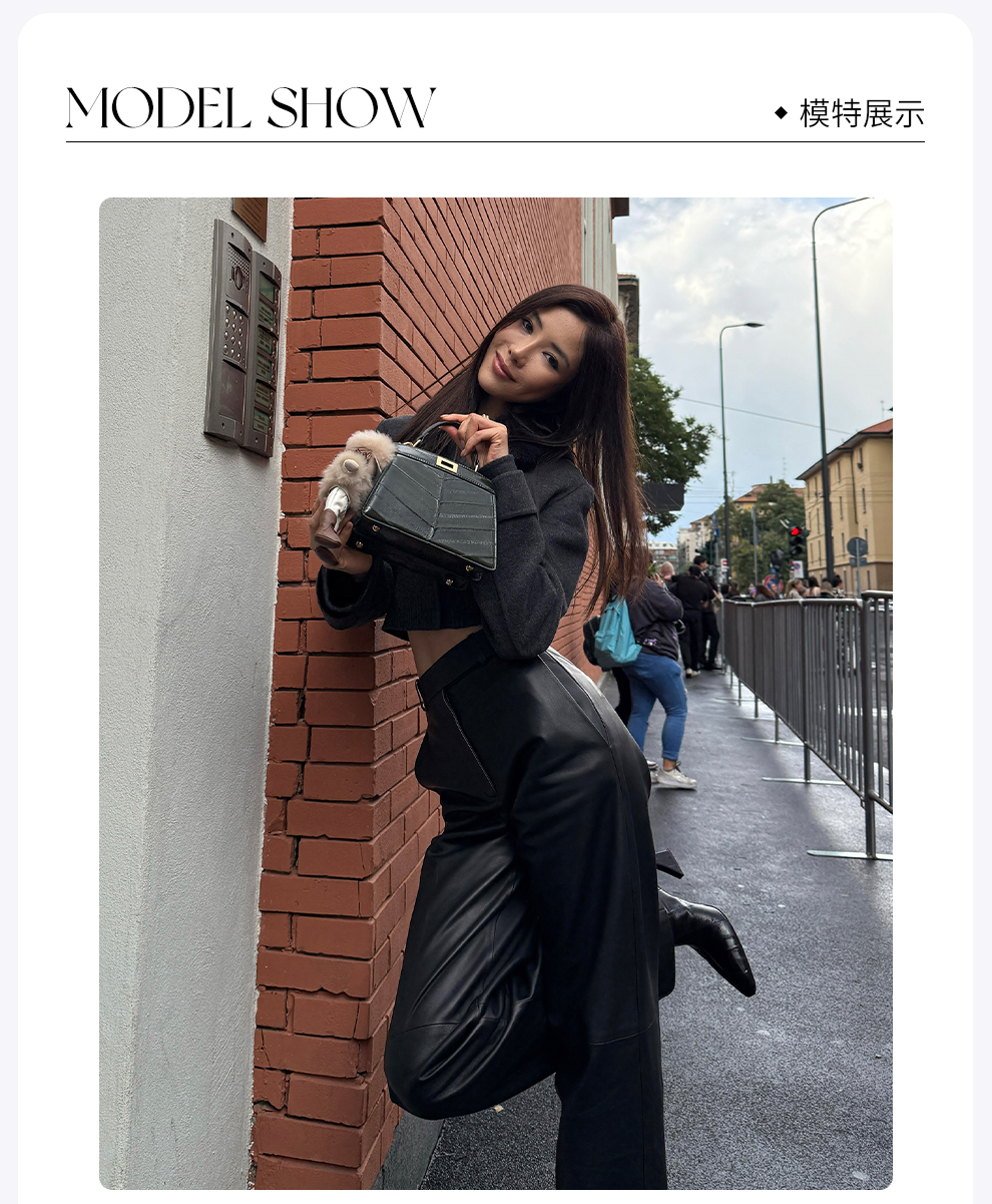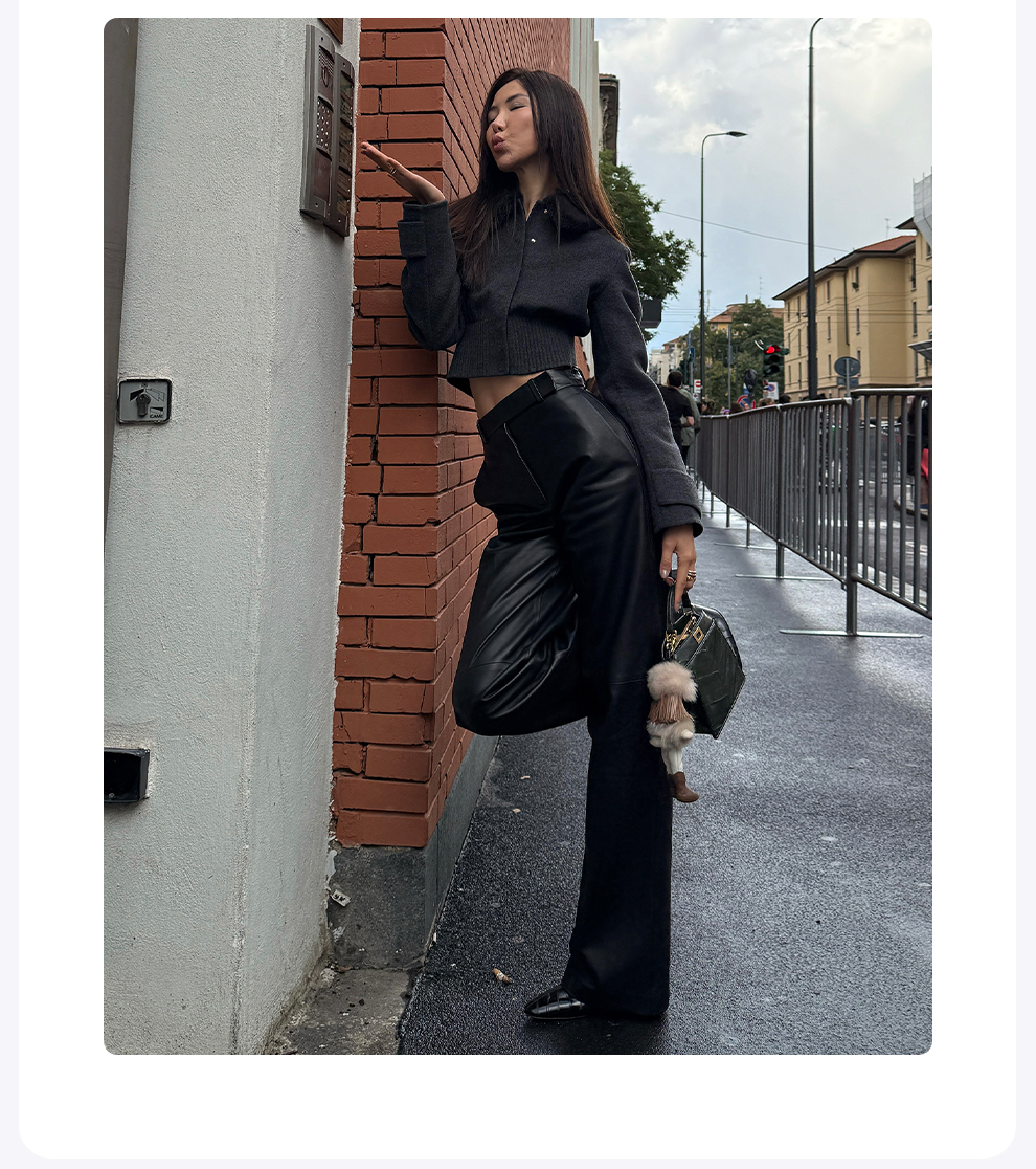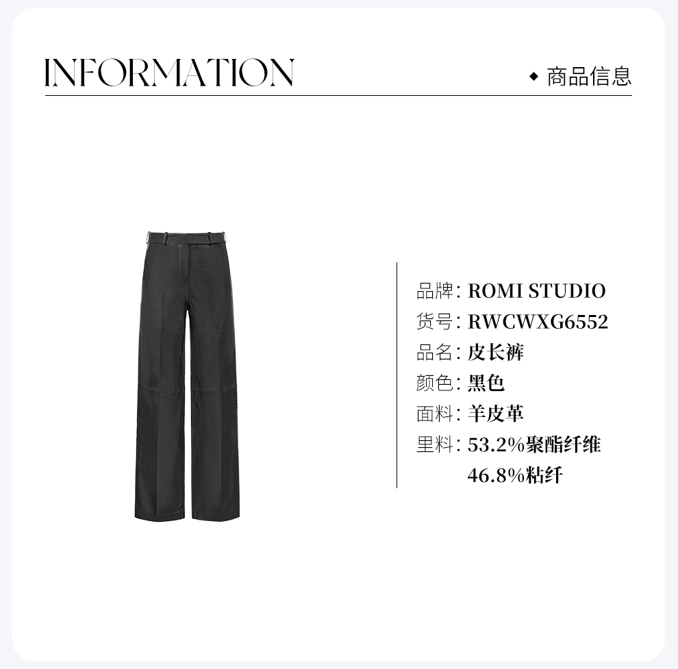 ROMI STUDIO “时装周皮裤” 法国进口小羊皮扣袢式皮裤 RWCWXG6552