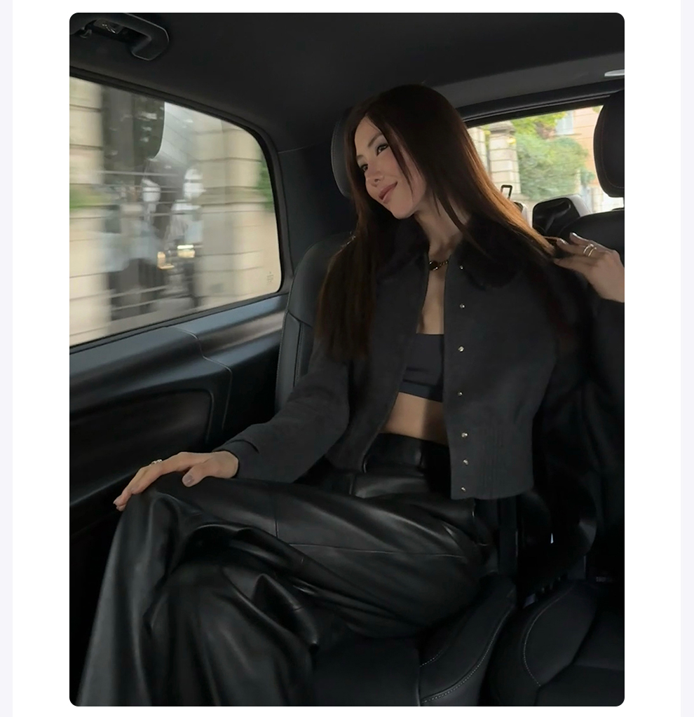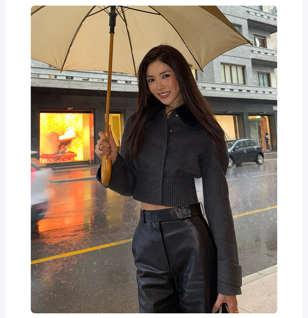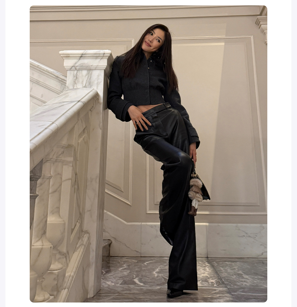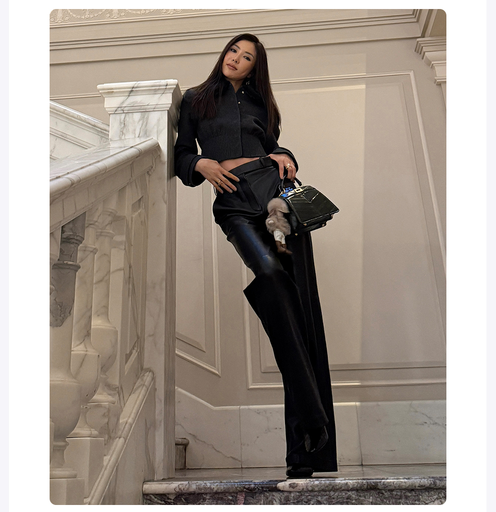 ROMI STUDIO “时装周皮裤” 法国进口小羊皮扣袢式皮裤 RWCWXG6552