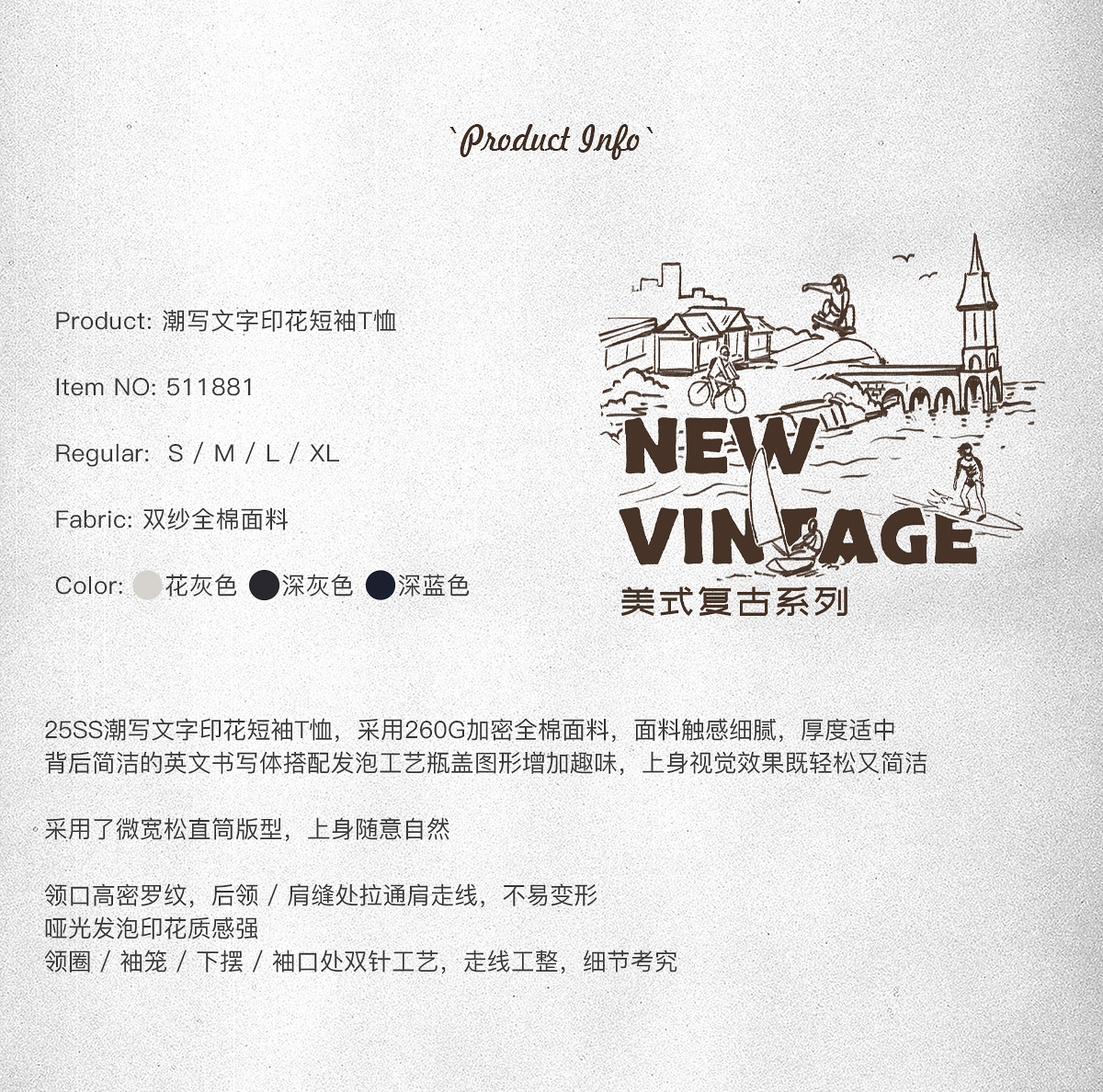 714street7A抗菌吸湿速干短袖2026夏季美式复古纯棉印花情侣T恤男