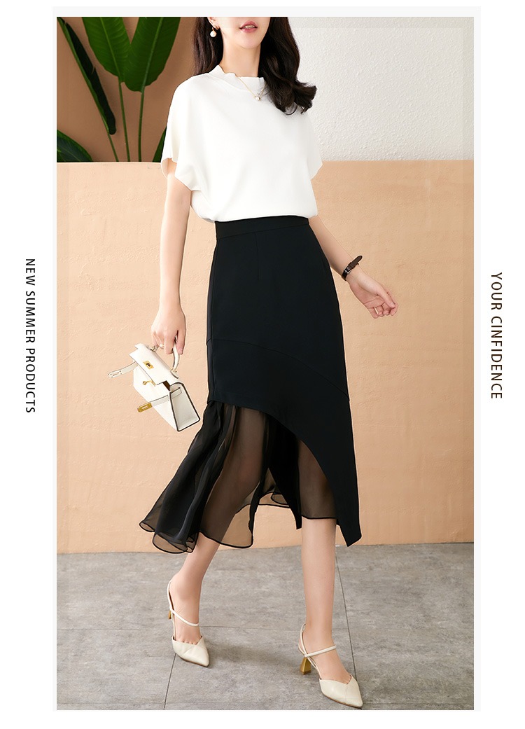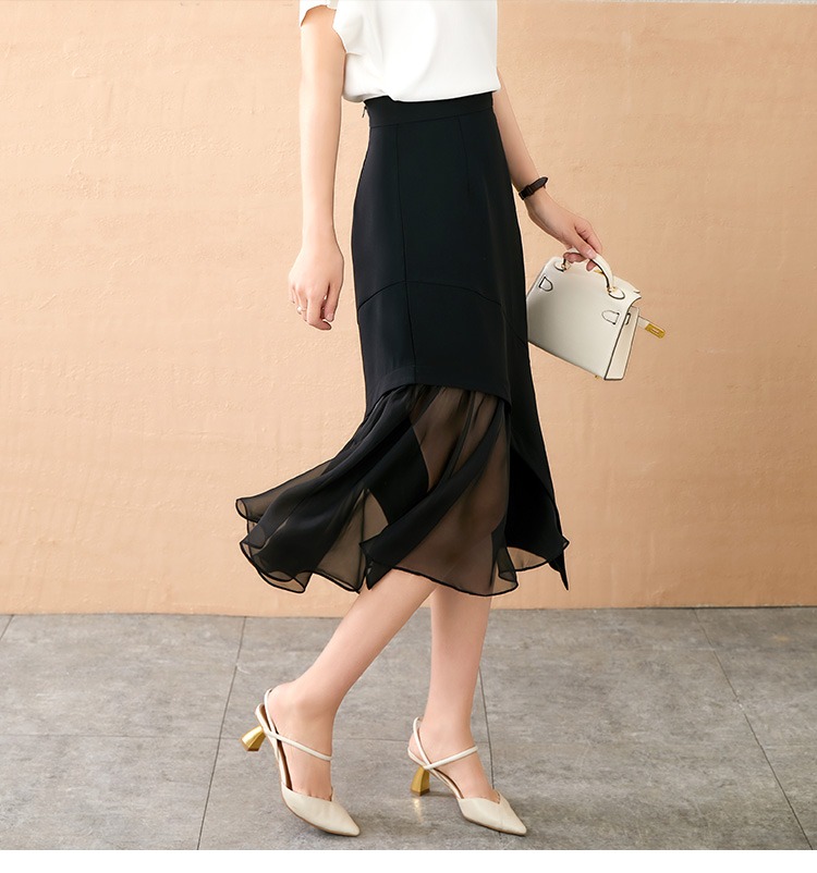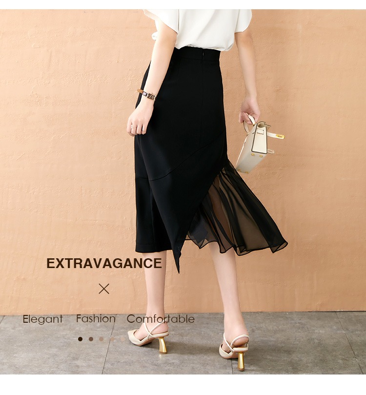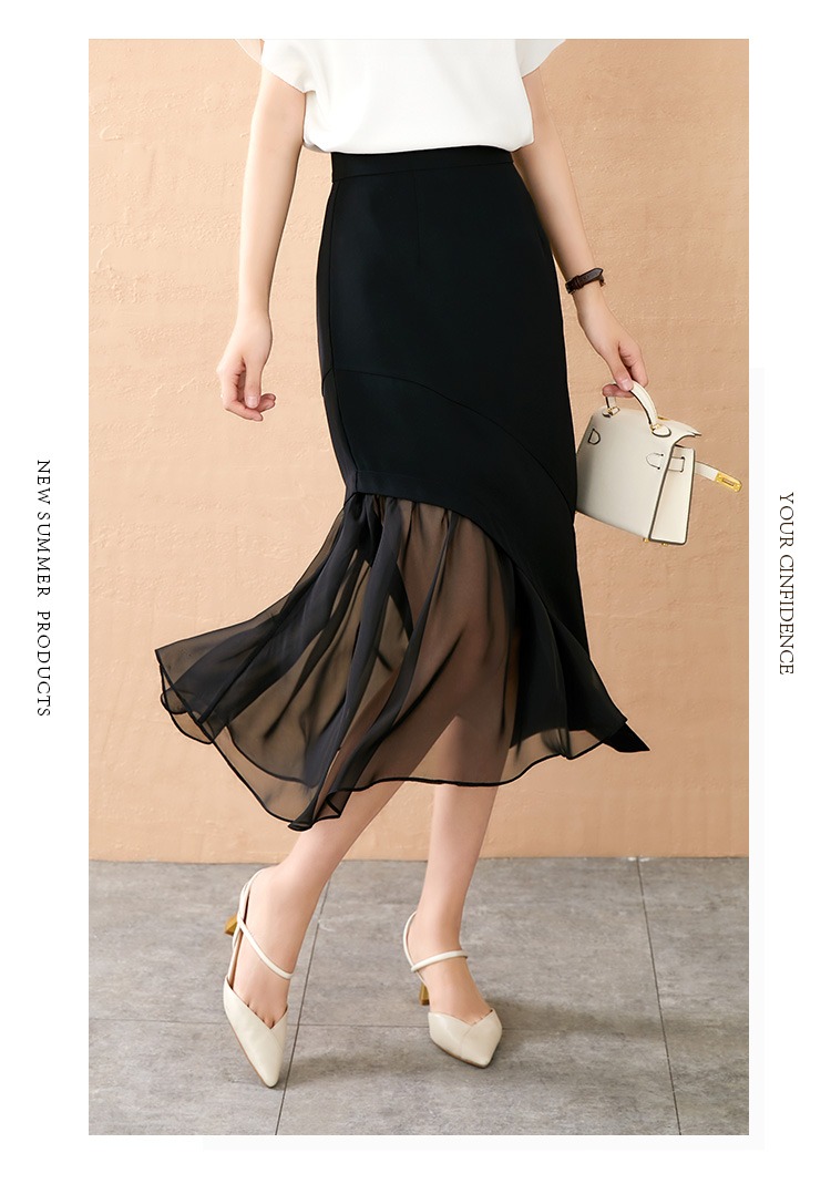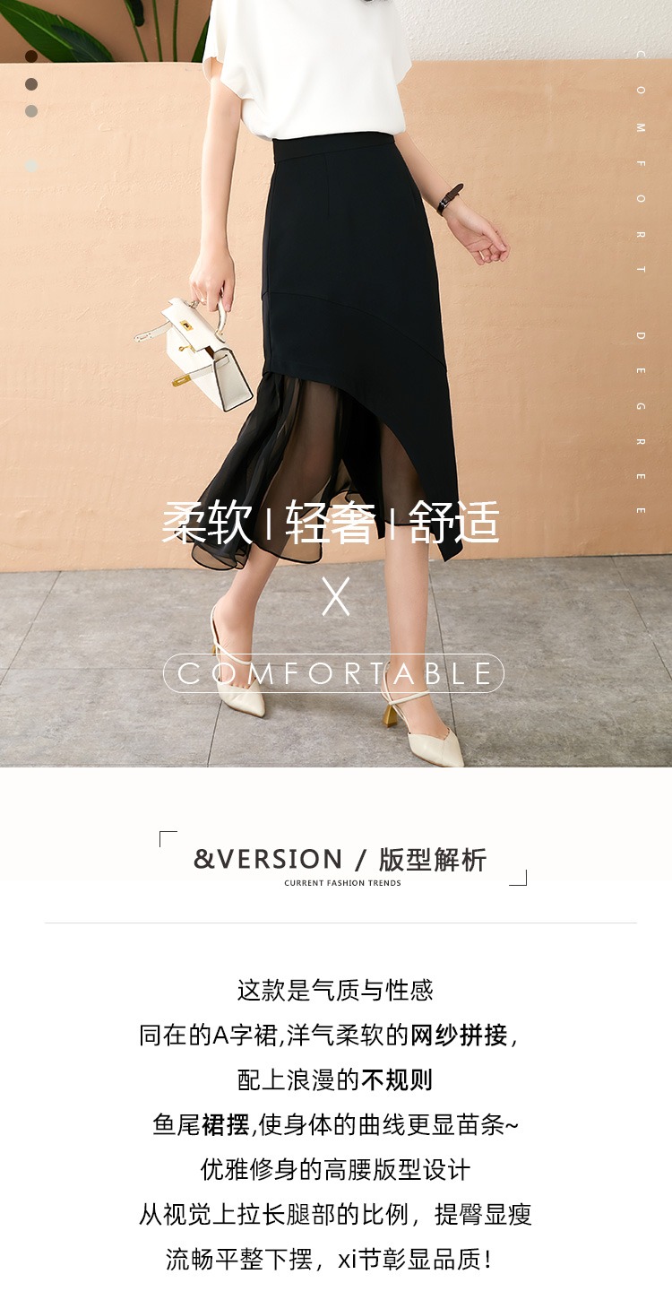 【现货款】鱼尾网纱半身裙女2023夏新款高腰显瘦不规则设计感小众a字裙