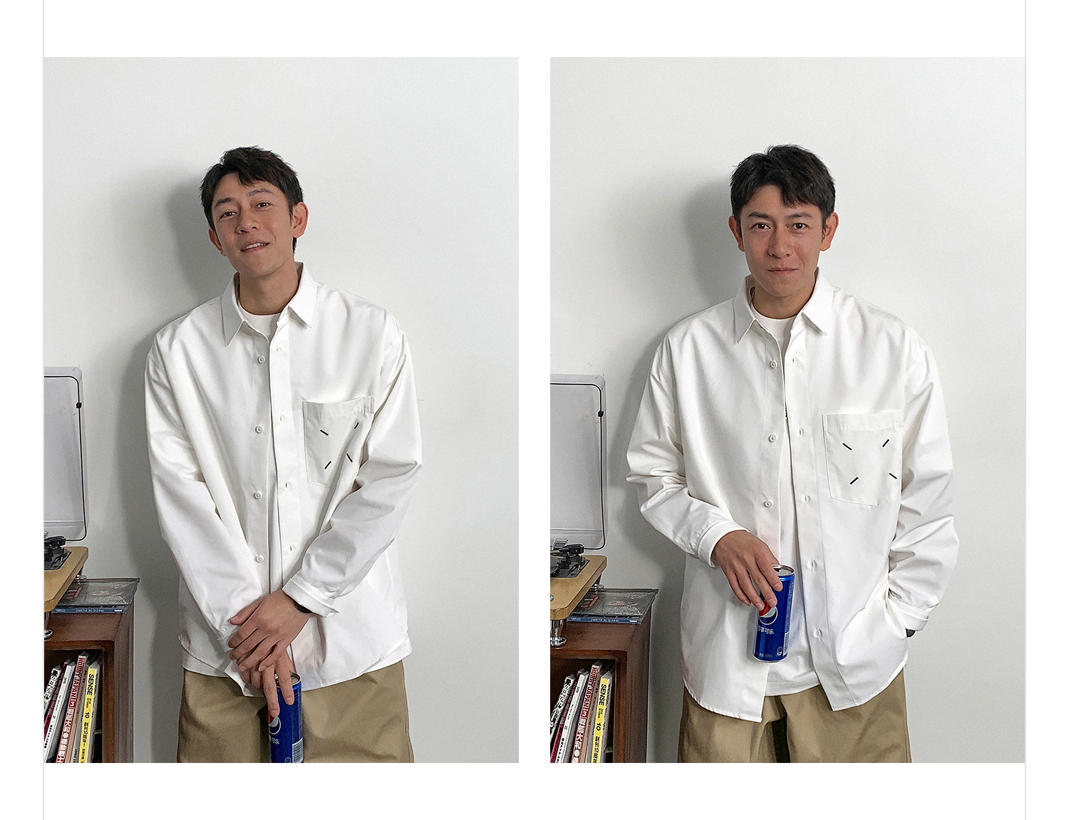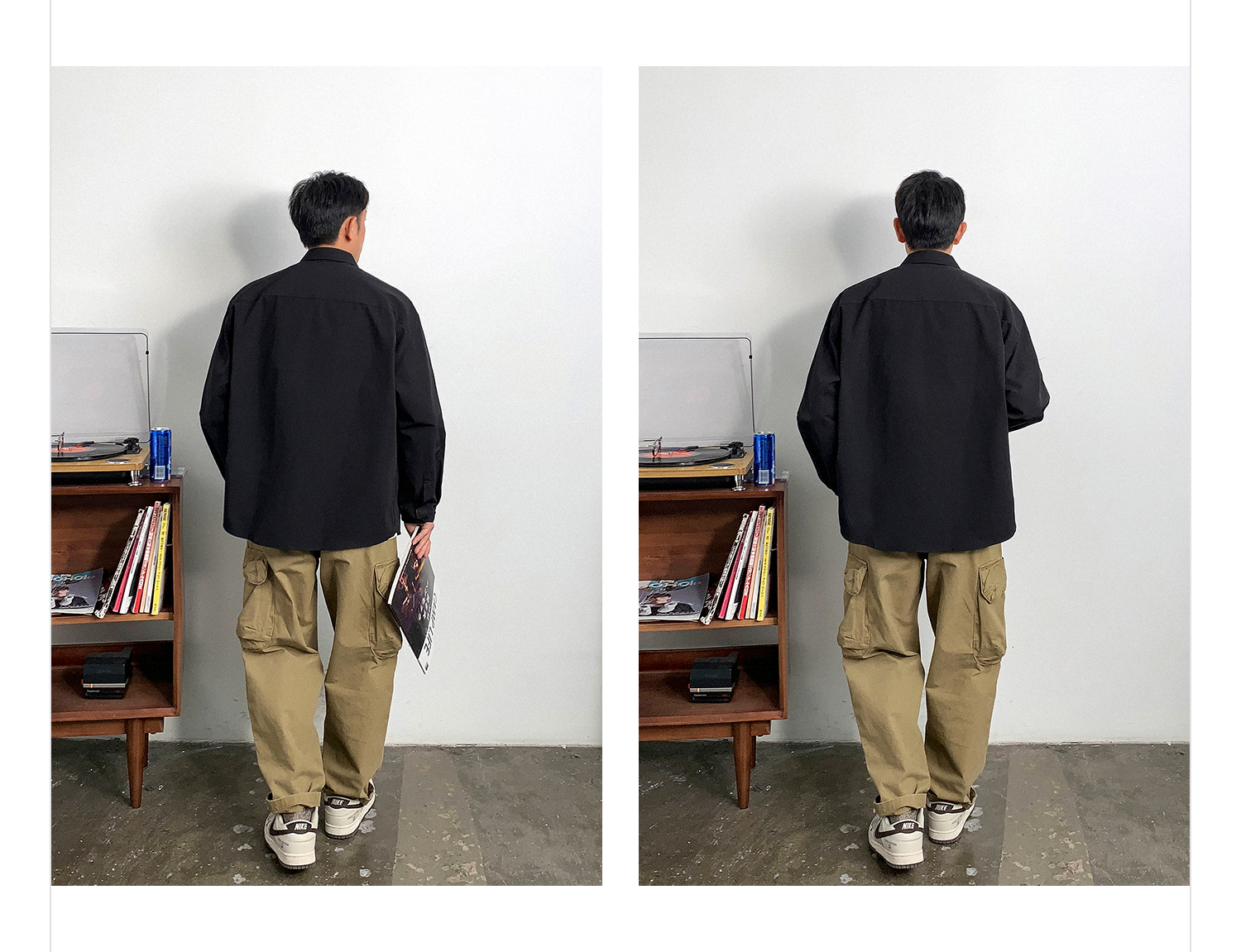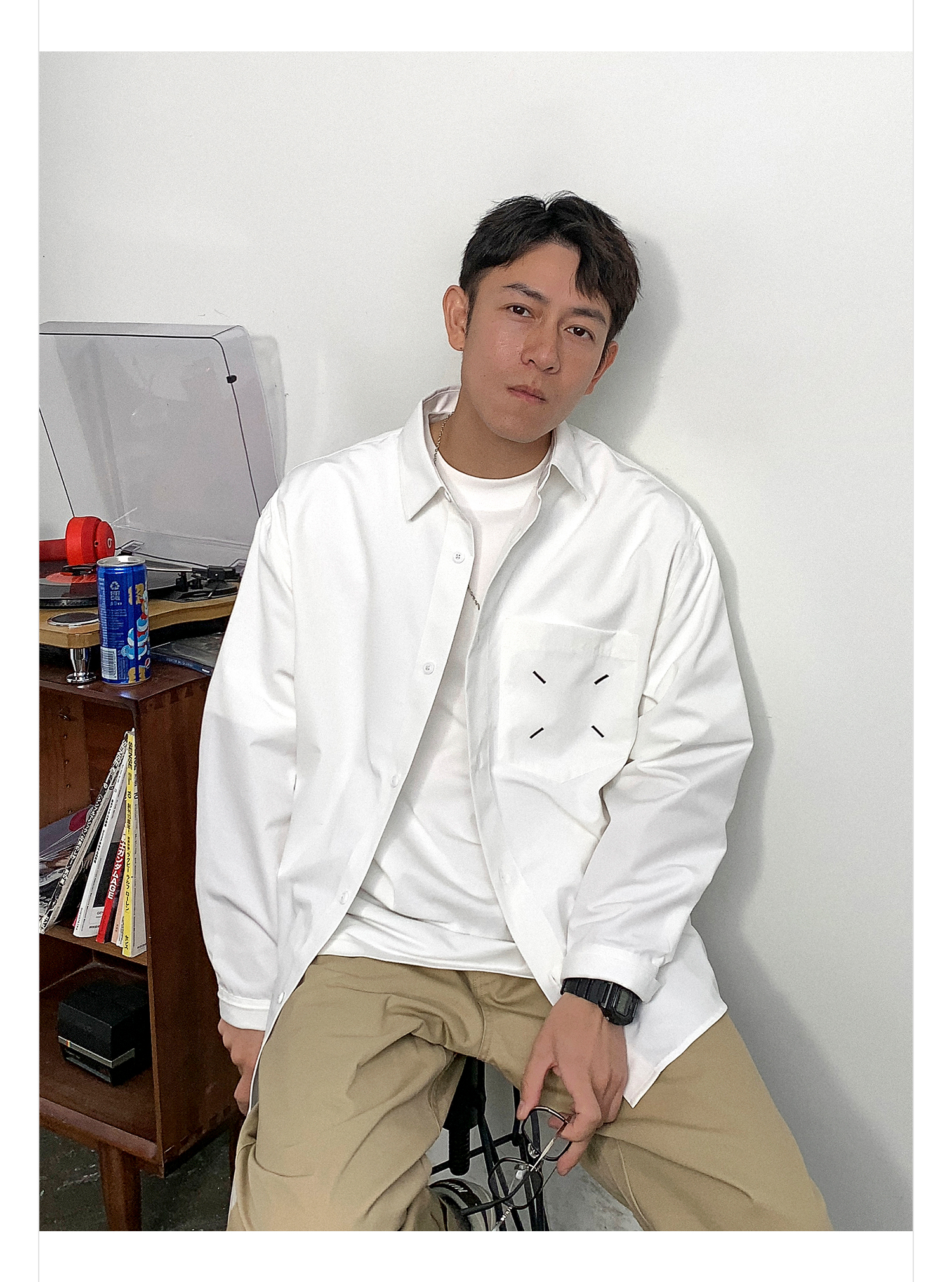 徐太浪日系简约纯色长袖衬衫男春秋宽松休闲百搭大码尖领衬衣外套