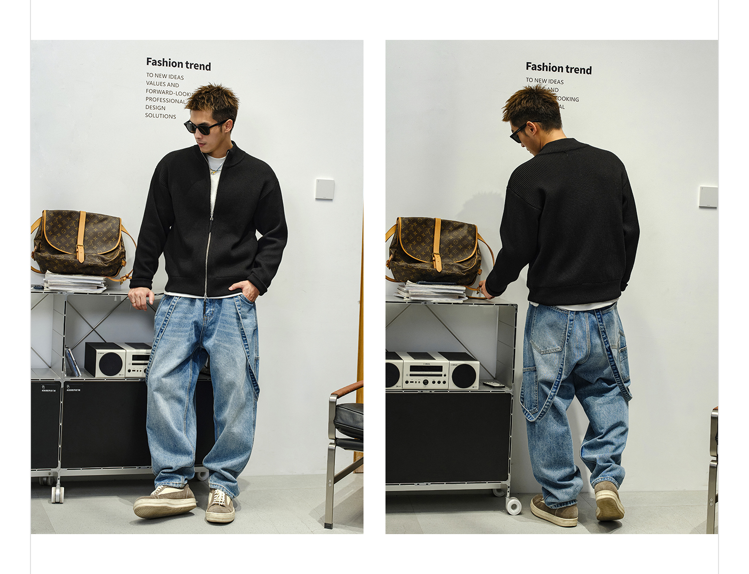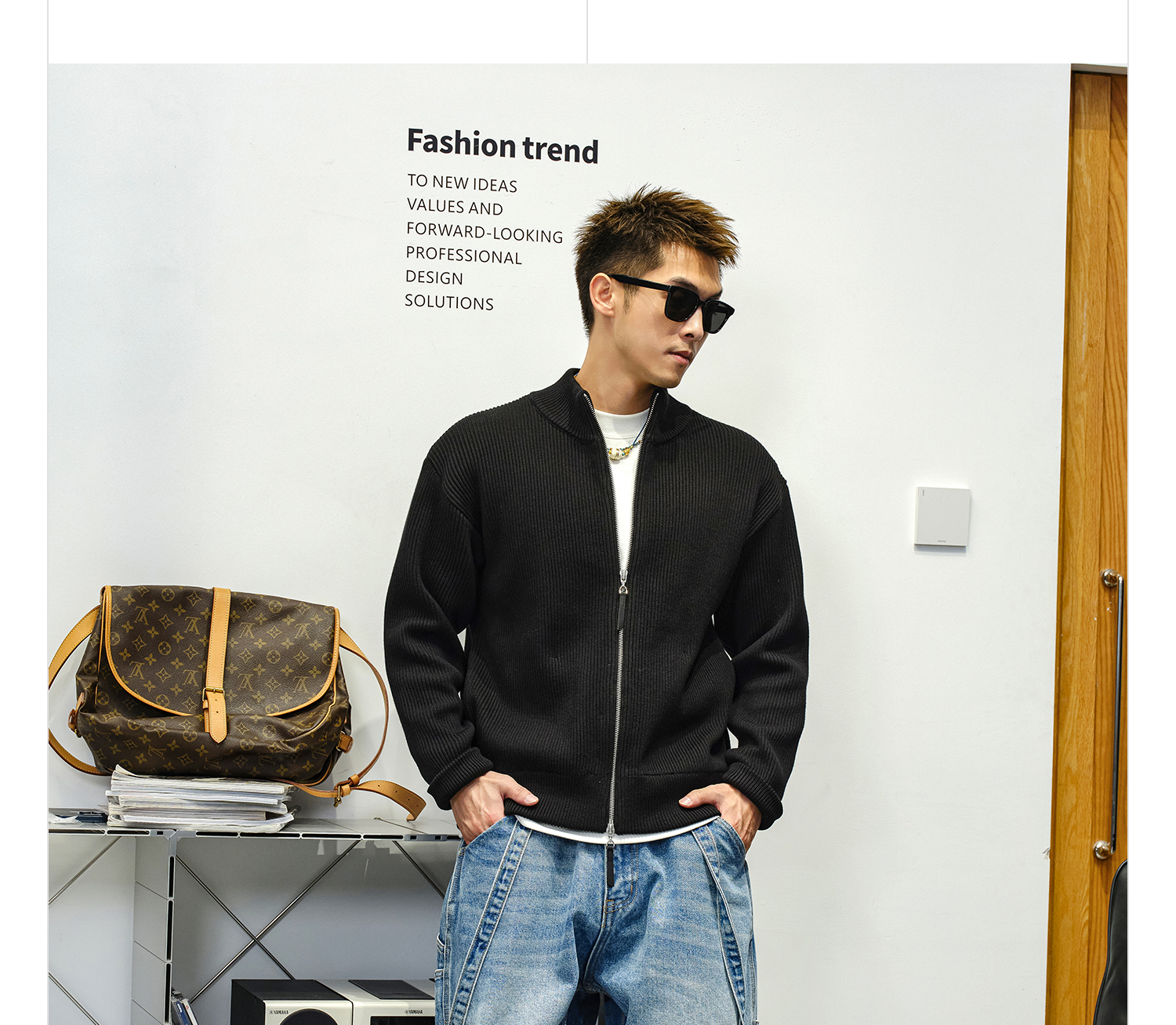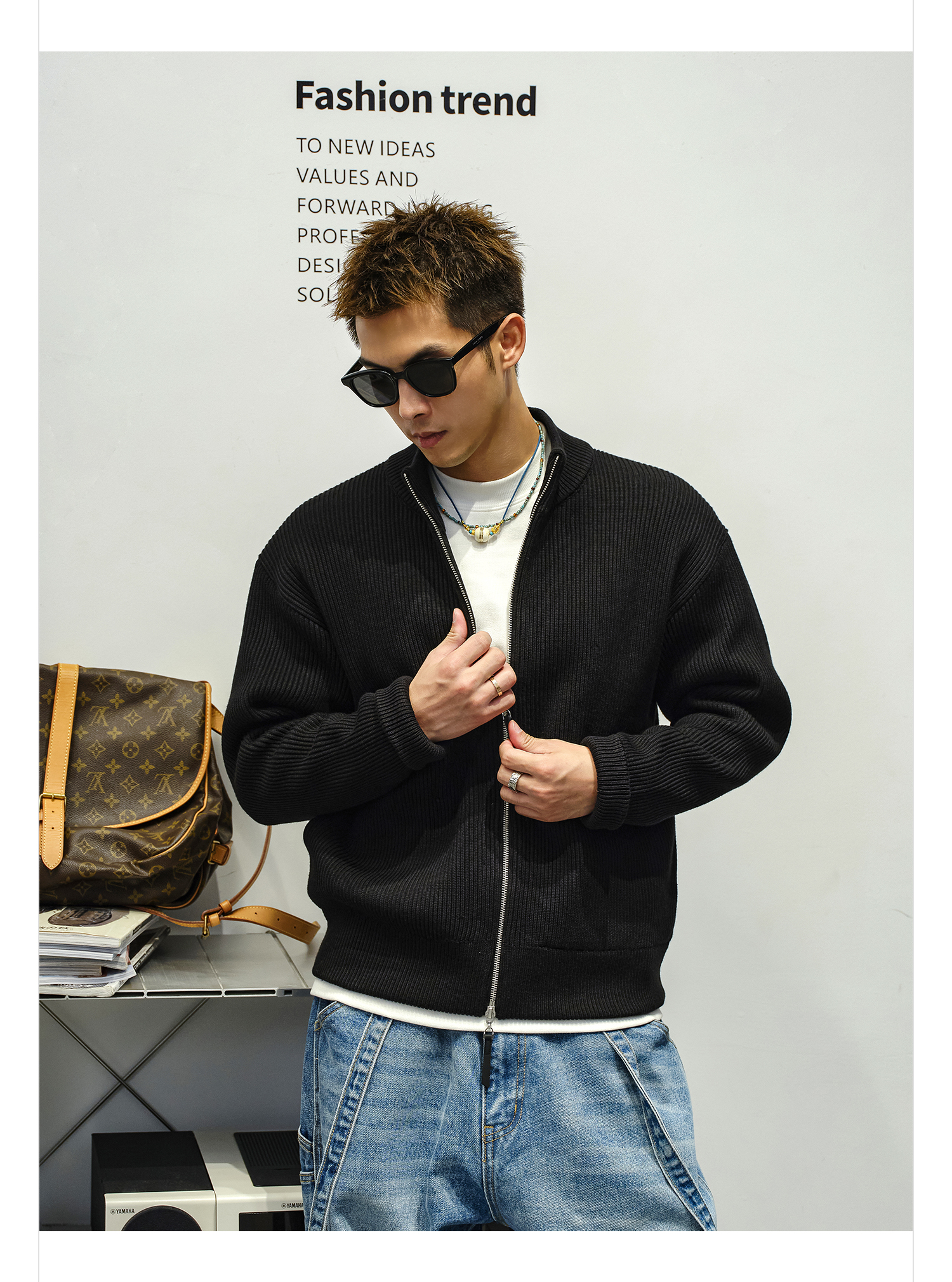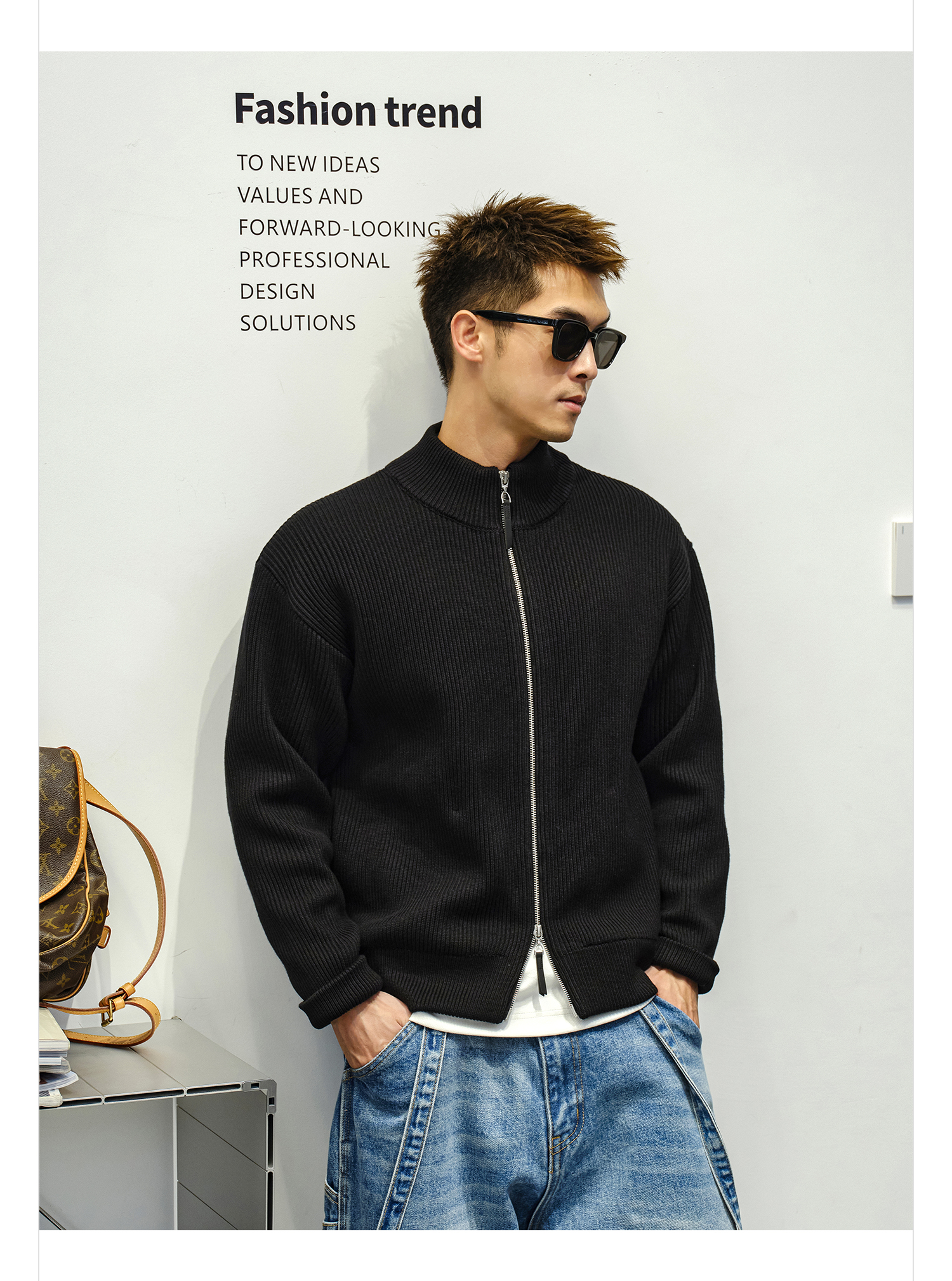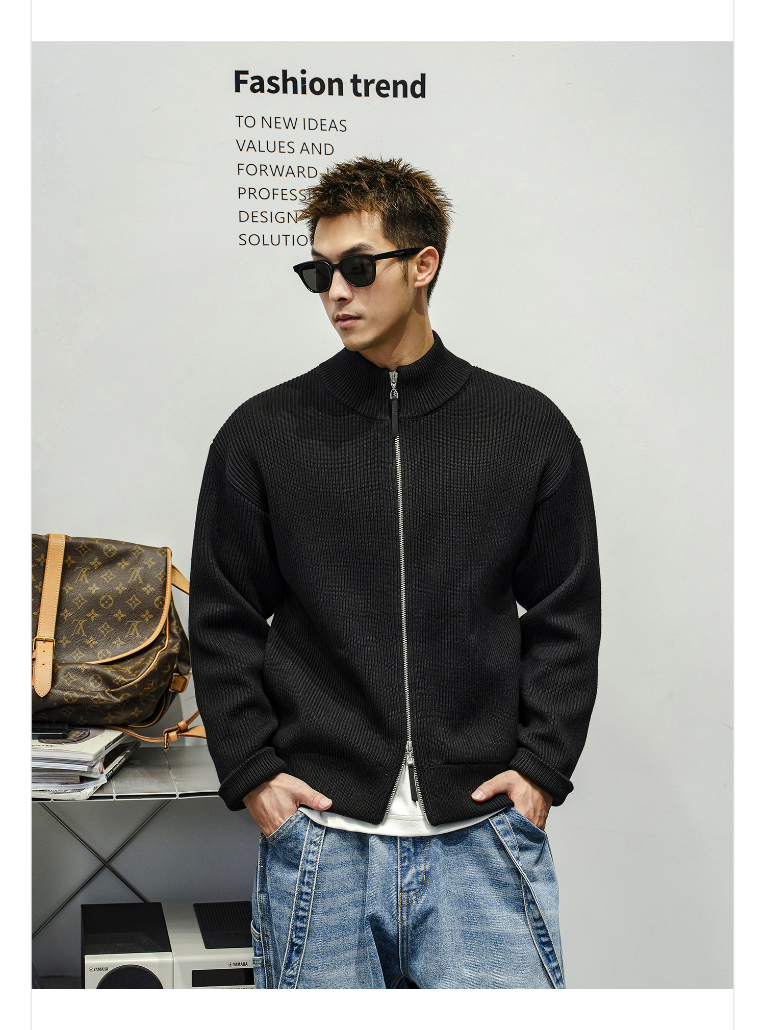 徐太浪【cleanfit 肌理感】双拉链开衫毛衣男春秋休闲针织衫外套