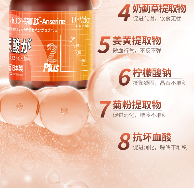 日本进口Dr.Velor®酸抗丸海洋鱼透明质酸鹅肌肽片关节轻松
