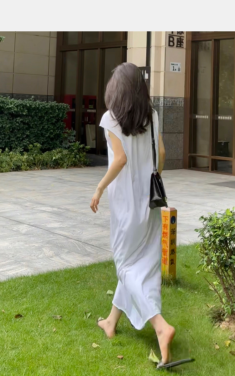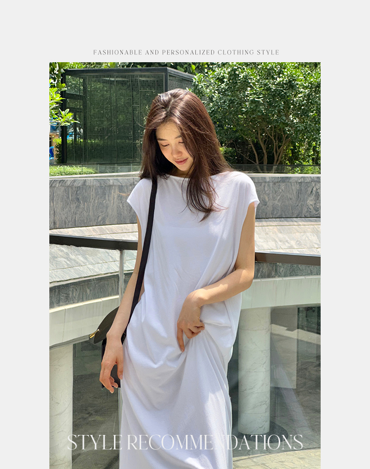 ROMI STUDIO“慵懒随性”110g定制棉阔型长款连衣裙带吊带裙D3777