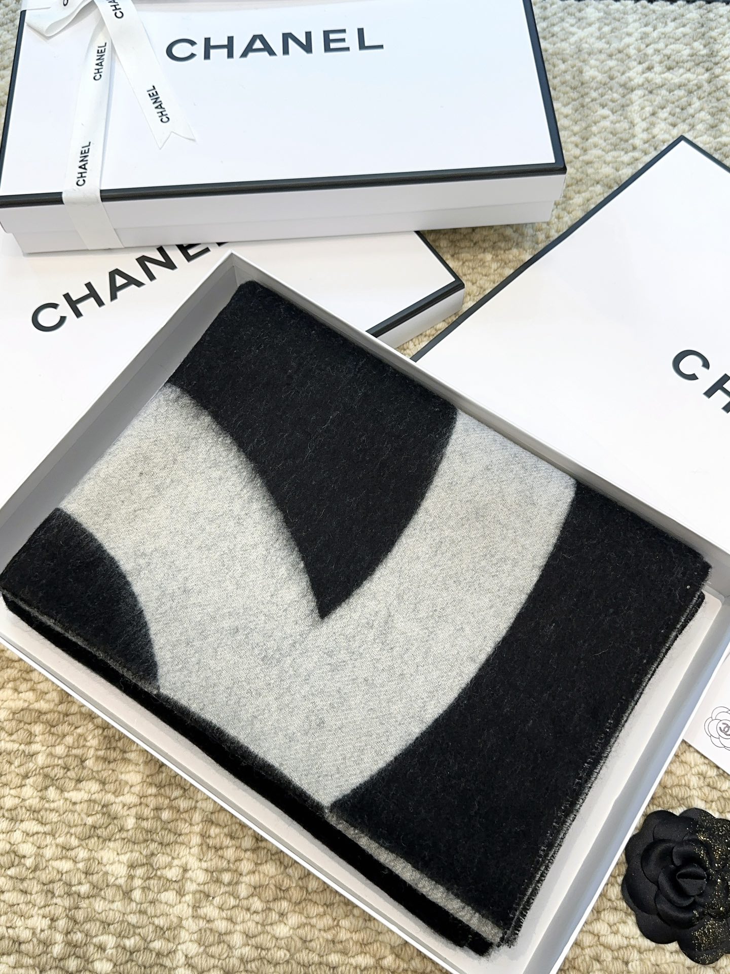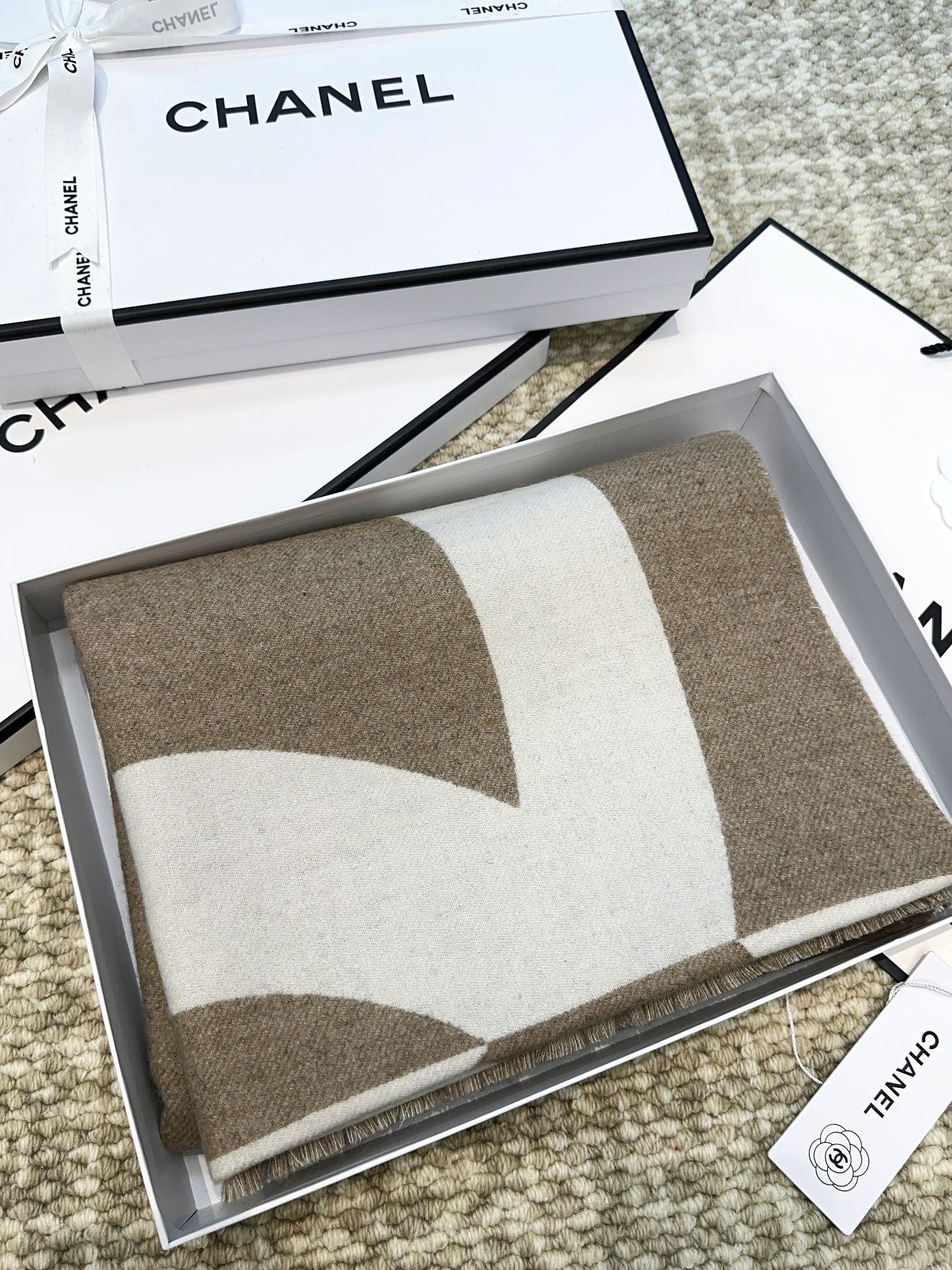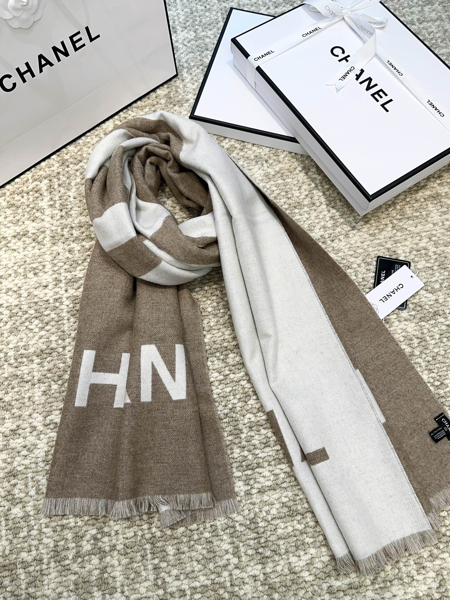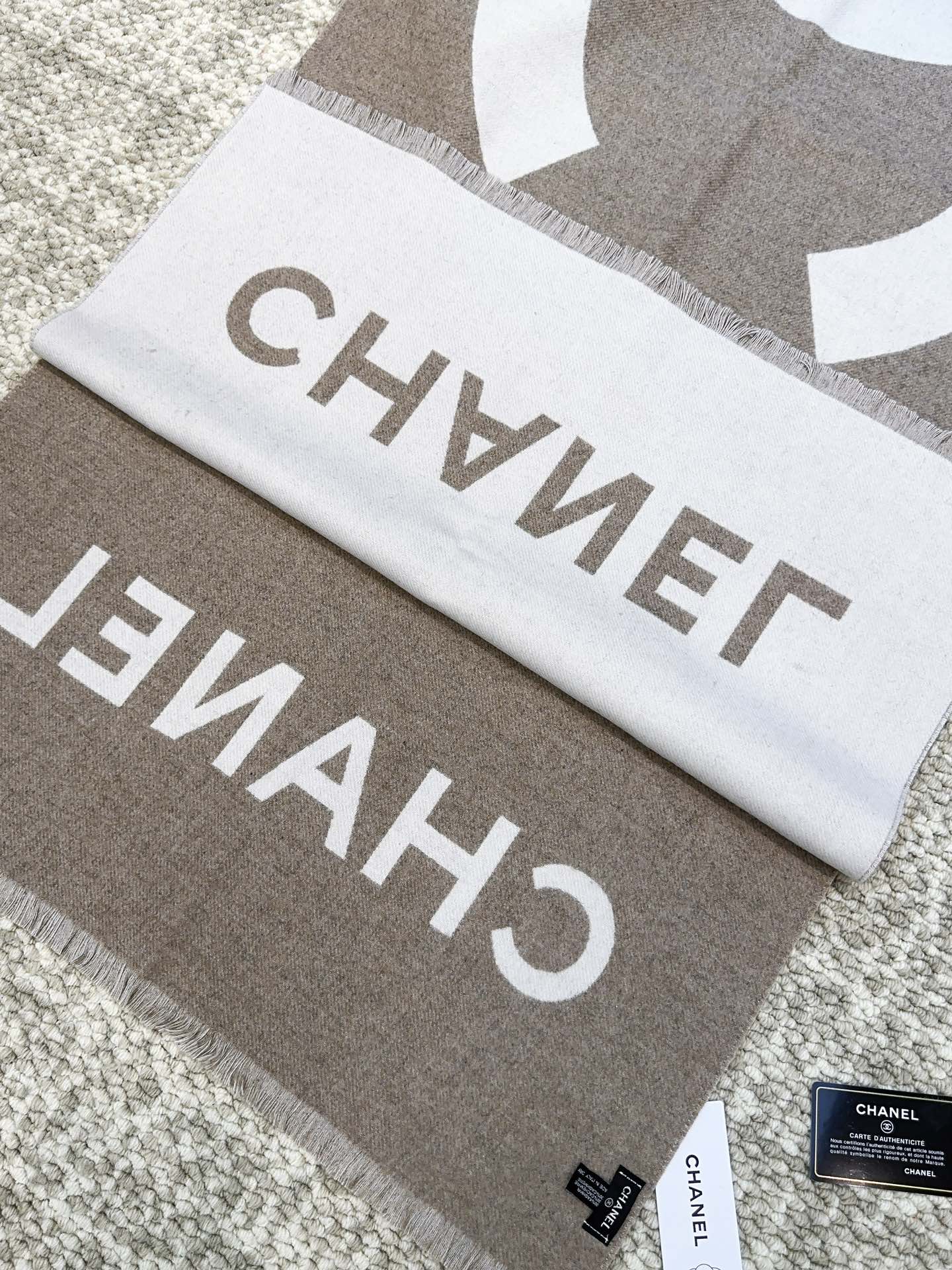 经典拼色logo提花风格,F货根本仿不来哦…永远不出错的出场方式,既使再过多少年都是如此,TA的高级与优雅,被设计师发挥到淋漓尽致,美得令人心醉神往,永不过时‼️极品精英高手级别的时髦感披肩❗️这款Chanel的款,实物真的越看越爱,越看越时髦,越看越喜欢,非常有份量和垂感,无敌无敌好造型❗️美的不要不要的,握在手里真的无敌舒适❗️代购价8000➕,100%客供羊毛,规格,70*200cm!