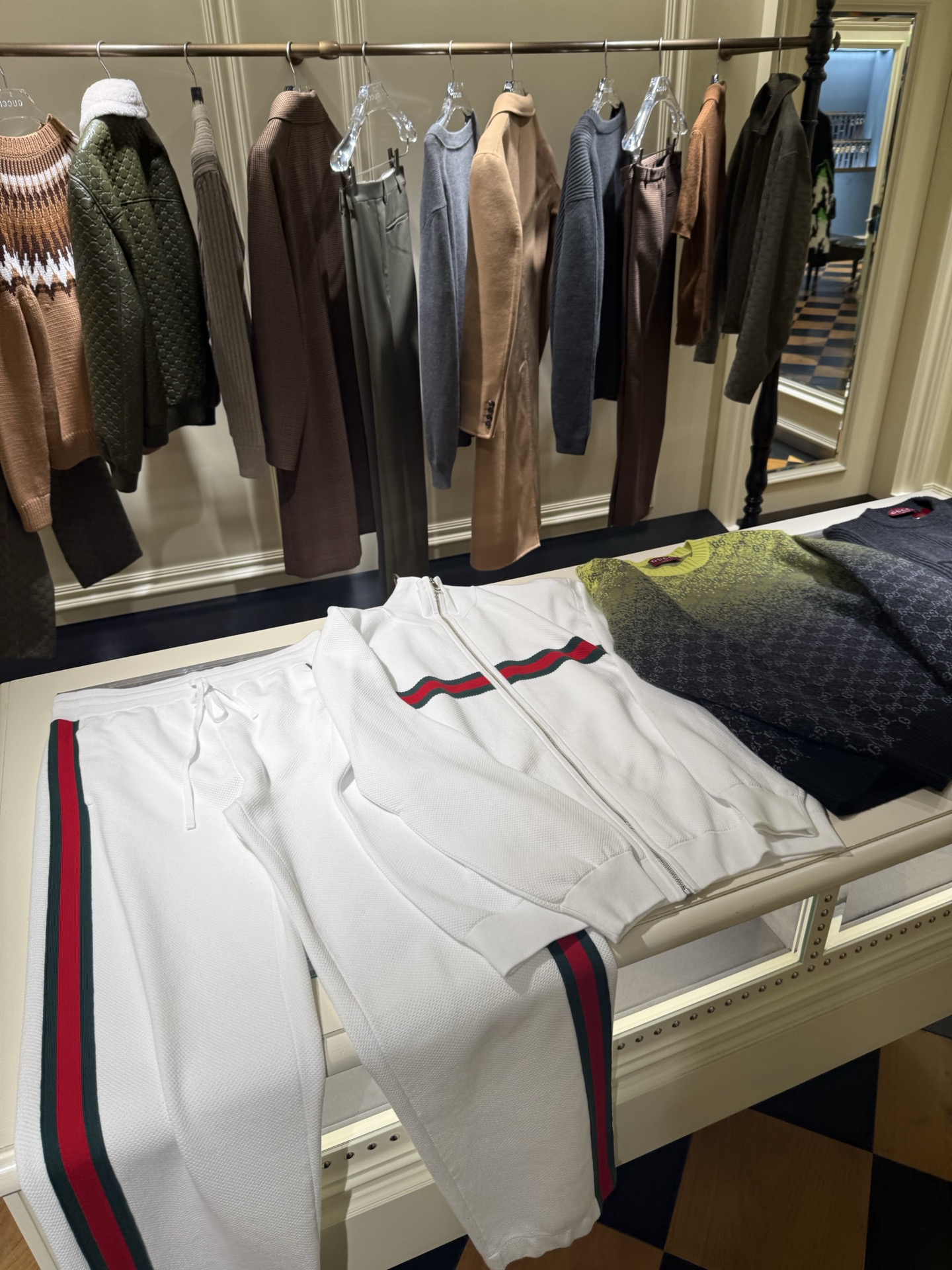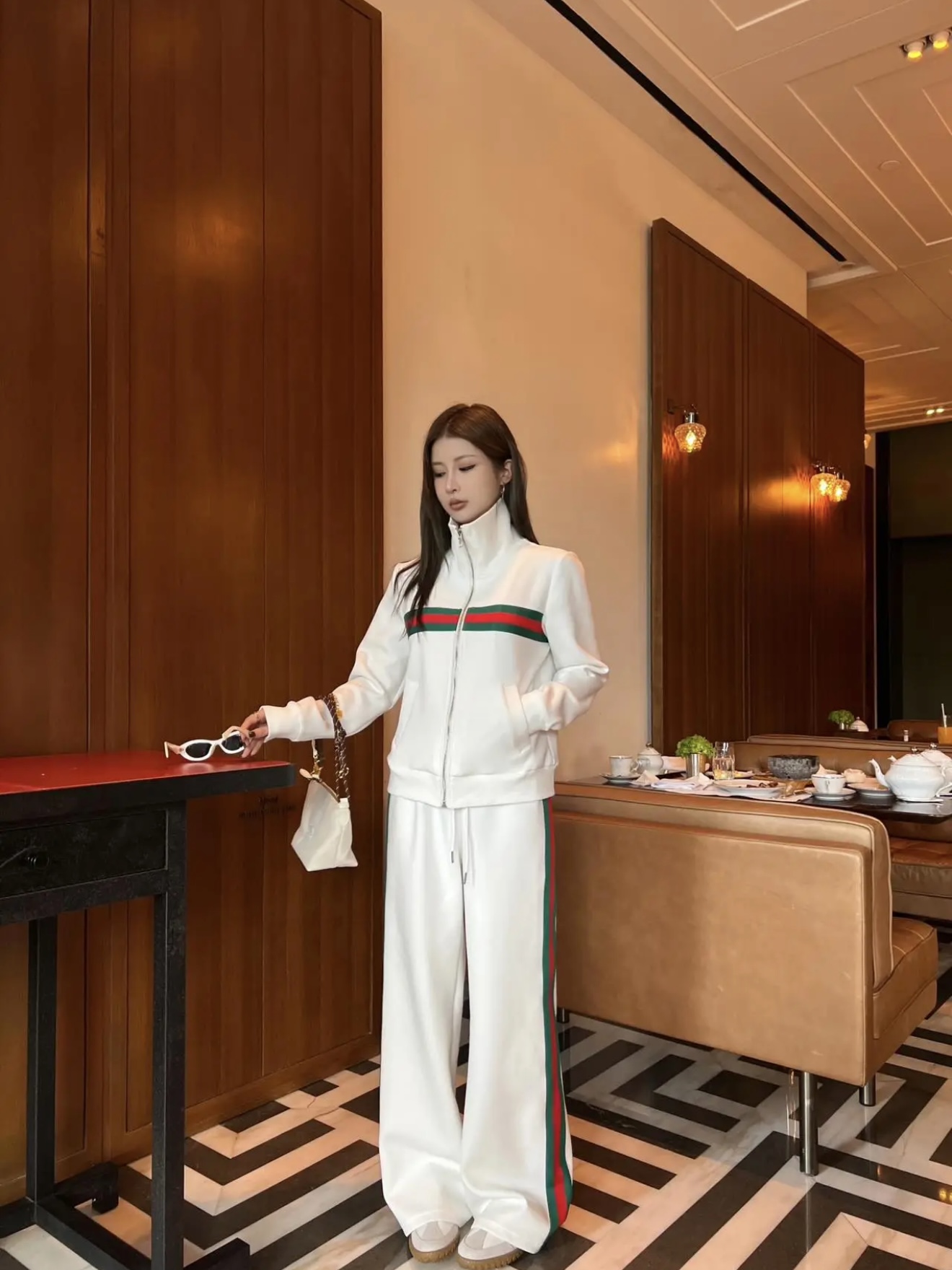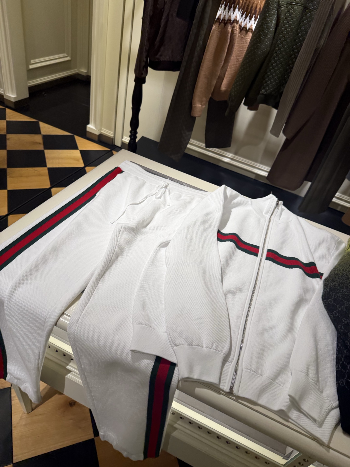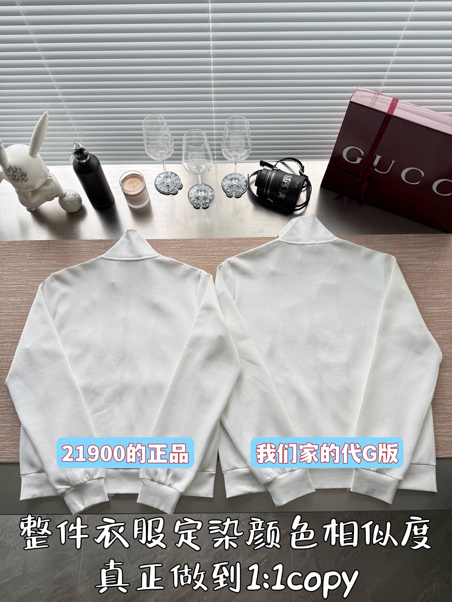 Gucci 2025 FW经典织带拉链外套‼️整件衣服21900购买Zp拆解打造,定制100%白色棉质面料,前幅饰以绿红绿经典织带设计,门襟开模定制GUCCI字母logo拉链,定织标志性罗纹领口 袖口 下摆,超紧密度局部编织,真正做到1:1copy 闭眼入 码数: S M L XL