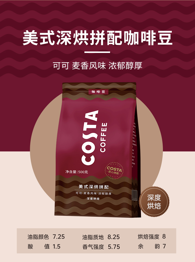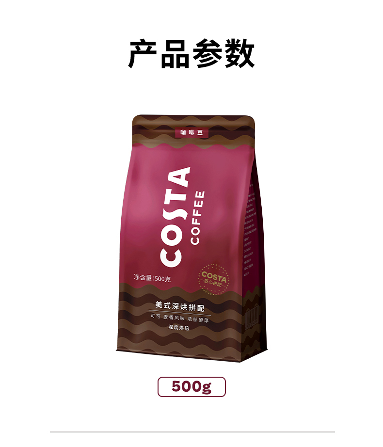 COSTA咖啡豆原装进口美式深烘拼配咖啡豆500g