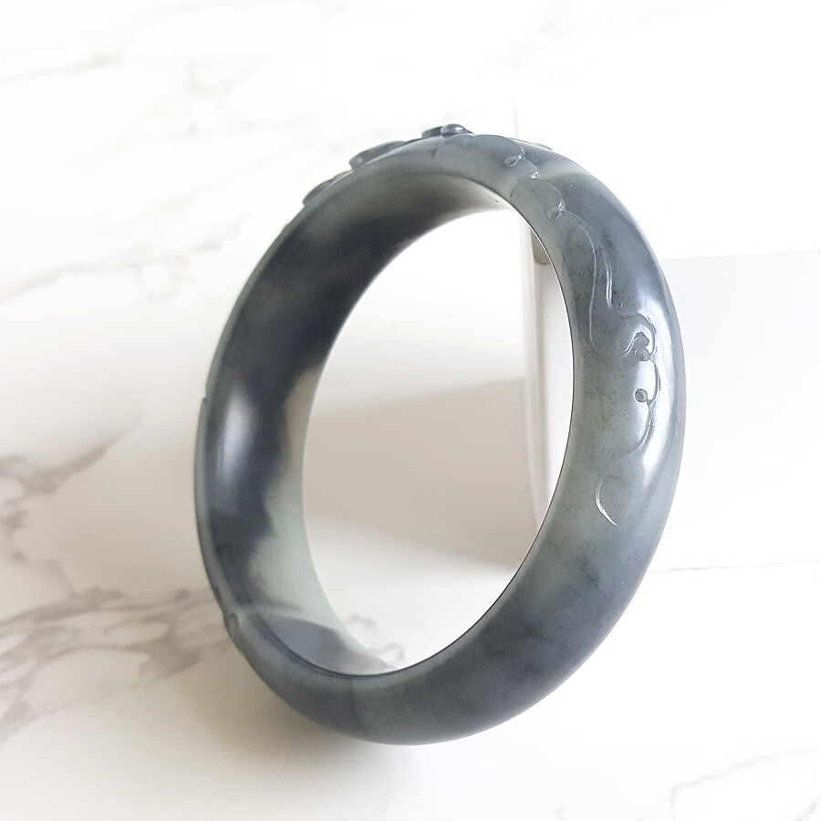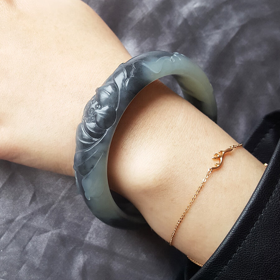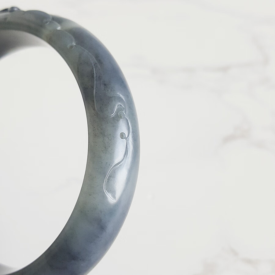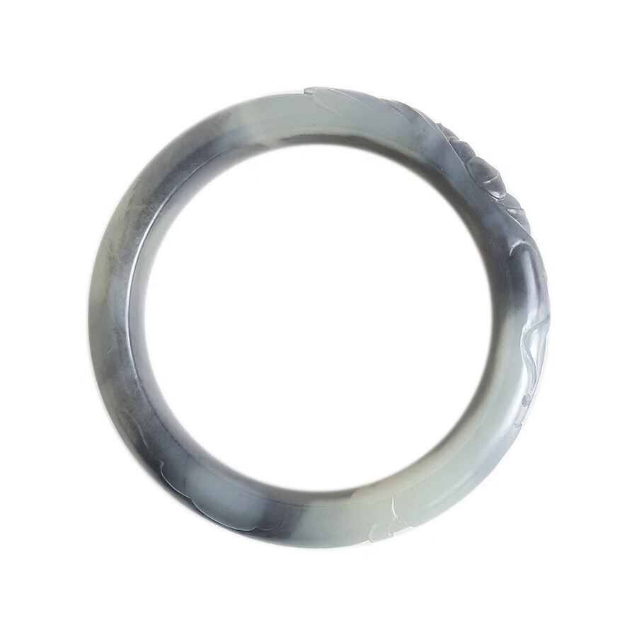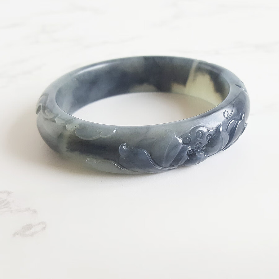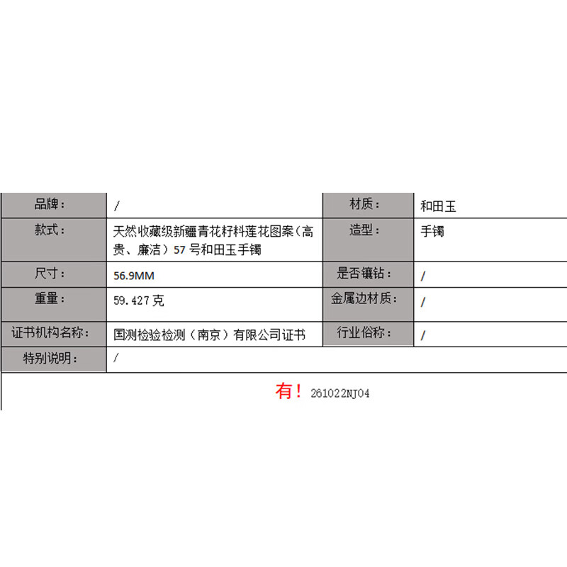 【天然正品】天然收藏级 新疆青花籽料莲花图案 高贵 廉洁 57号 和田玉手镯 261022NJ04