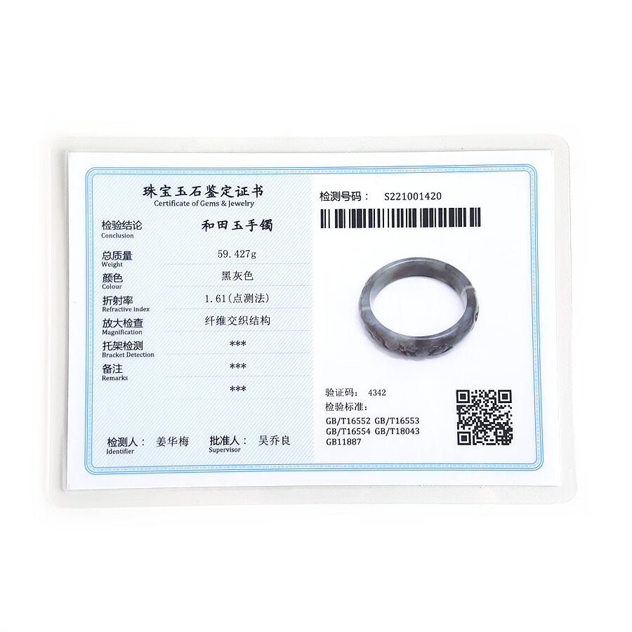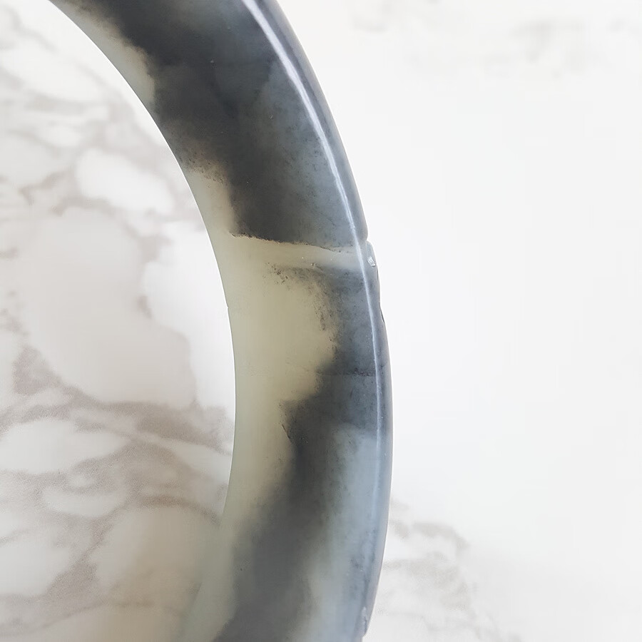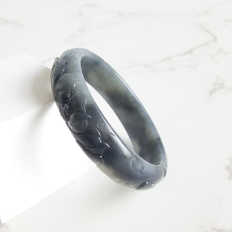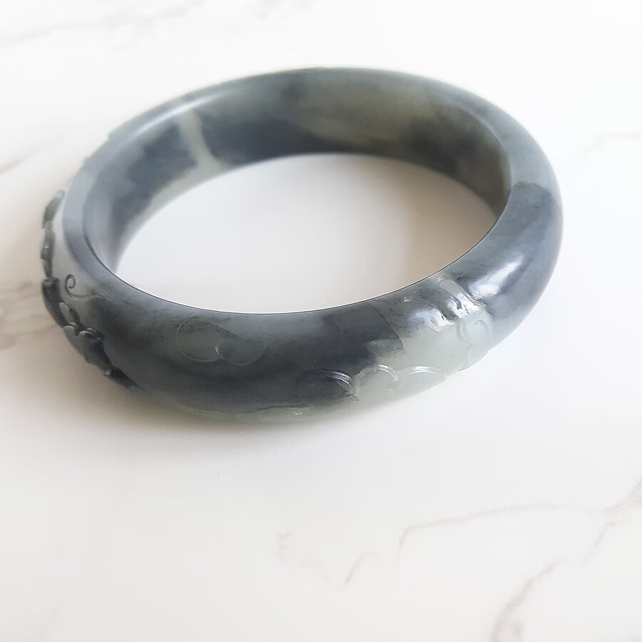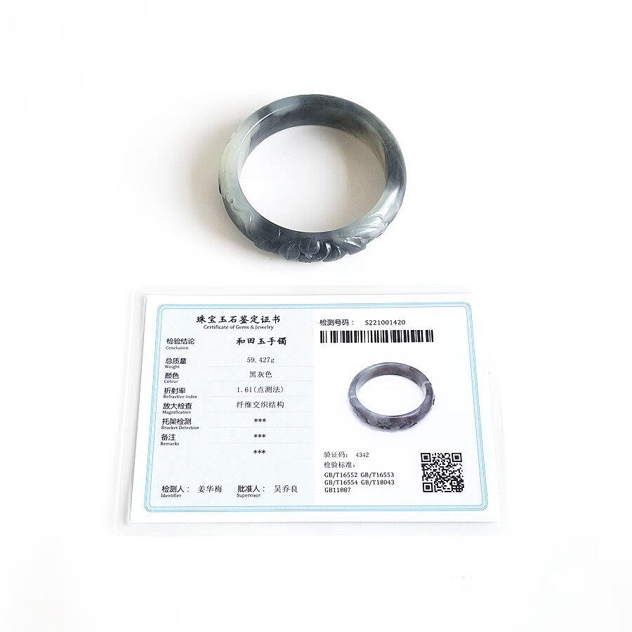 【天然正品】天然收藏级 新疆青花籽料莲花图案 高贵 廉洁 57号 和田玉手镯 261022NJ04