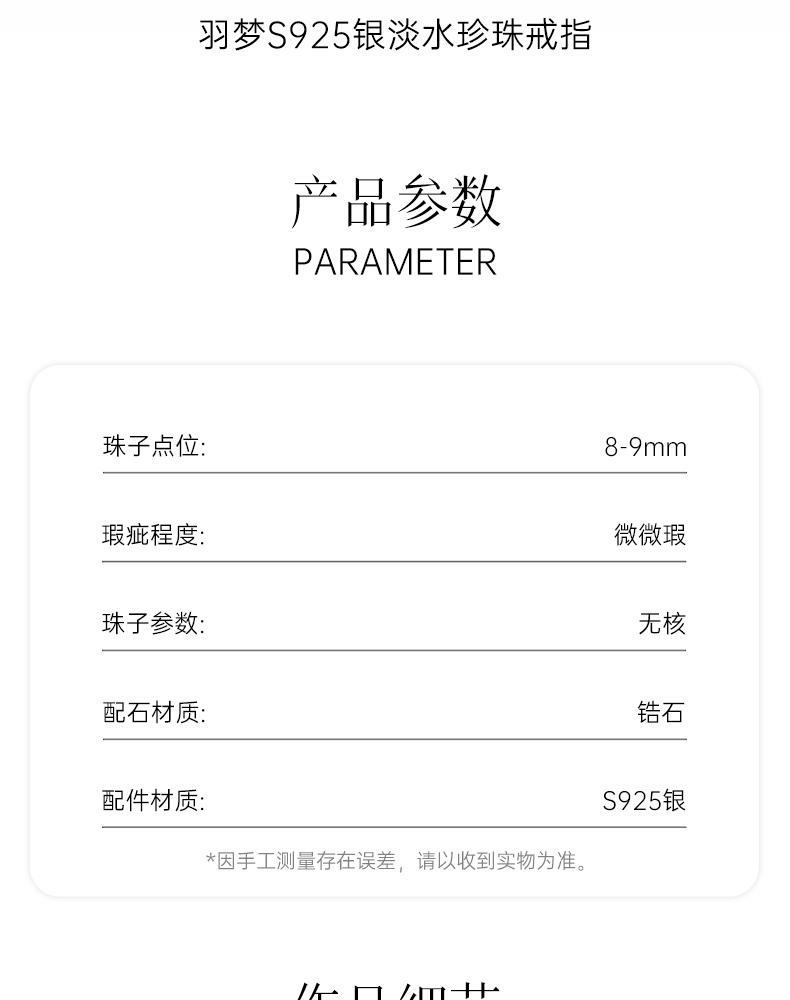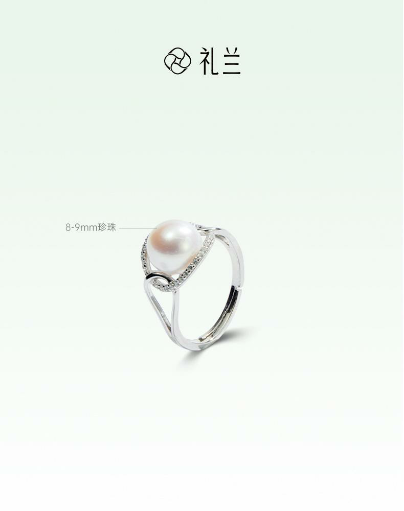 礼兰 羽梦S925银淡水珍珠戒指8-9mm