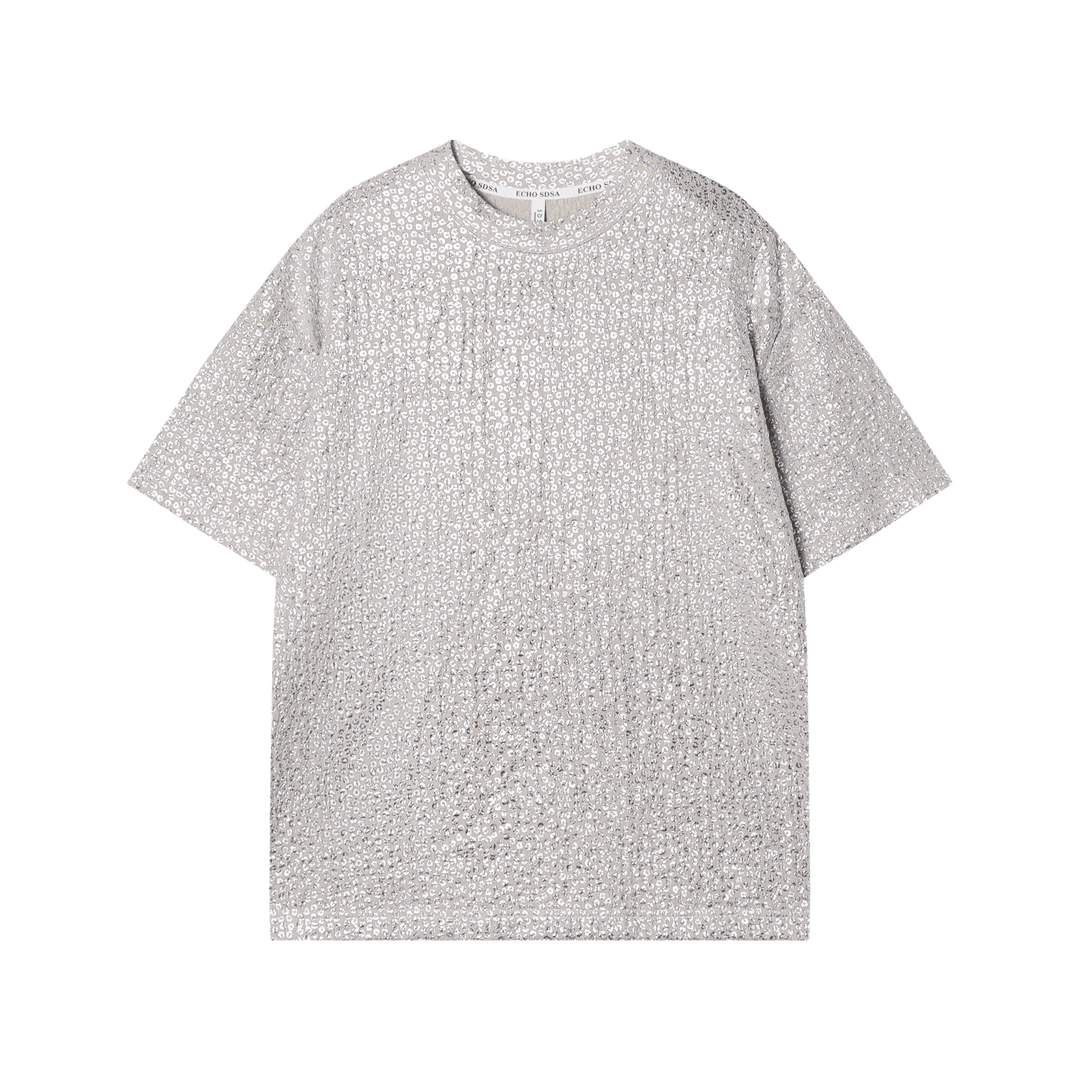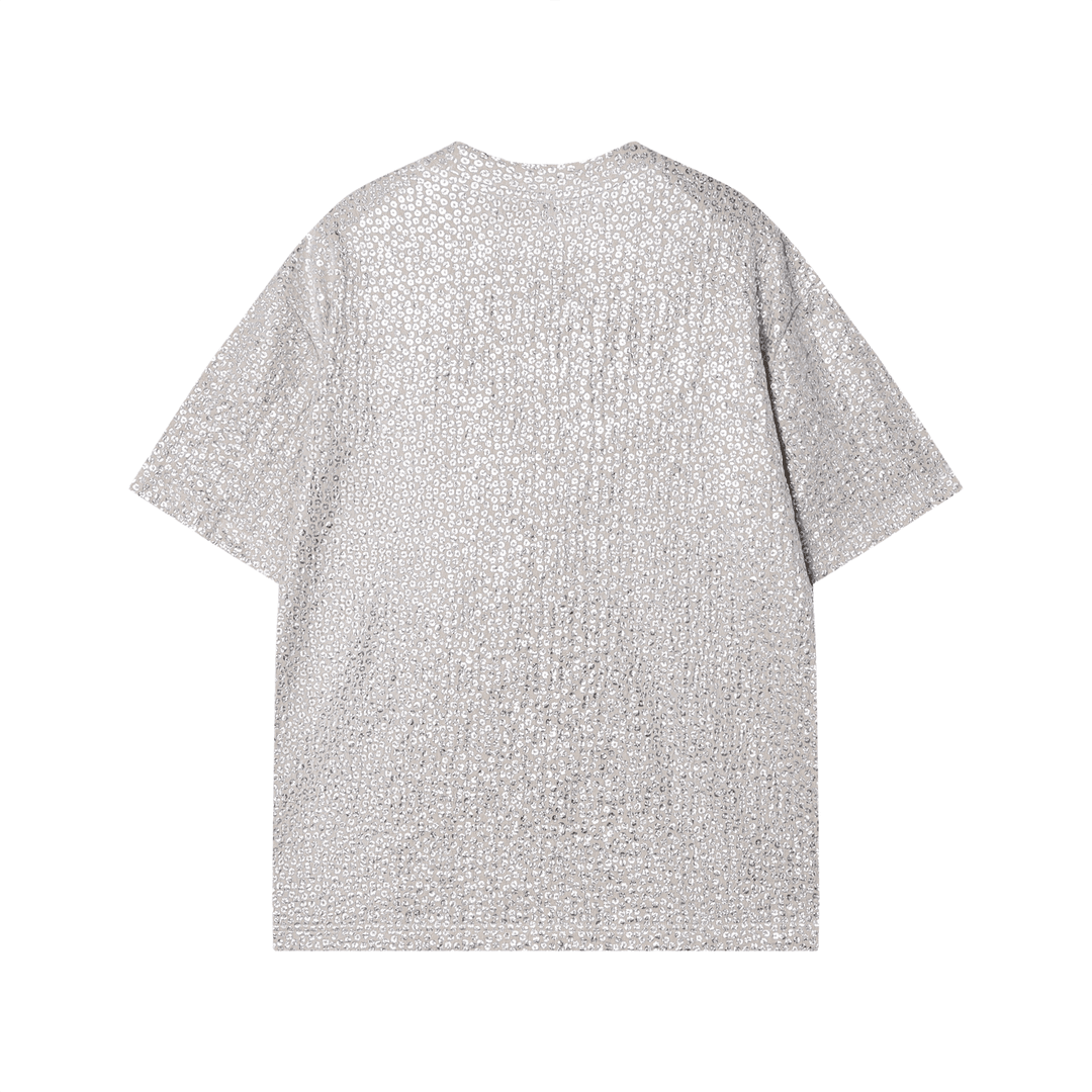 T1266新款时尚亮片反光圈圈印花男士上衣潮流百搭短袖宽松休闲T恤