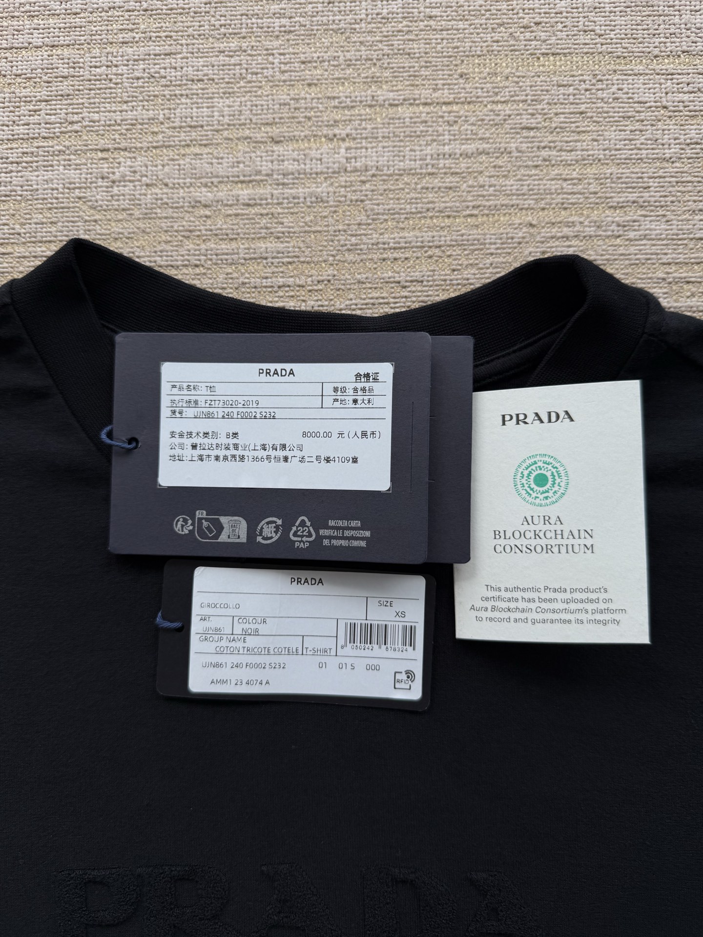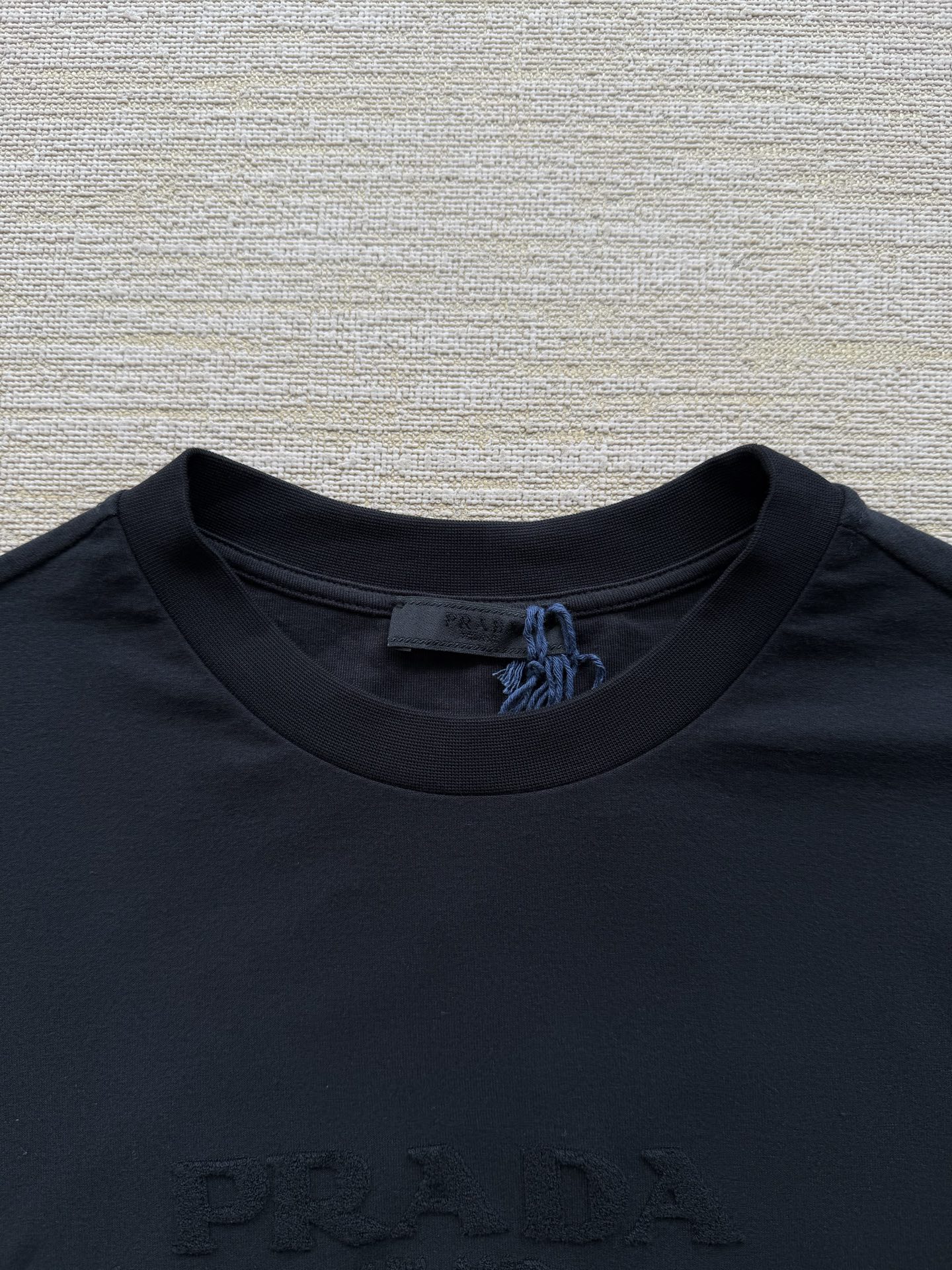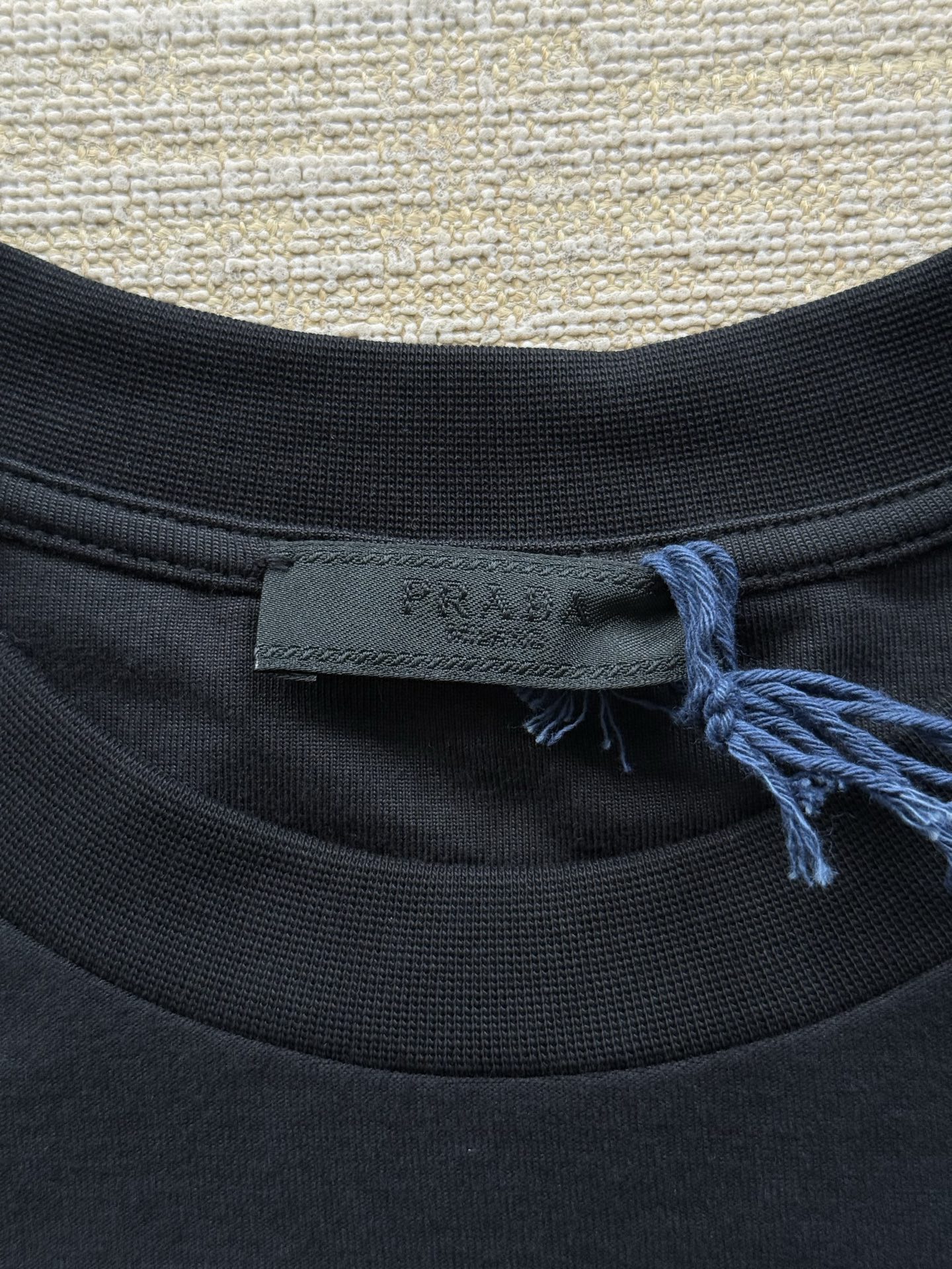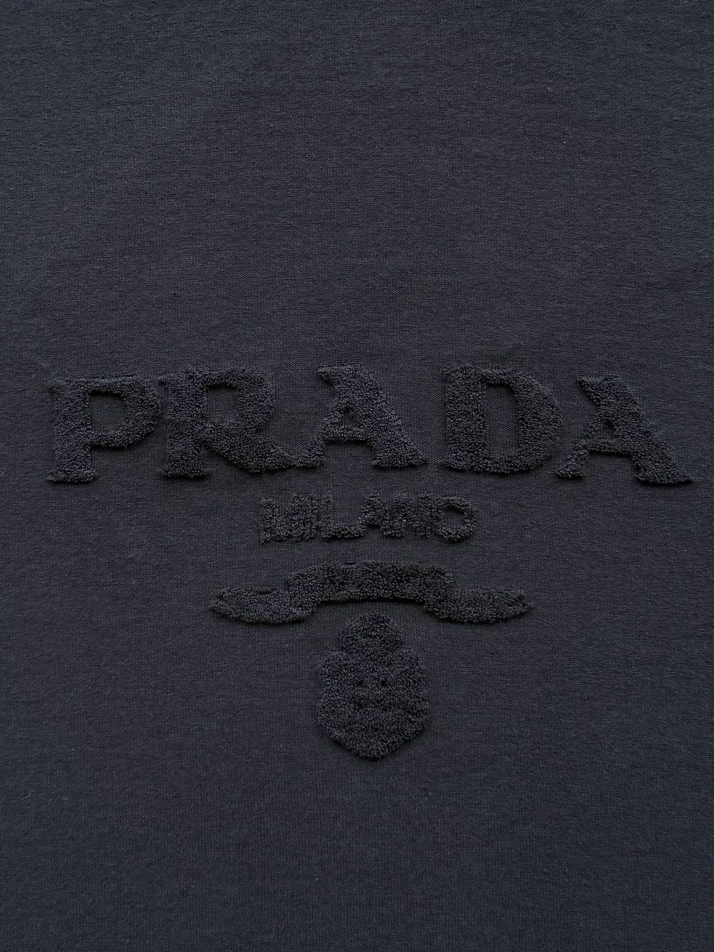 PRADA25ss毛巾提花logo短袖T恤‼️整件衣服11200购买ZP拆解打造,定制白色科技感棉质面料,做到100%全棉进口纱线,定制标志性波浪纹领口,前幅饰以毛圈提花字母logo,袖口 下摆双层锁边高密度走线,真正做到1:1copy 闭眼入 码数:XS S M L