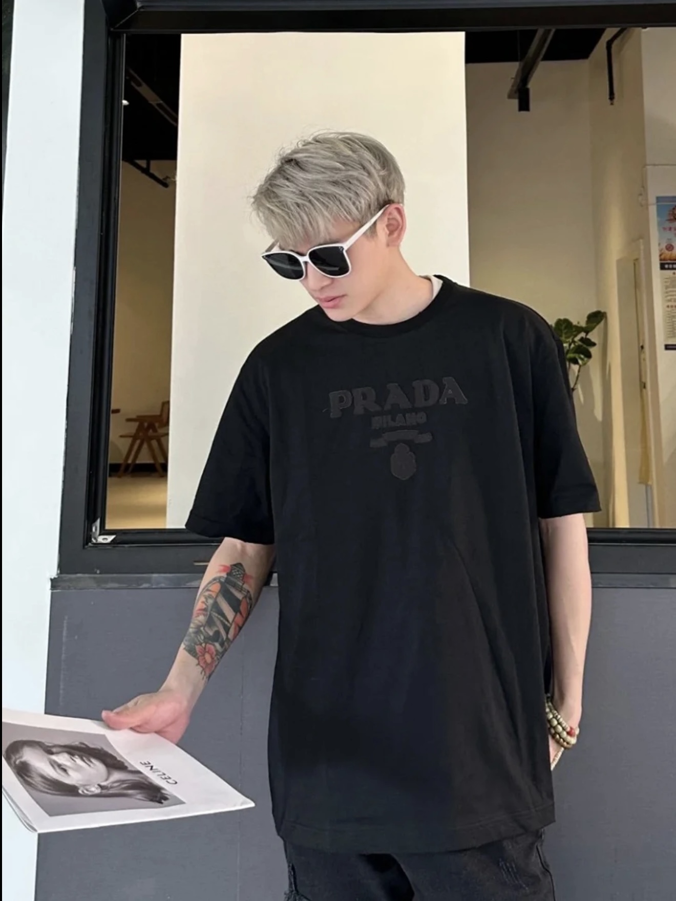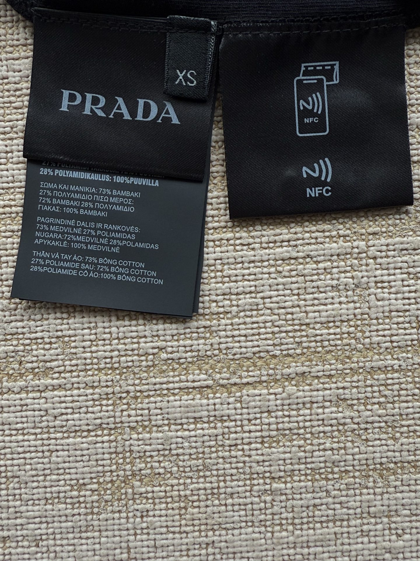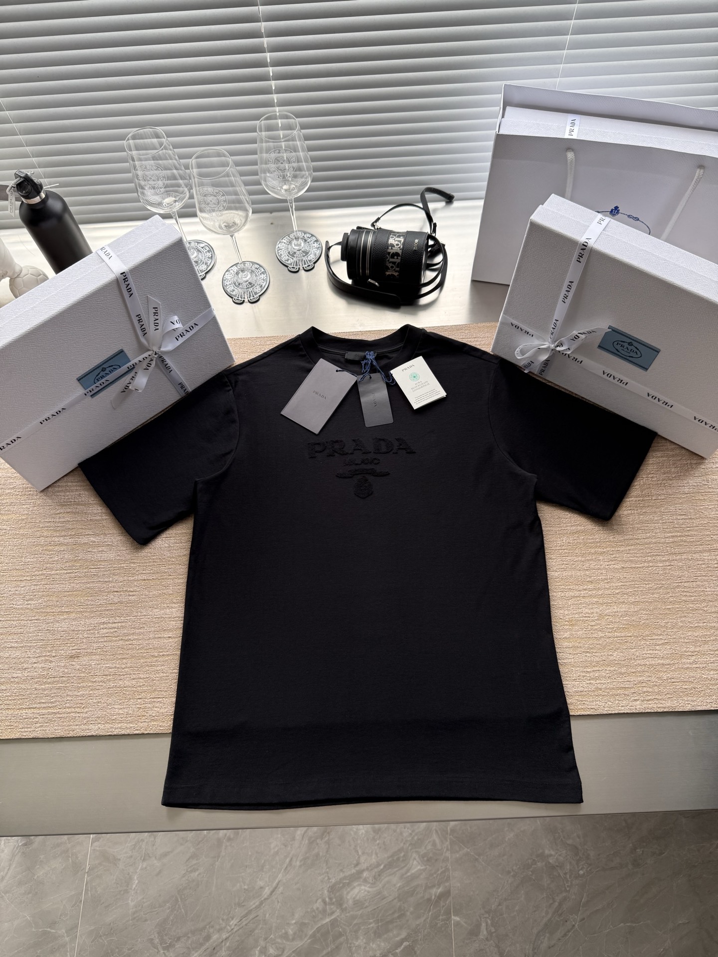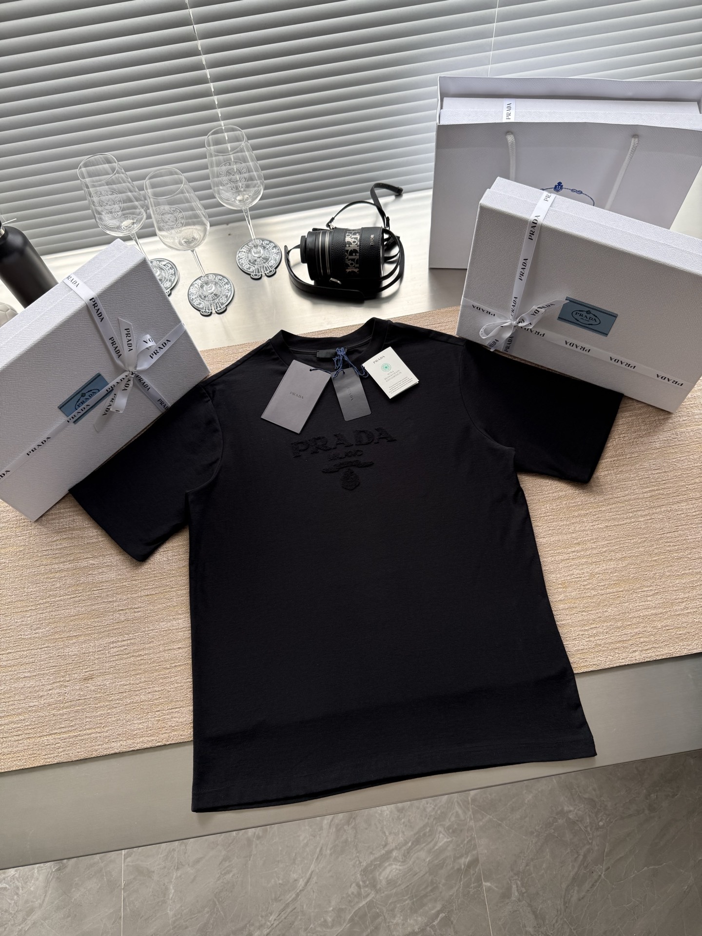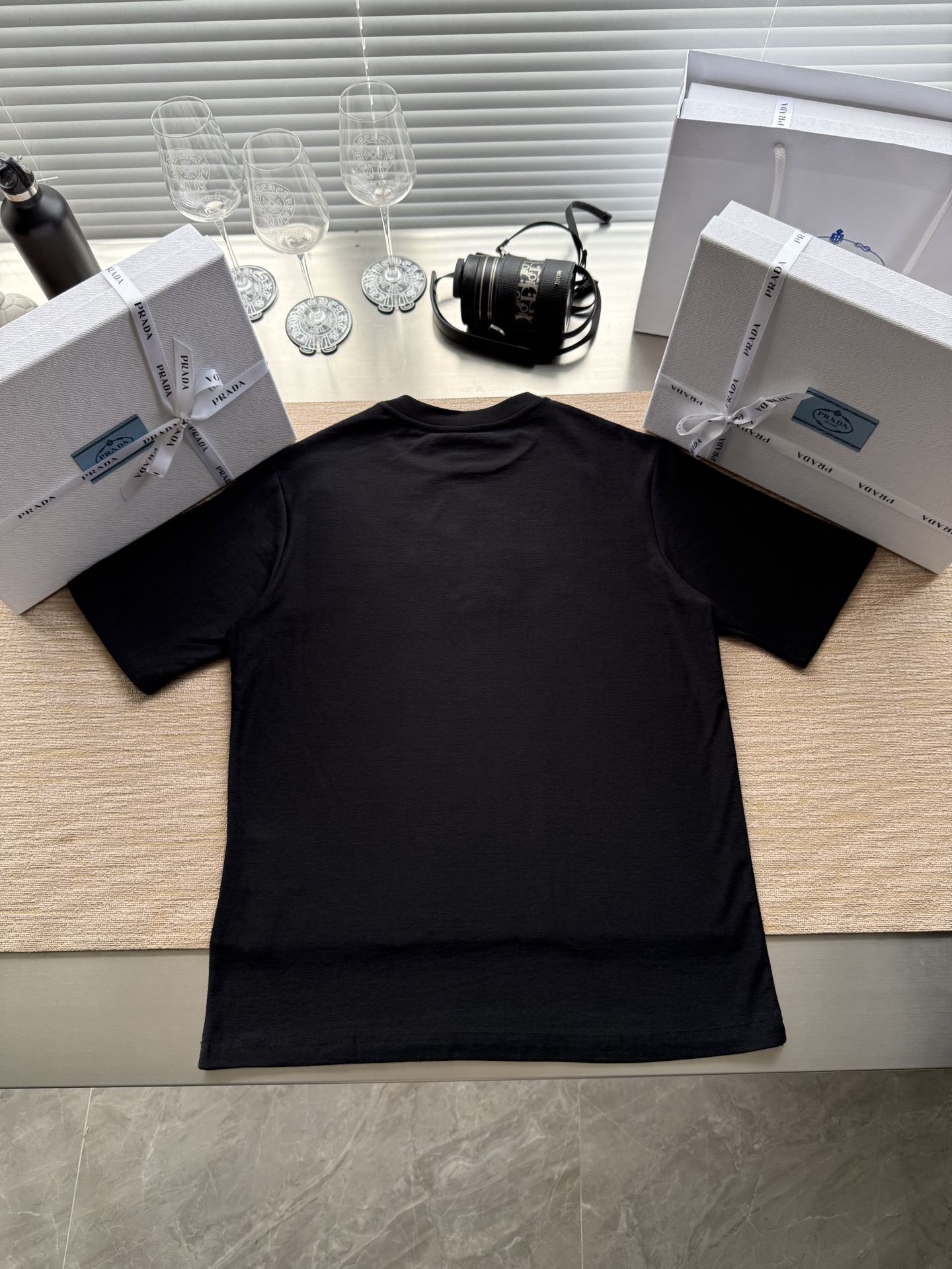 PRADA25ss毛巾提花logo短袖T恤‼️整件衣服11200购买ZP拆解打造,定制白色科技感棉质面料,做到100%全棉进口纱线,定制标志性波浪纹领口,前幅饰以毛圈提花字母logo,袖口 下摆双层锁边高密度走线,真正做到1:1copy 闭眼入 码数:XS S M L