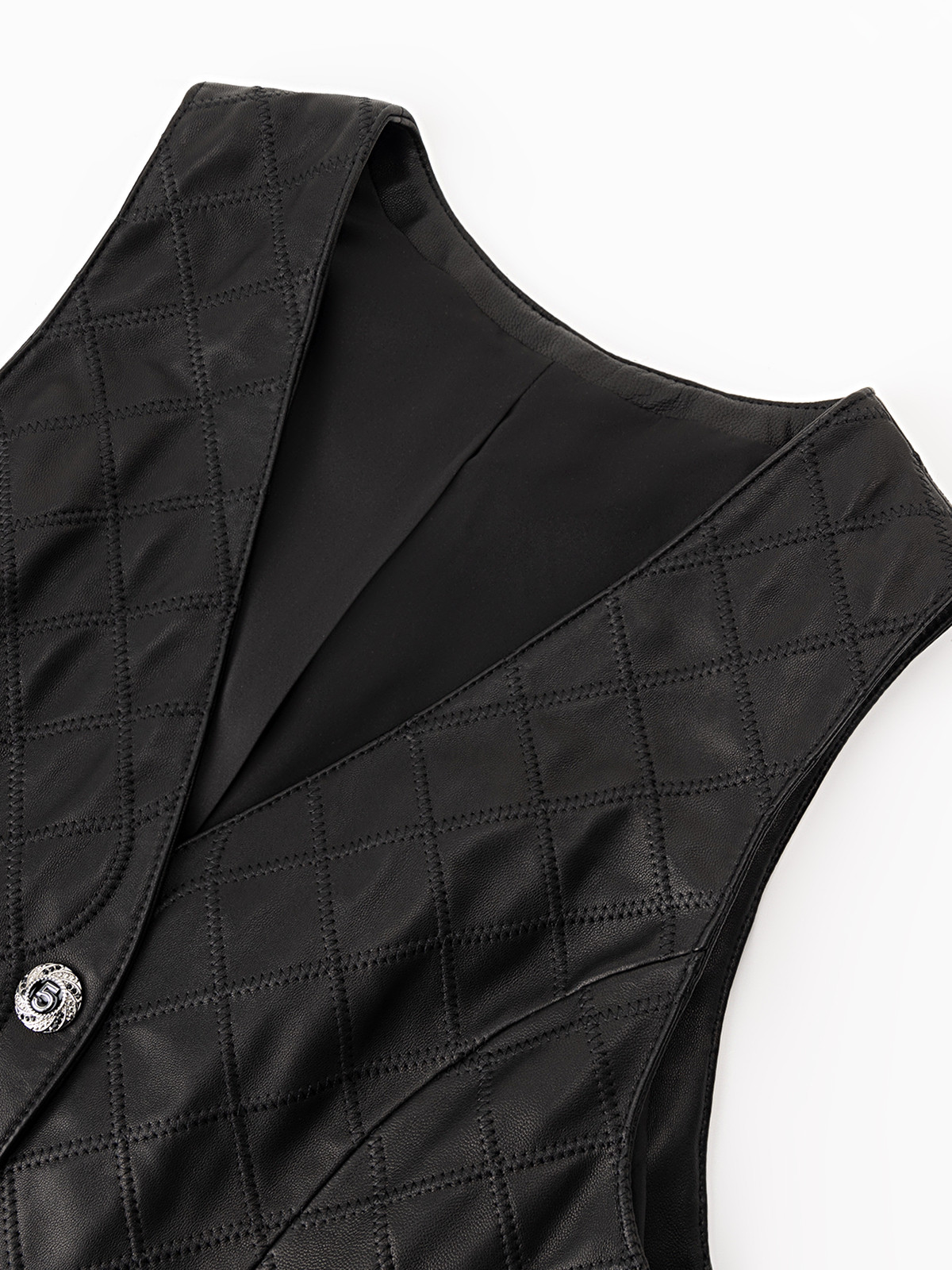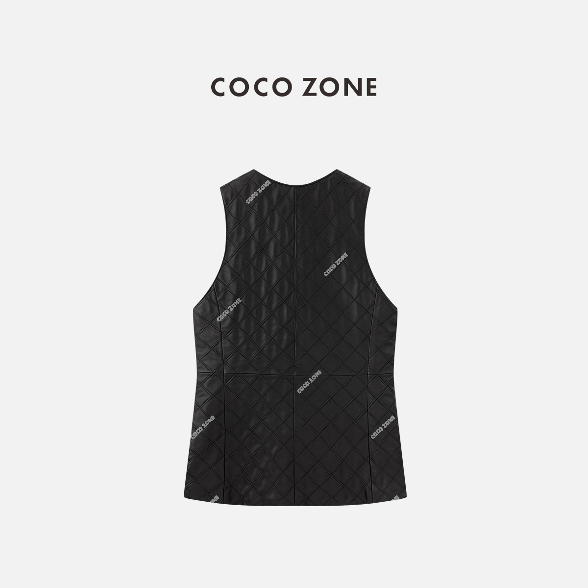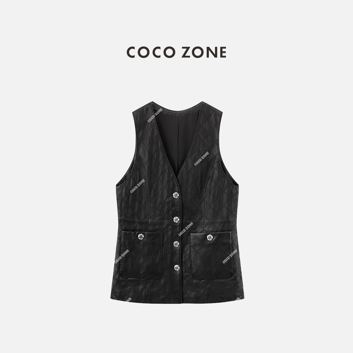COCO ZONE 时尚纯色菱格V领皮马夹无袖单排扣上衣CC2B0907