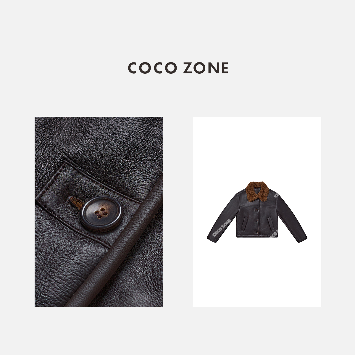 COCO ZONE 秋冬复古拼接polo领皮毛一体皮草CC2D2942