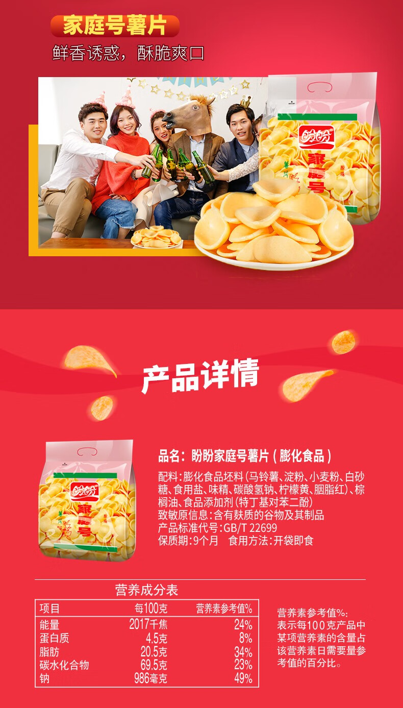 【鼎】GG盼盼家庭号薯片(新版)100g-原味*5包
