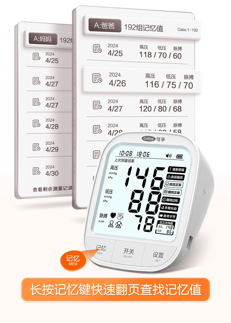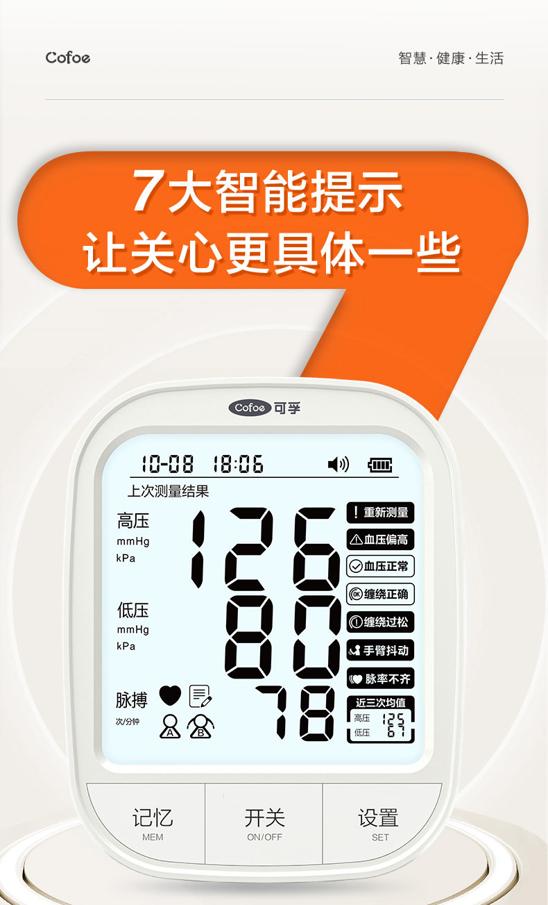 可孚血压计高精准血压家用测量仪正品医用高血压电子测血压仪器
