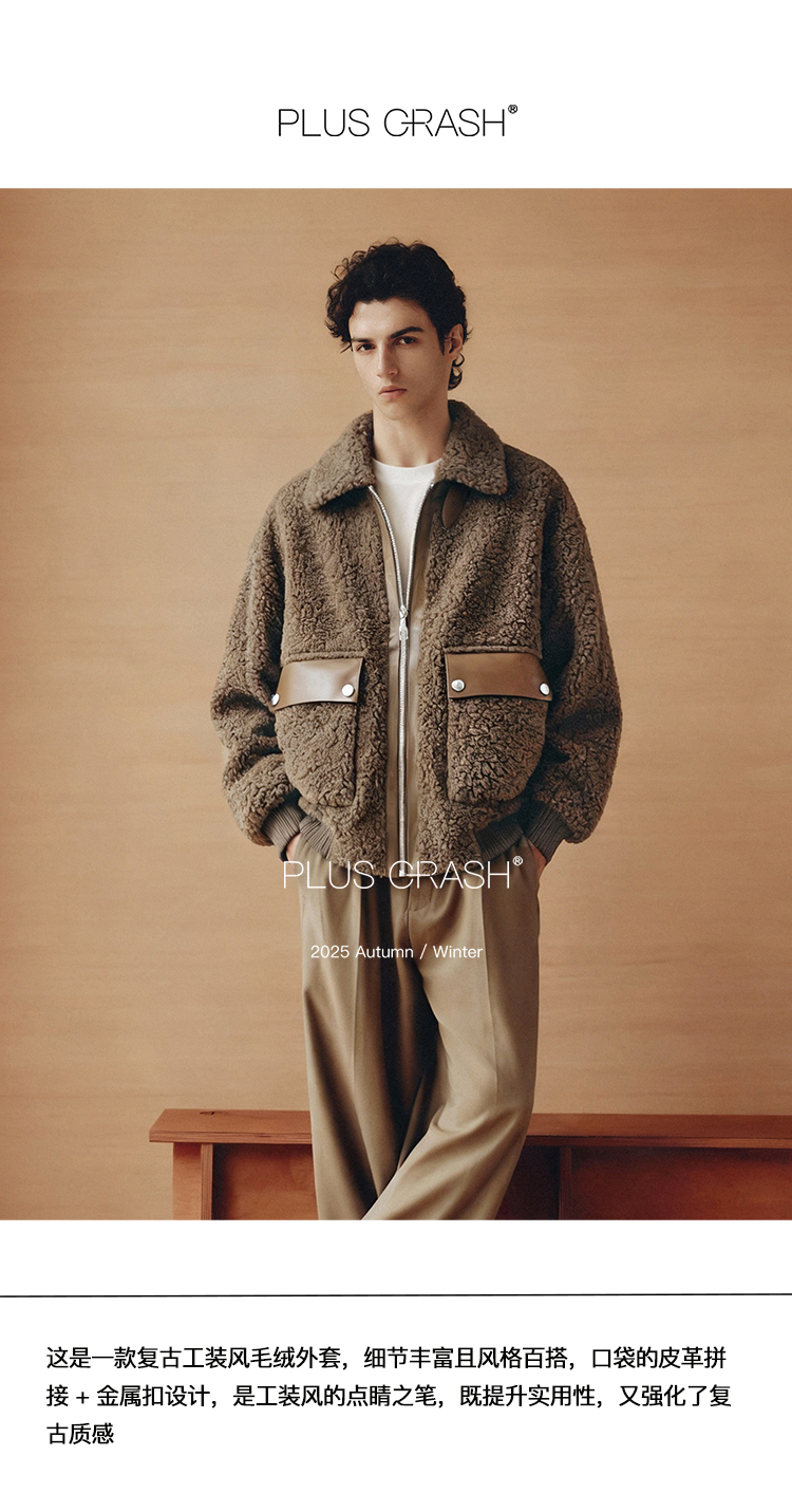 PLUS CRASH冬季新款底特律保暖老钱风高级感加厚百搭毛领夹克外套