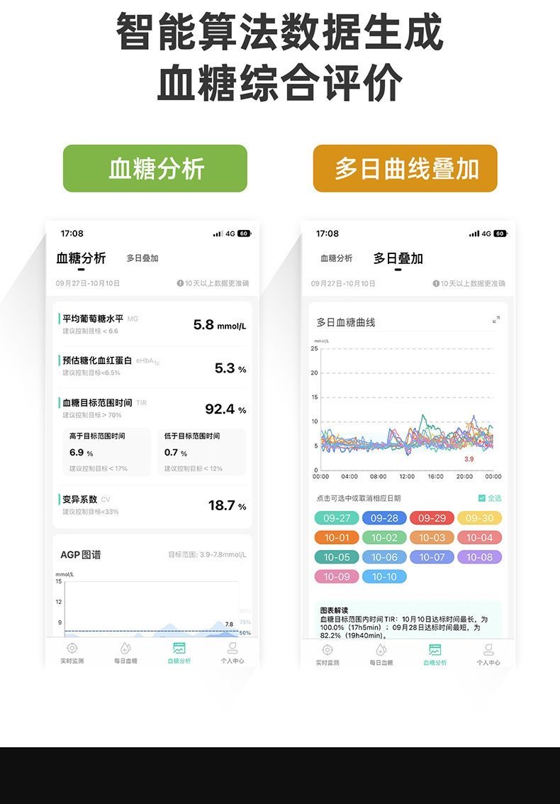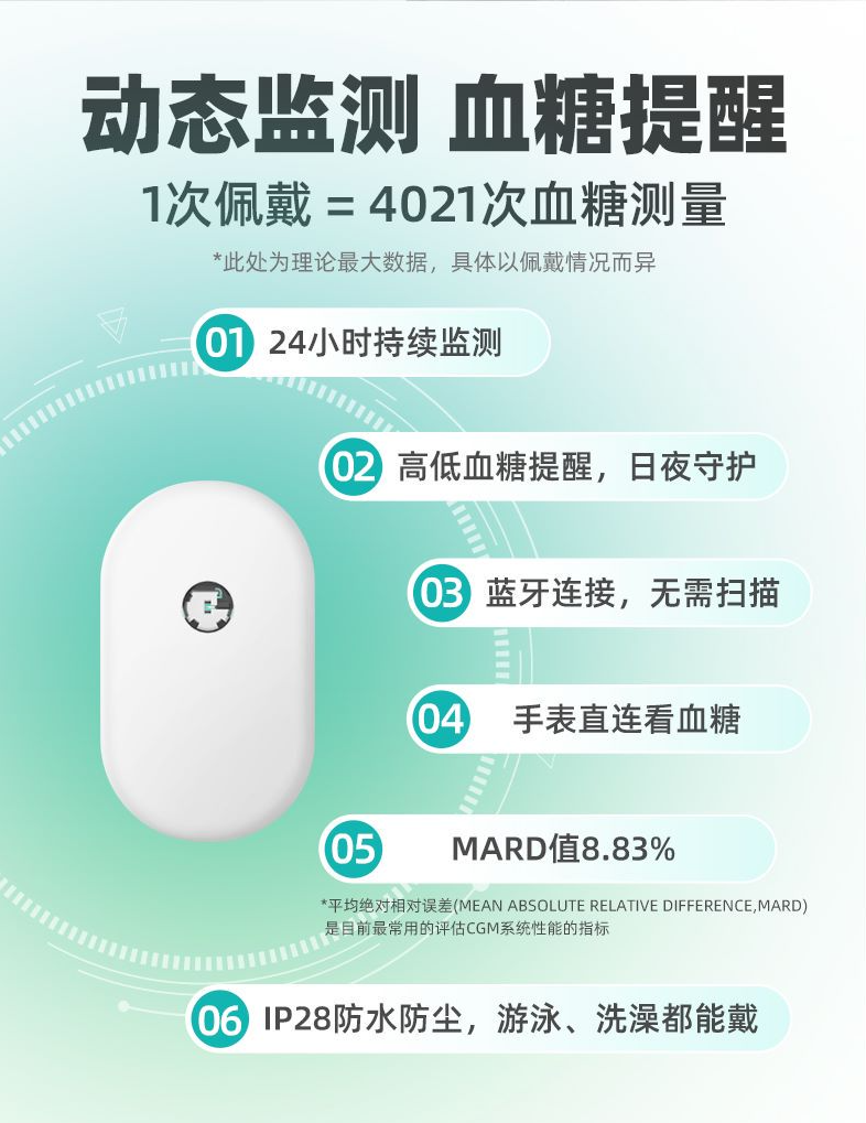 硅基动感动态血糖仪免扎手指持续血糖仪24小时血糖检测