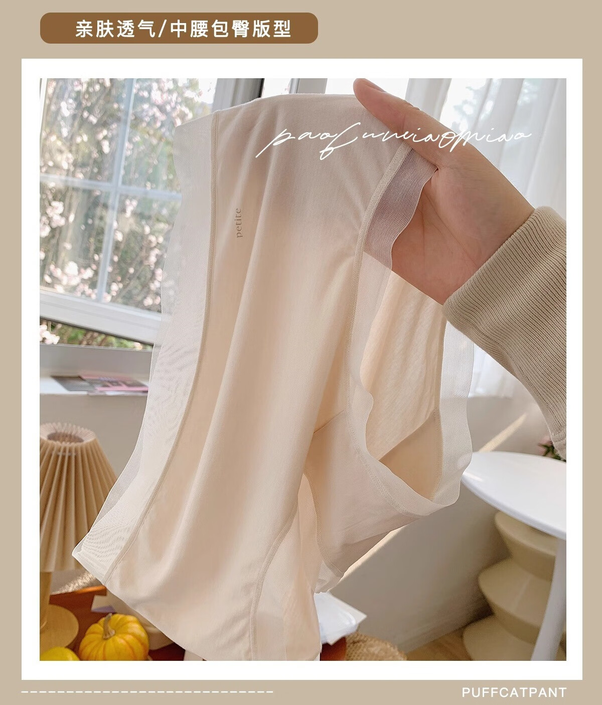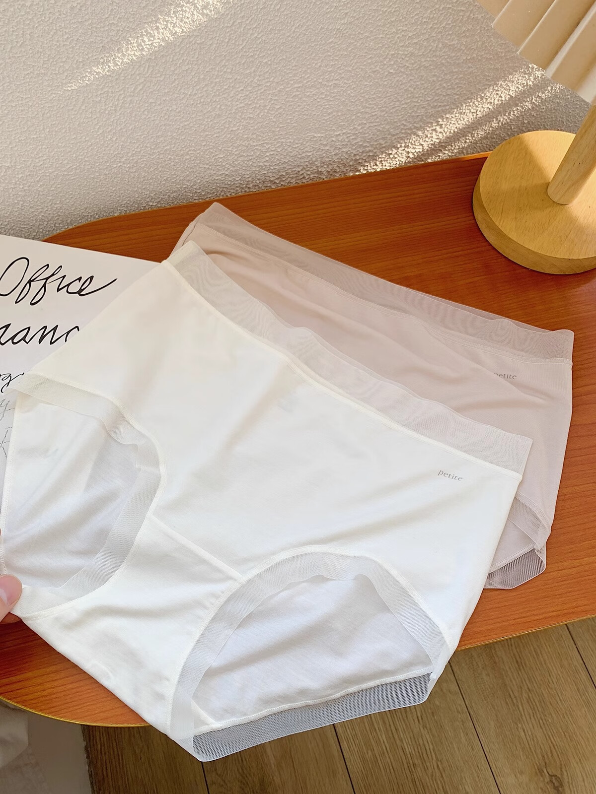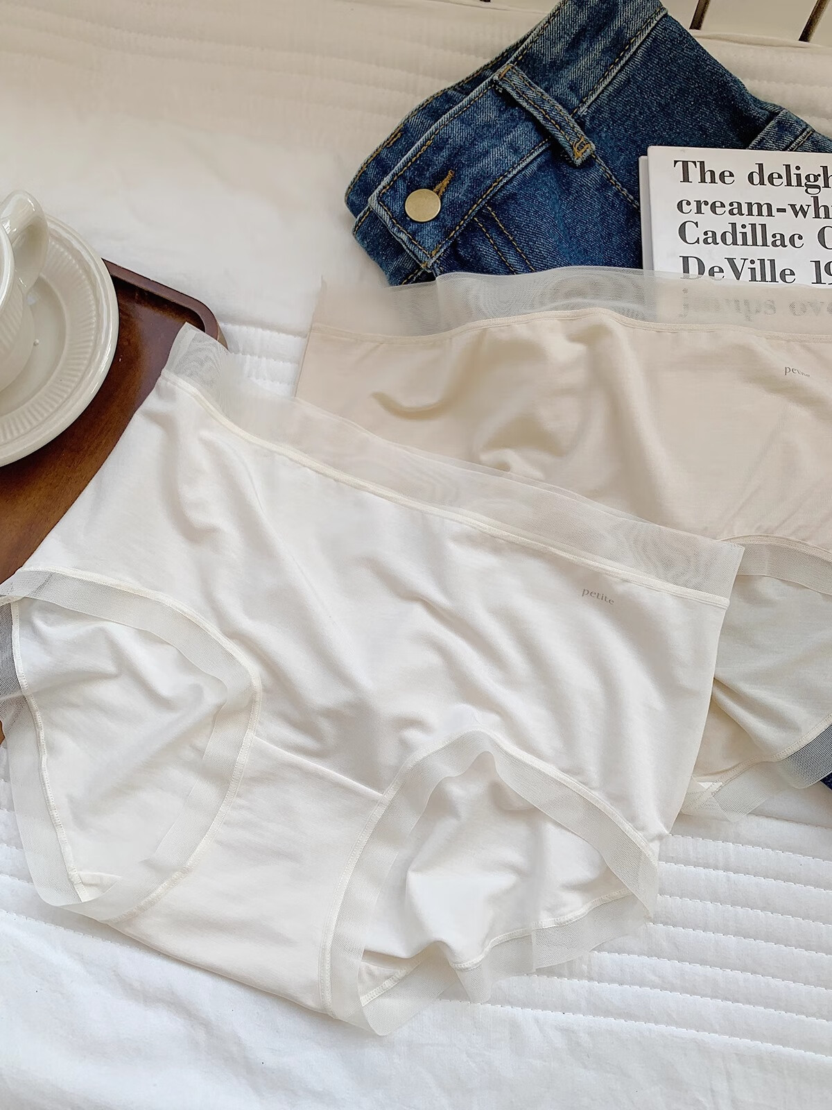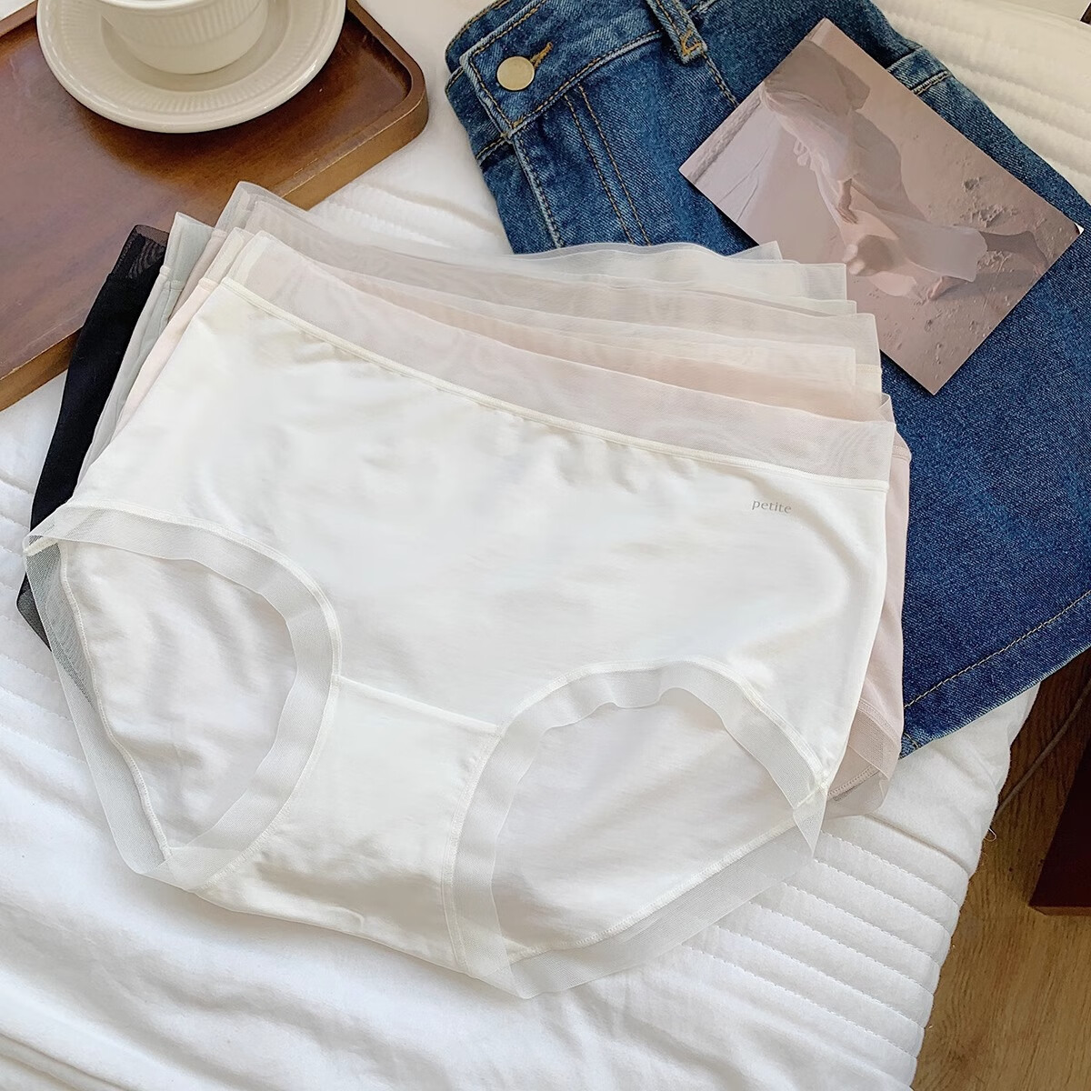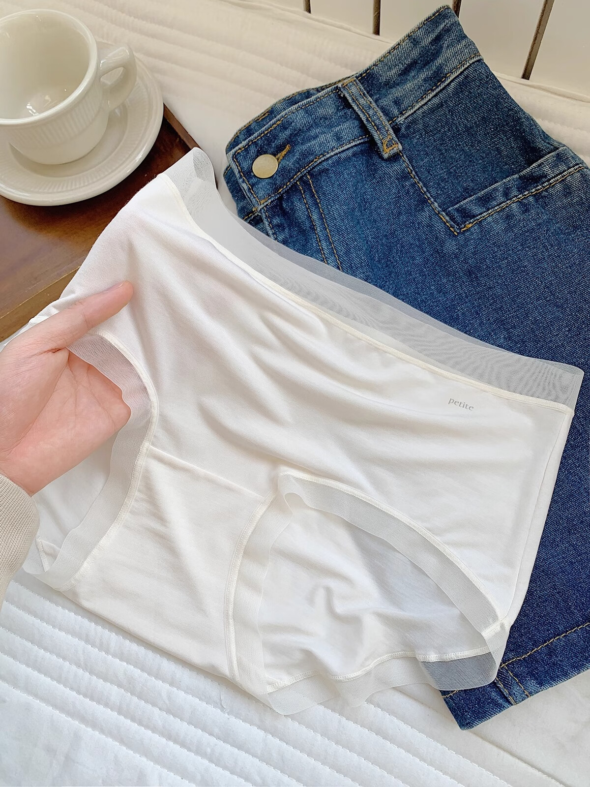 莫代尔 裸感无痕少女内裤桑蚕丝底裆高弹蕾丝腰头中腰包臀三角裤女 独立包装