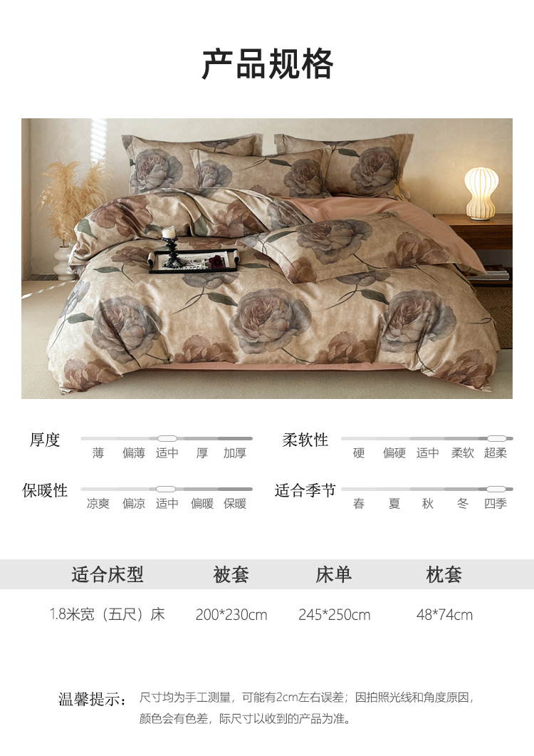 洁丽雅(Grace)帛书影.全棉轻奢美拉德系磨毛四件套JLY25802