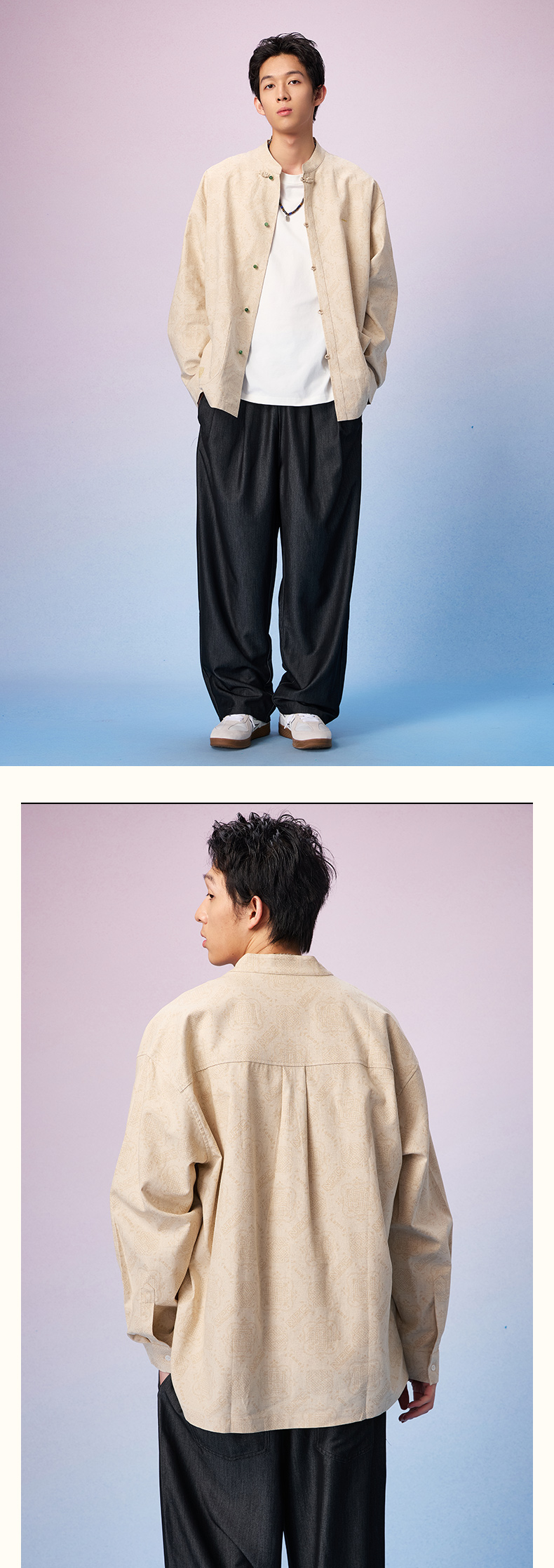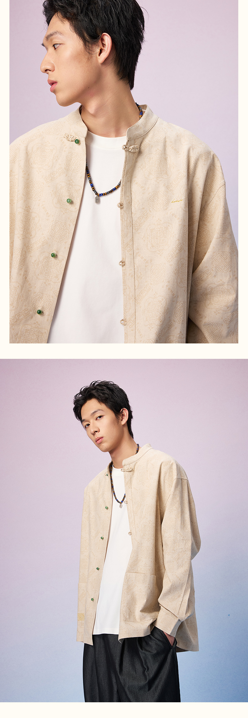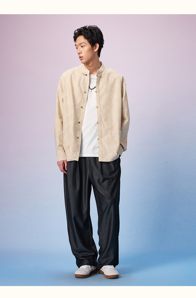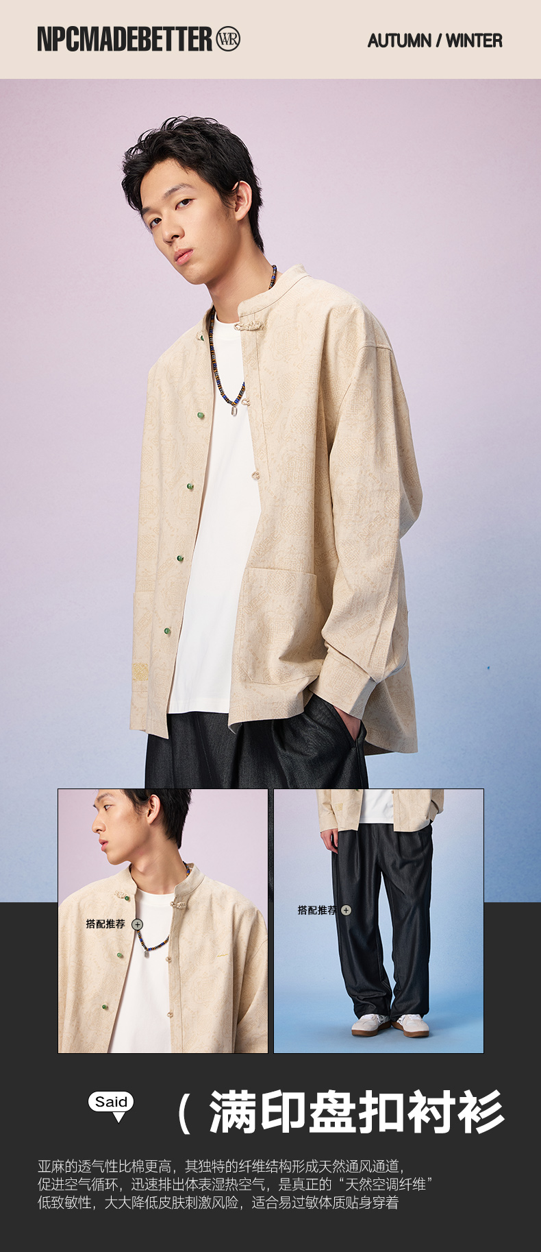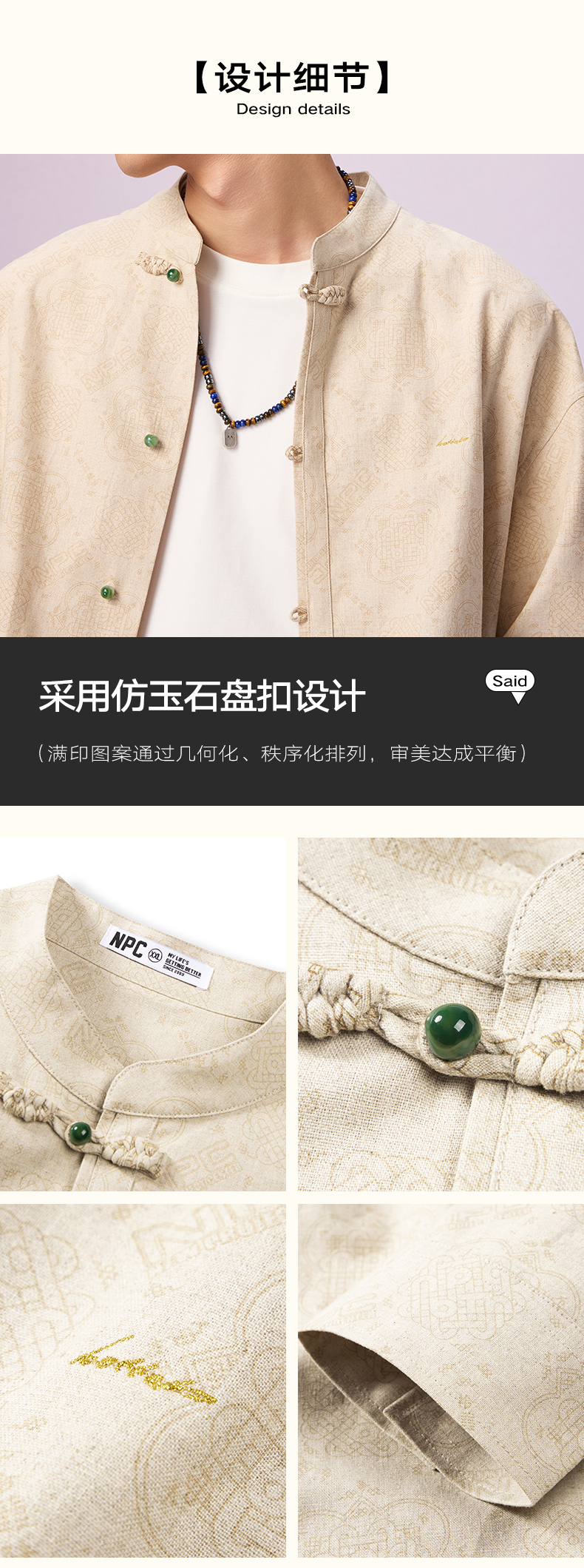 NPC潮牌周年【限定】亚麻棉混纺【八方纳财】盘扣衬衫男复古NP57SH20