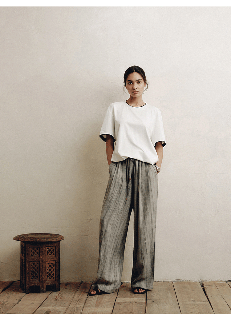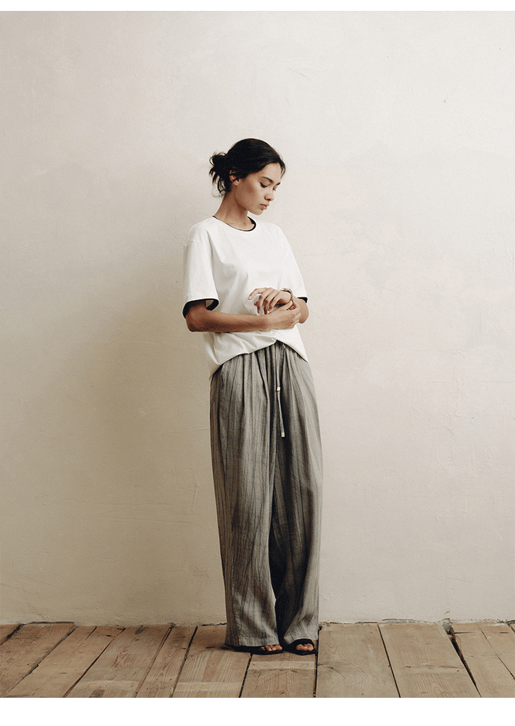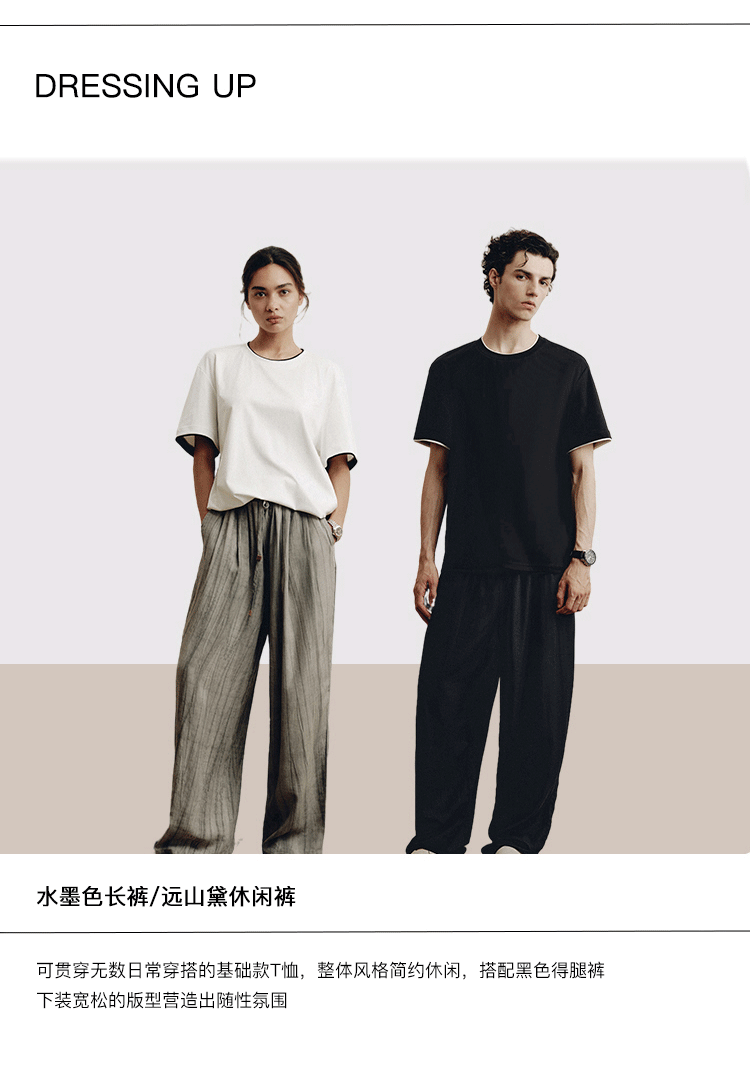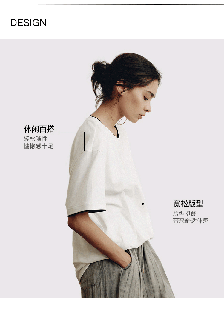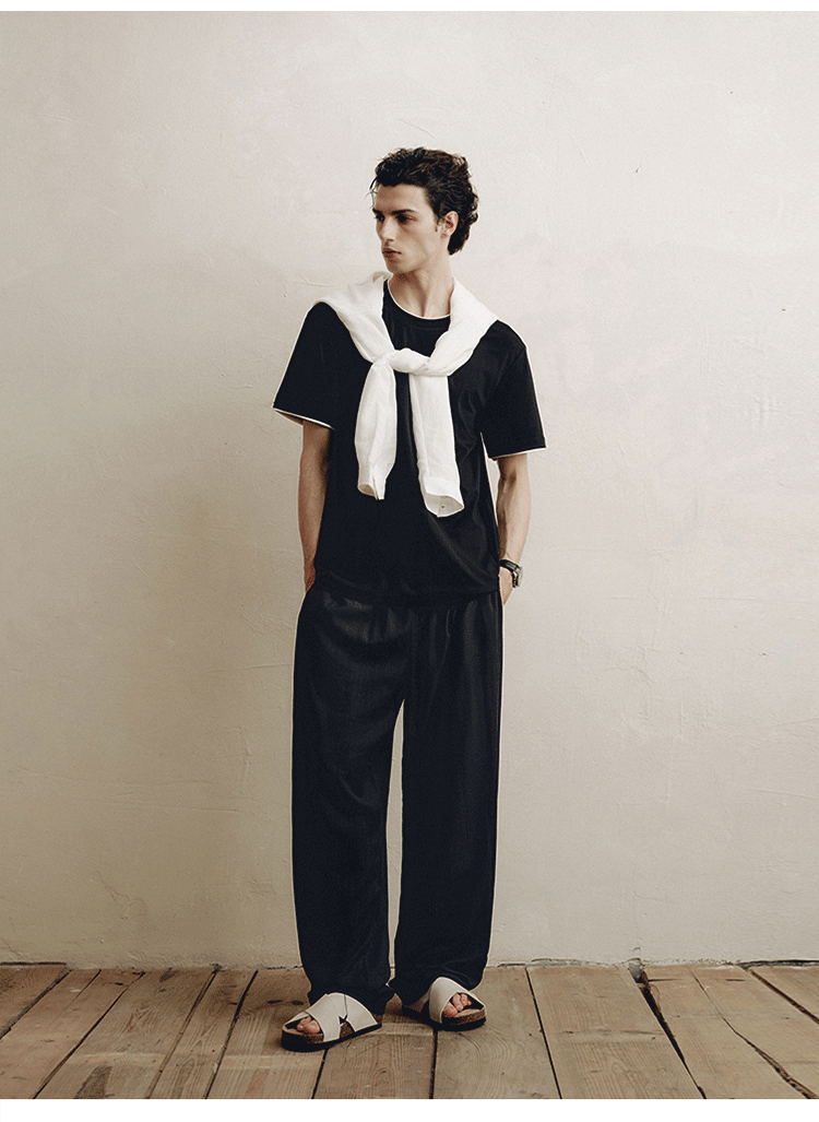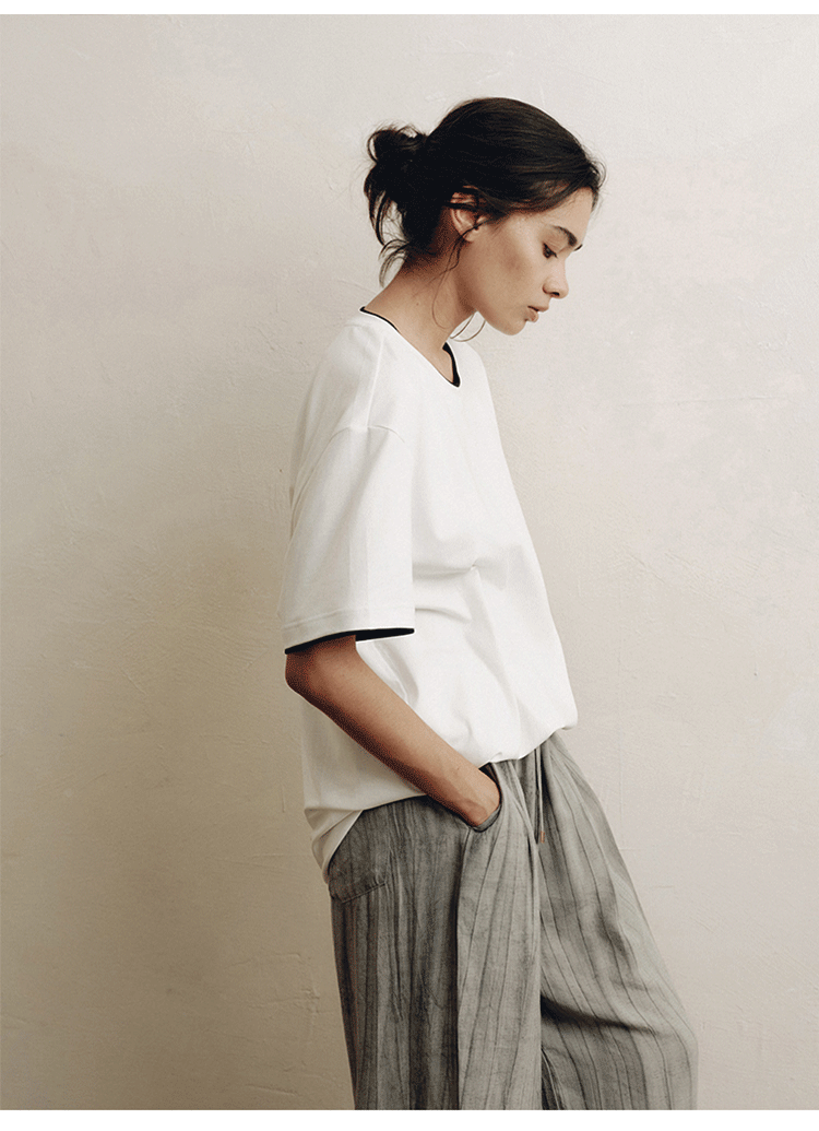 PLUS CRASH轻奢舒适领部双层撞色短T恤港风黑白纯色简约休闲T恤衫