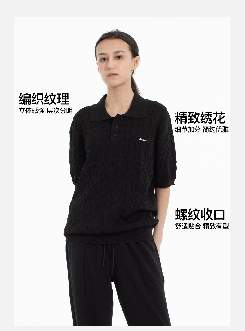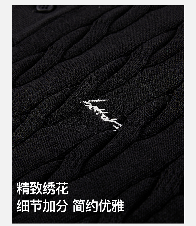 NPC潮牌复古老钱风刺绣logo针织绞花短袖POLO衫男舒适NP53TS21