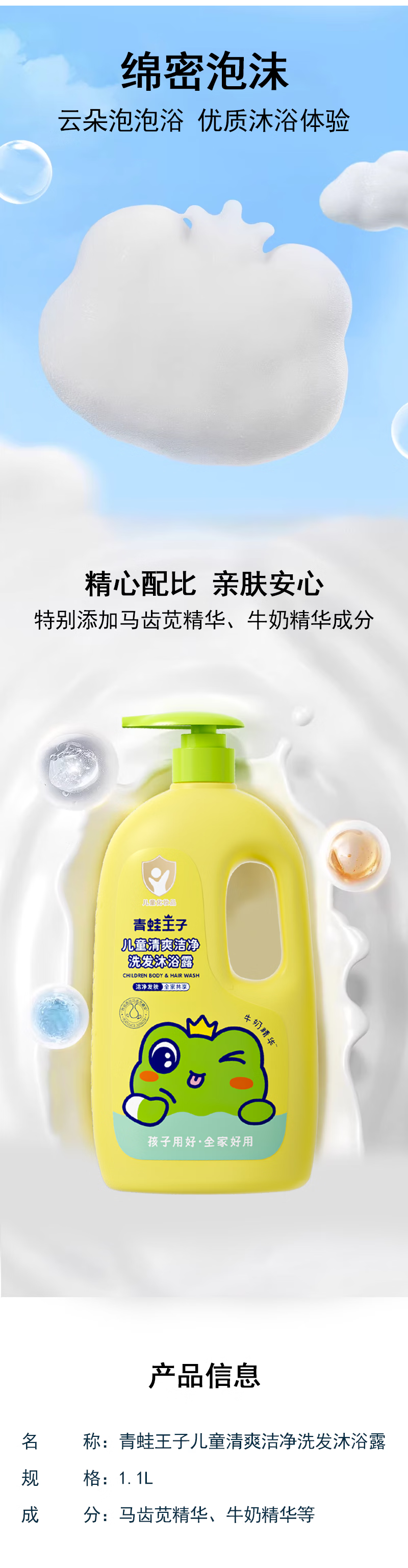 青蛙王子儿童清爽洁净洗发沐浴露1.1L【21004028】