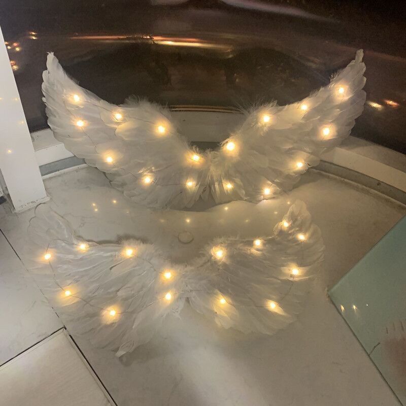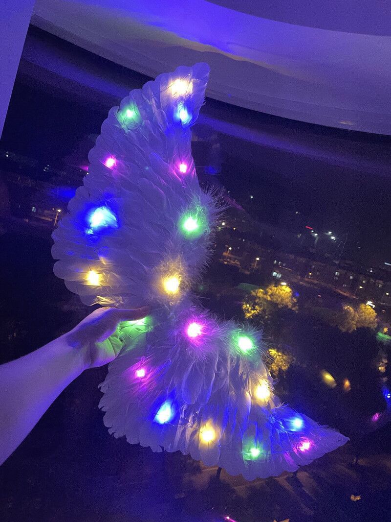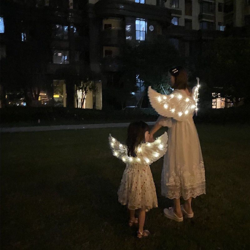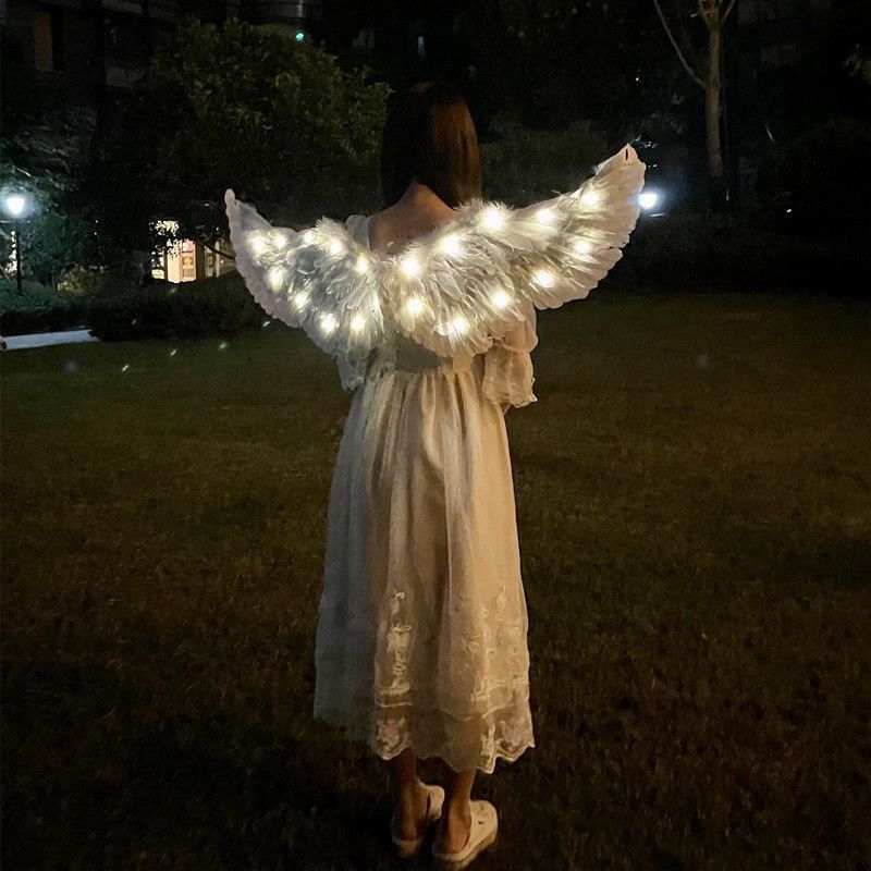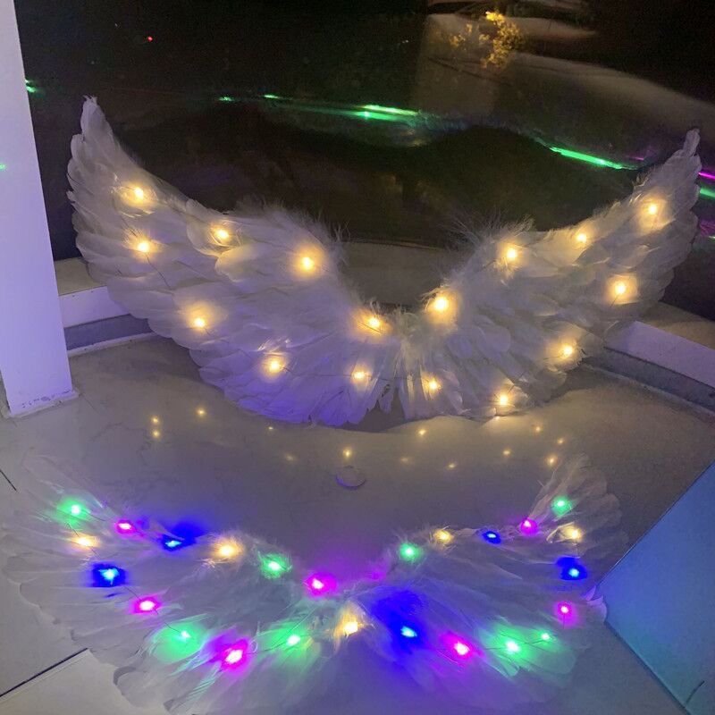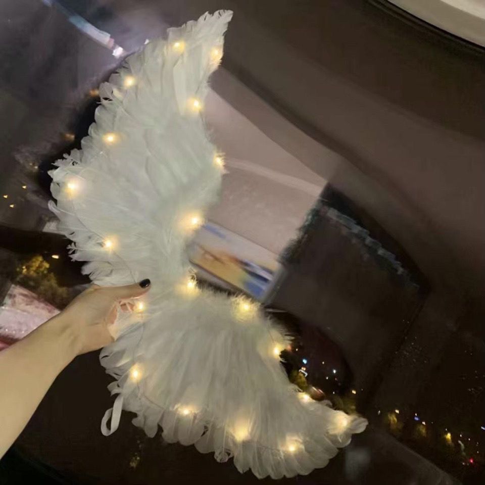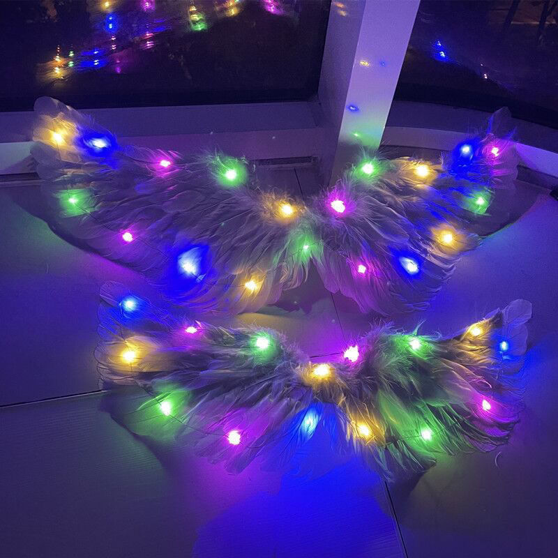 发光羽毛翅膀天使羽毛翅膀公主羽毛翅膀小女孩拍照表演道具花童女