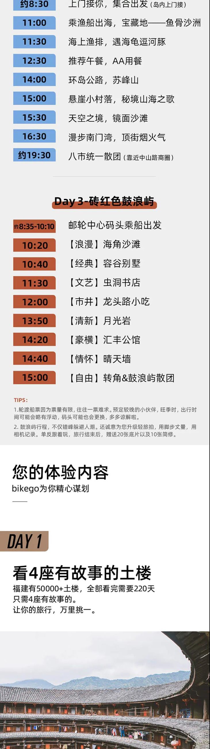 3.【鼓浪屿行程】不包含往返码头的接送费用。