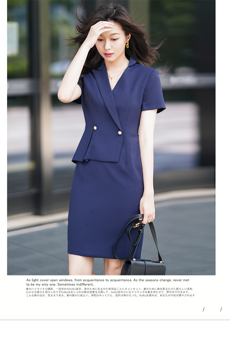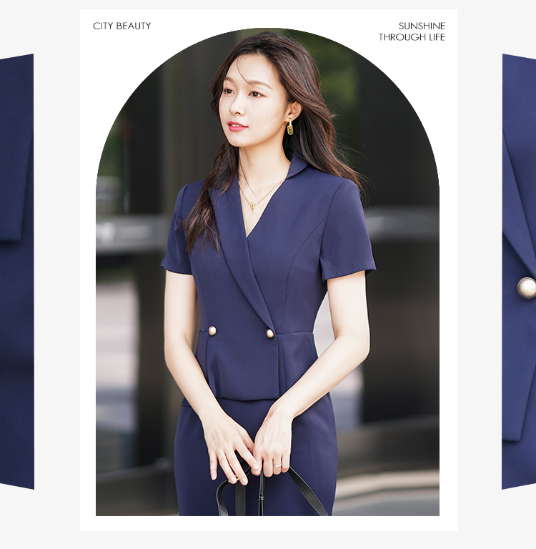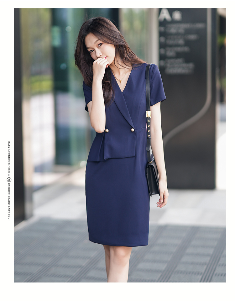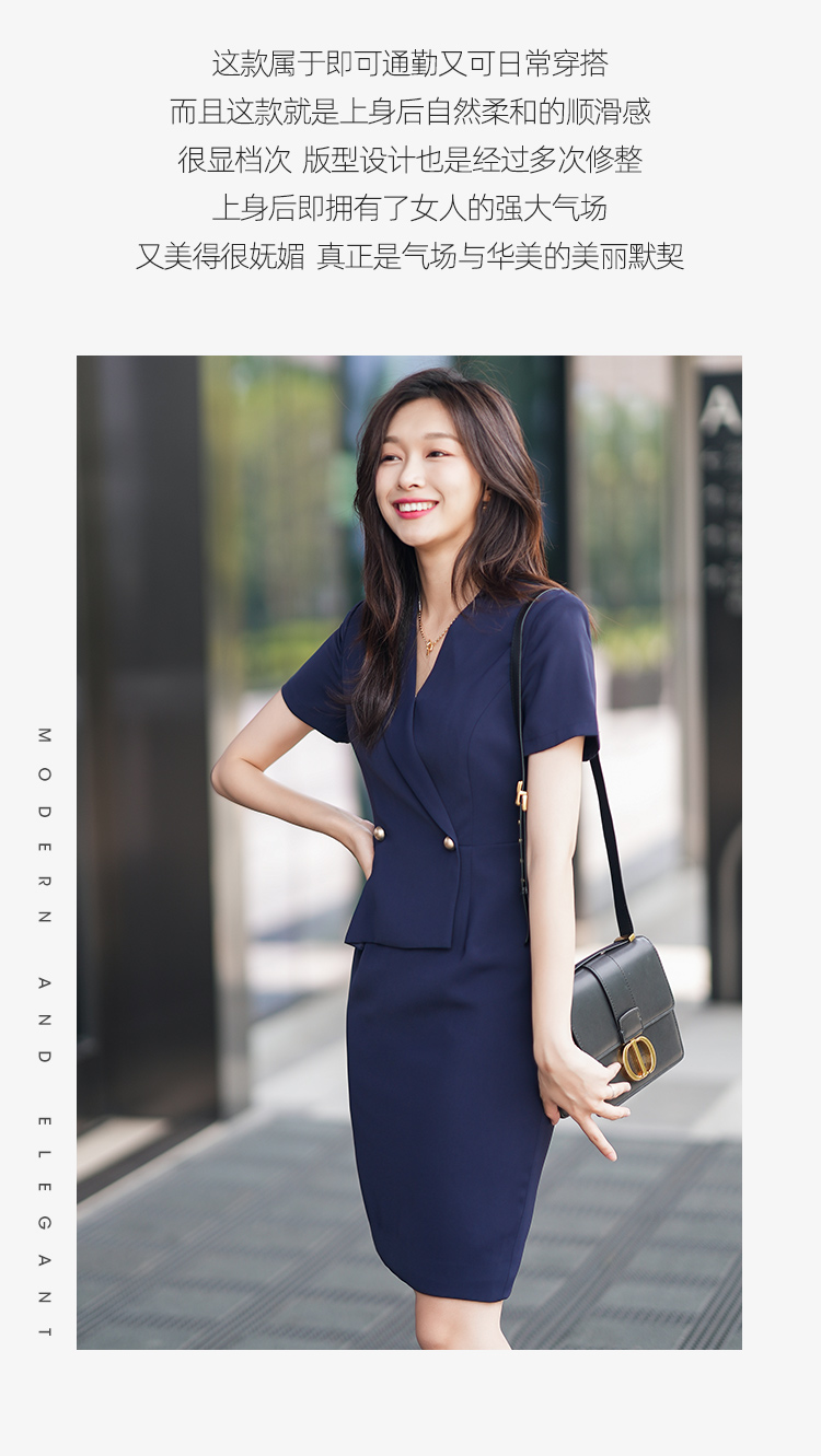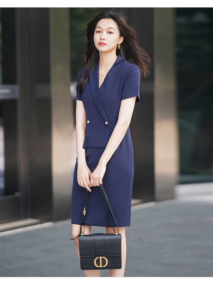 藏青色职业连衣裙女夏季新款设计感气质收腰显瘦短袖西装裙
