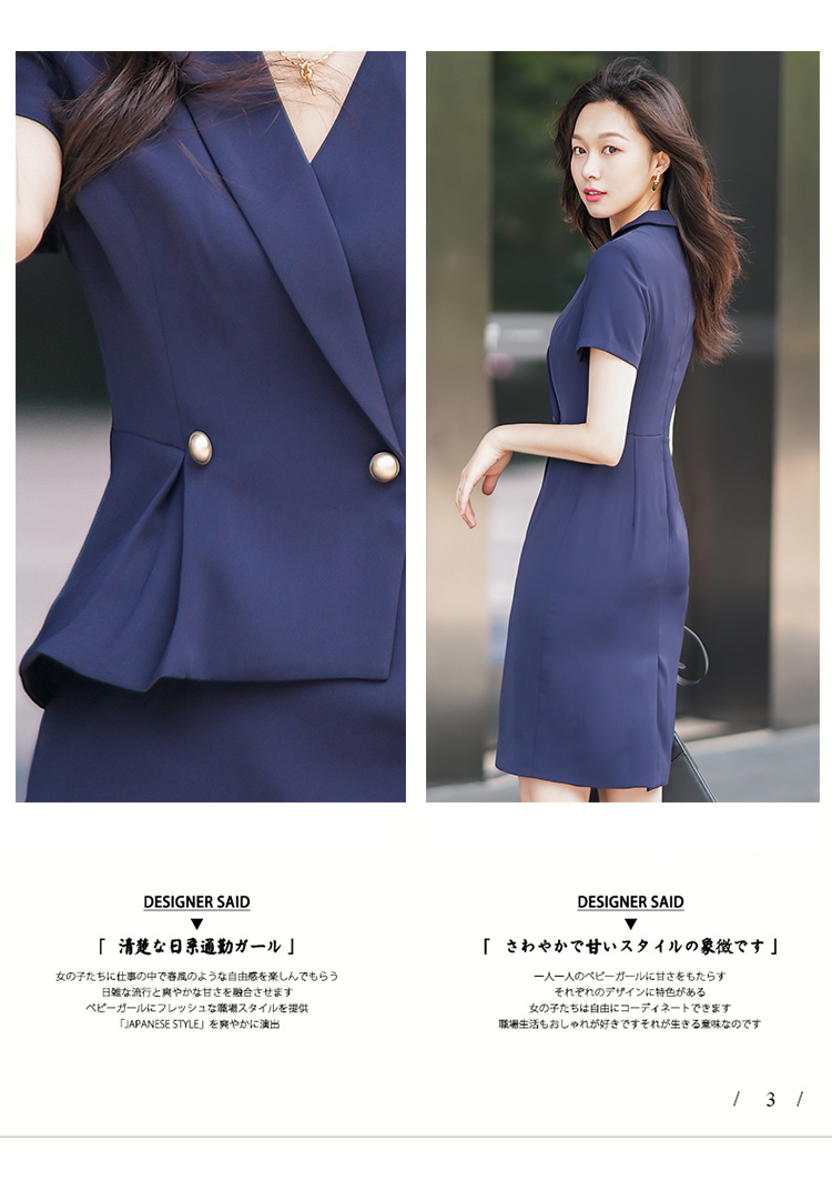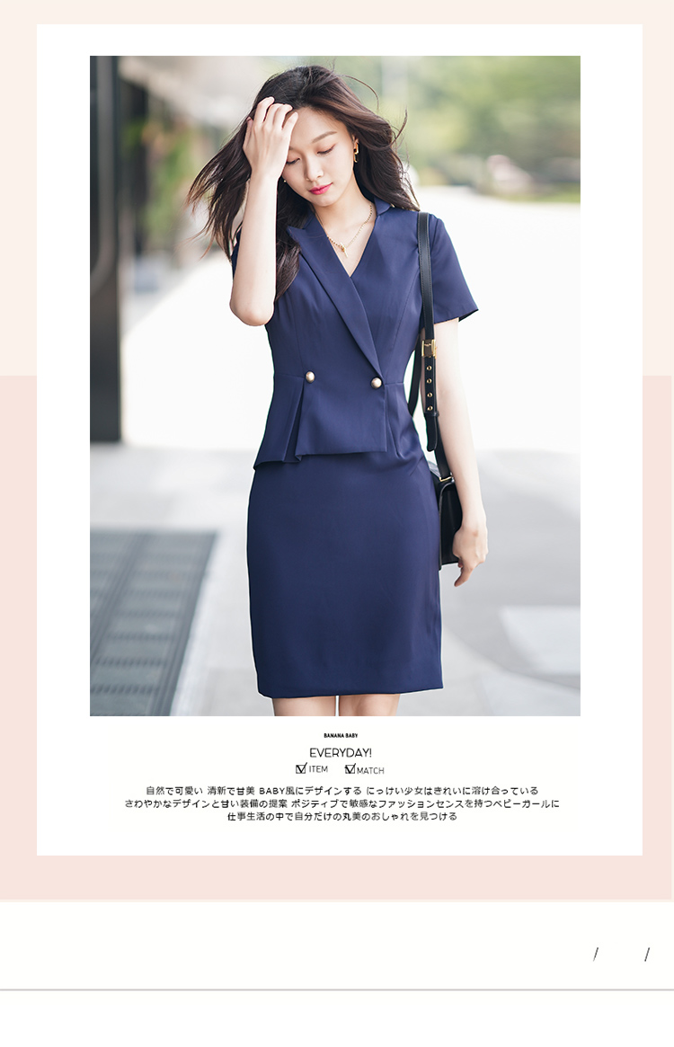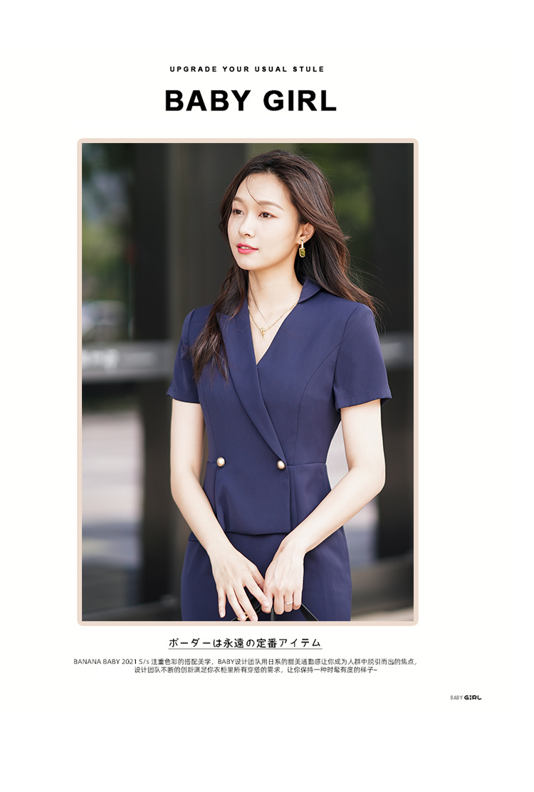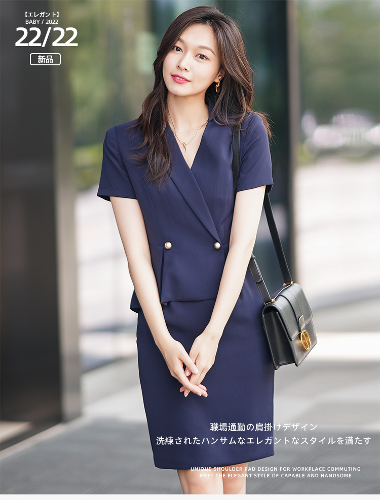 藏青色职业连衣裙女夏季新款设计感气质收腰显瘦短袖西装裙