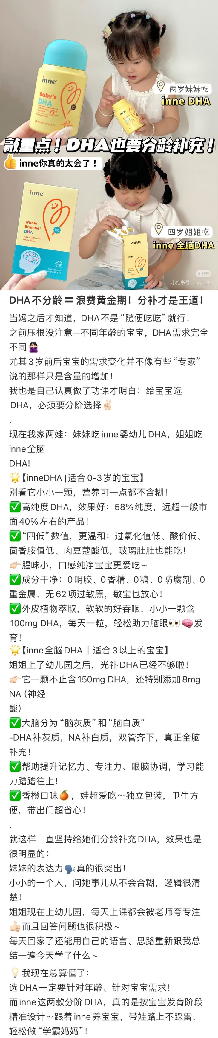 [屁侠推荐]inne婴儿全脑DHA儿童DHA海藻油非鱼油核桃油 学习更专注