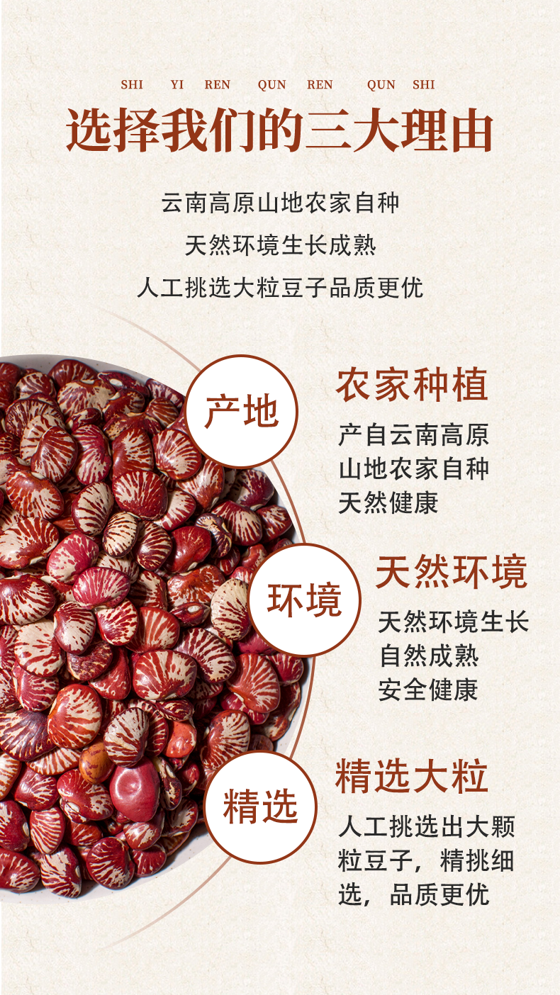 【食品】斑马豆肾形豆新货云南农家自种花芸豆红花豆子500克/袋