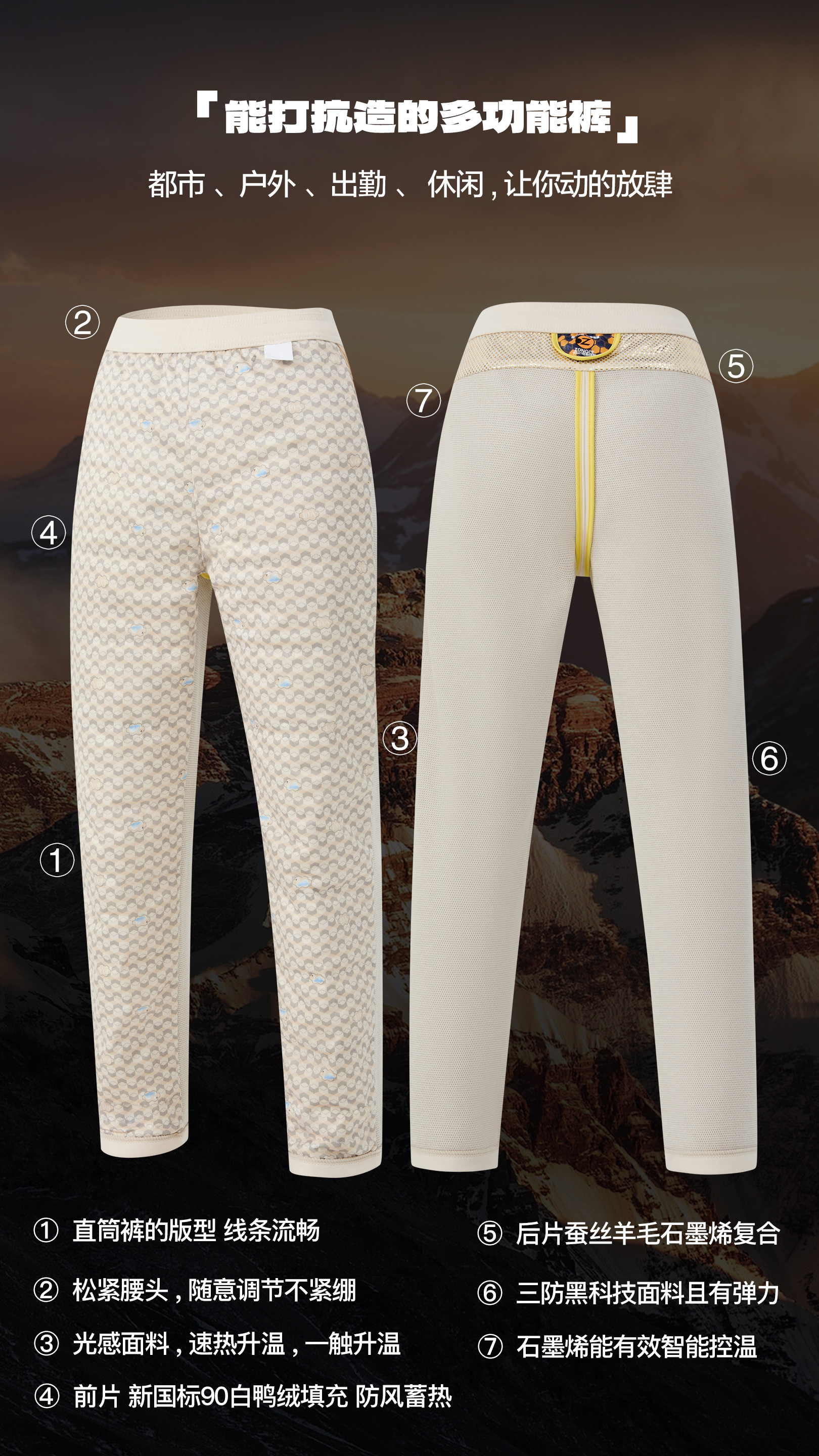 【多重黑科技羽绒裤】男女同款 抗寒-10没问题 10Ayi菌+石墨烯发热面料+羽绒 ,内里填充90%白鸭绒充绒,加倍蓬松锁温#Z