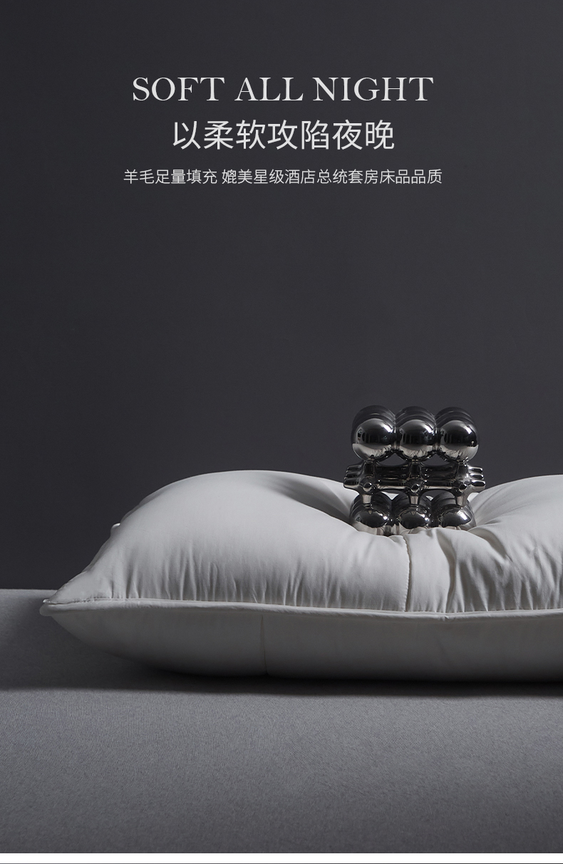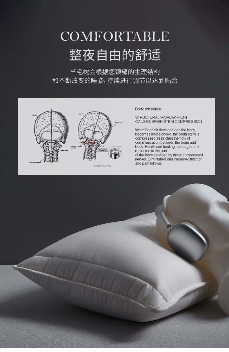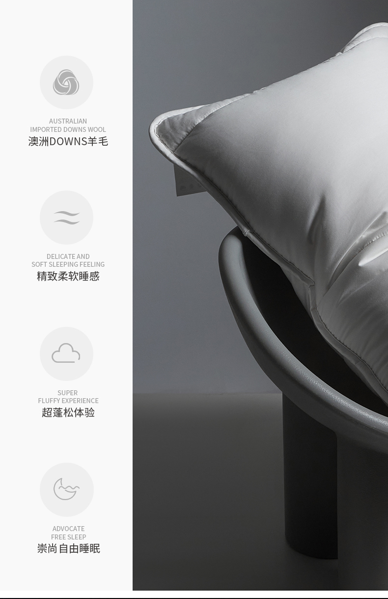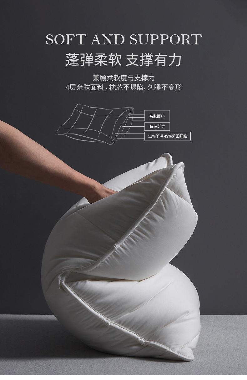 澳洲品牌AusGoldenM系列 澳洲进口亲肤羊毛胖枕枕头 蓬松柔软 支撑有力