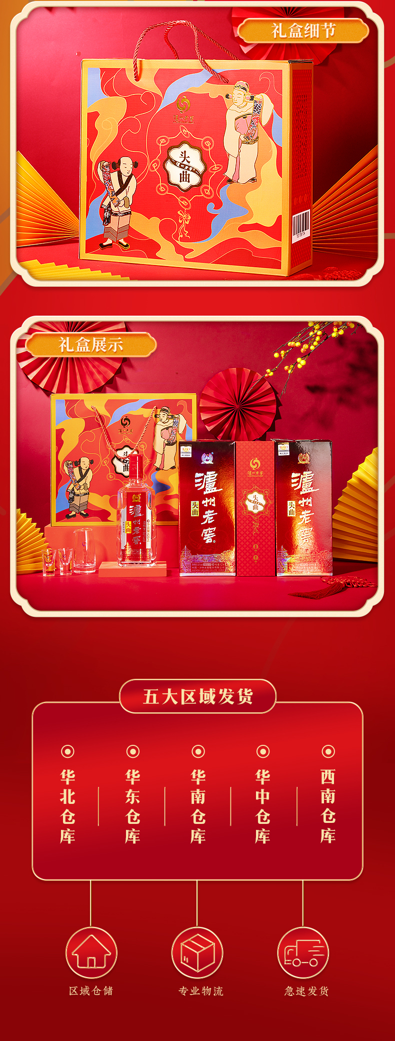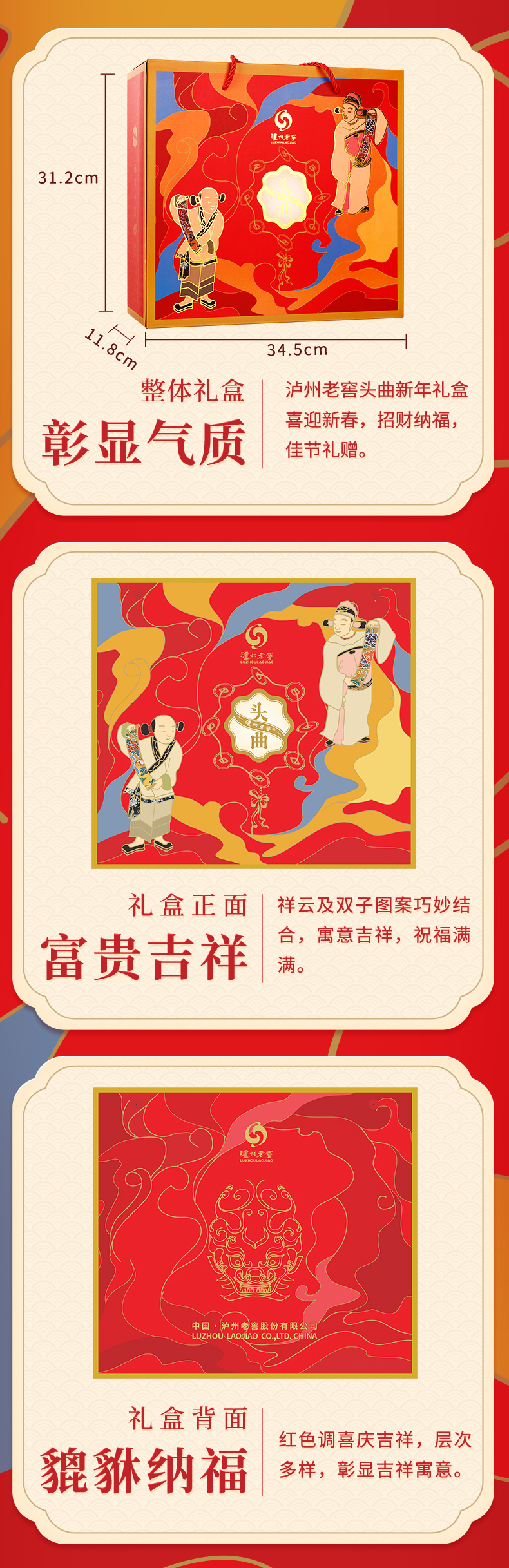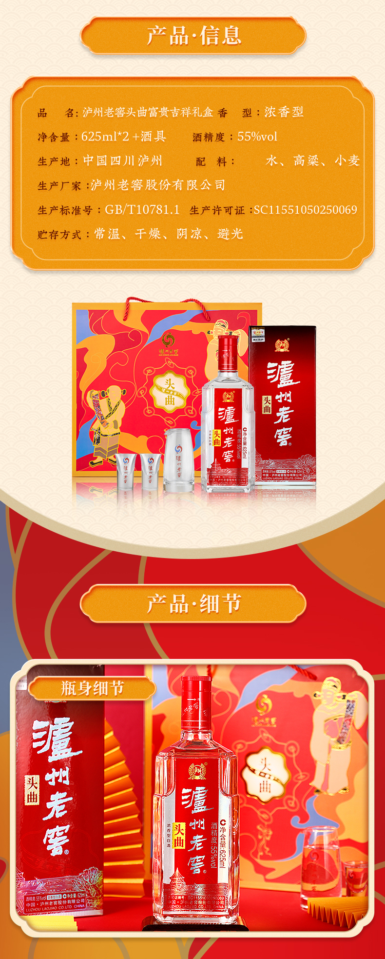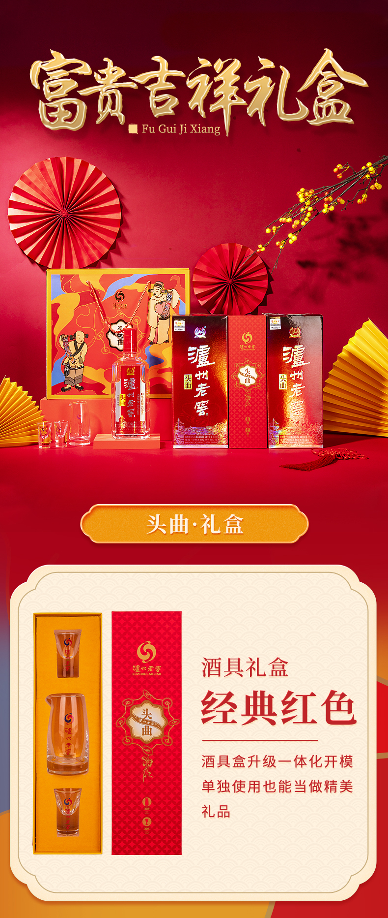 【钜惠优惠组合】55度泸州老窖头曲富贵吉祥礼盒(625ml*2瓶)*3盒+52度泸州贡酒(保护大熊猫爱心纪念版)整箱 泸州老窖官方旗舰店