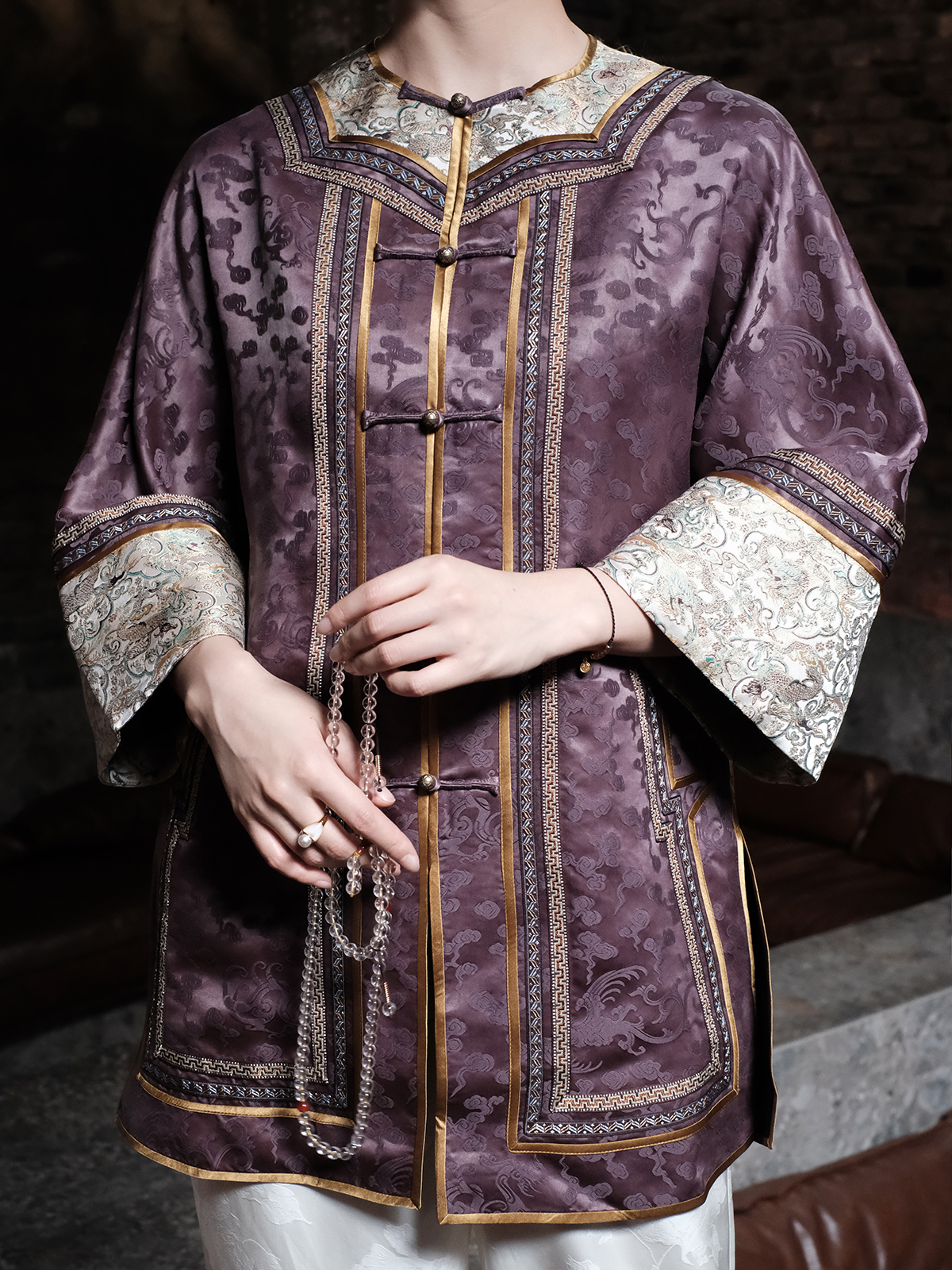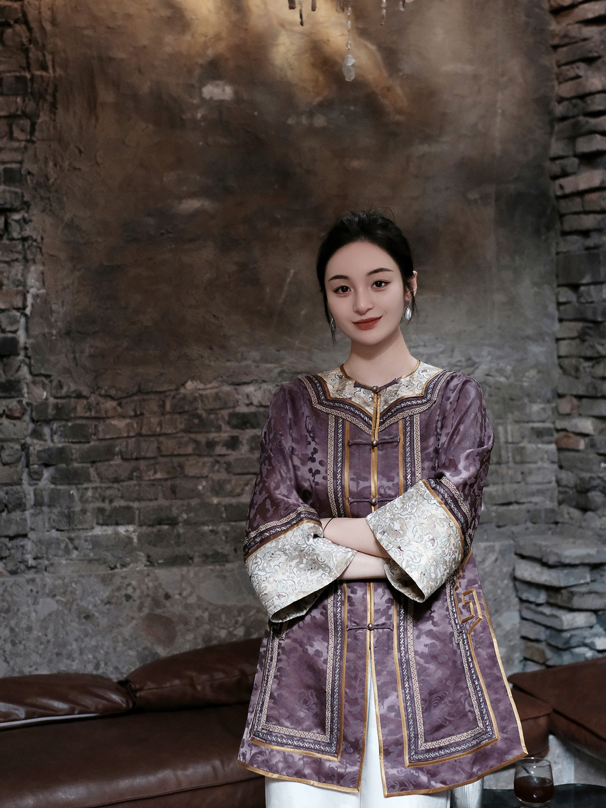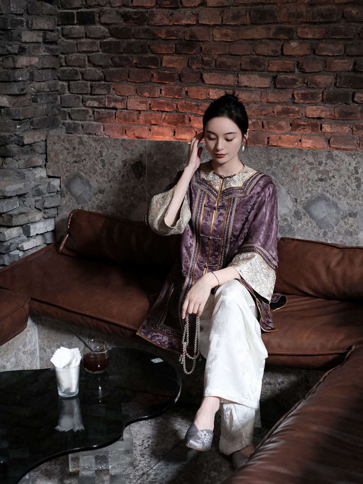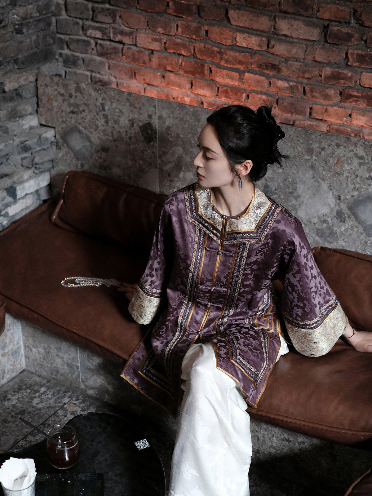 盛唐牡丹 |勃艮第红冠乐绉斜襟上衣