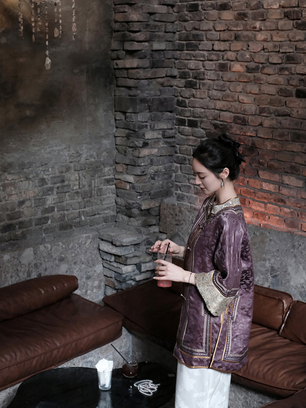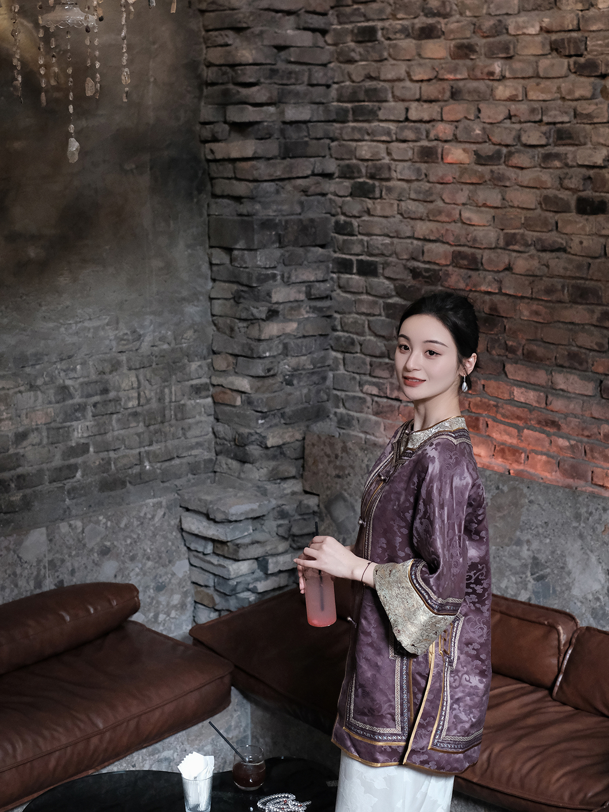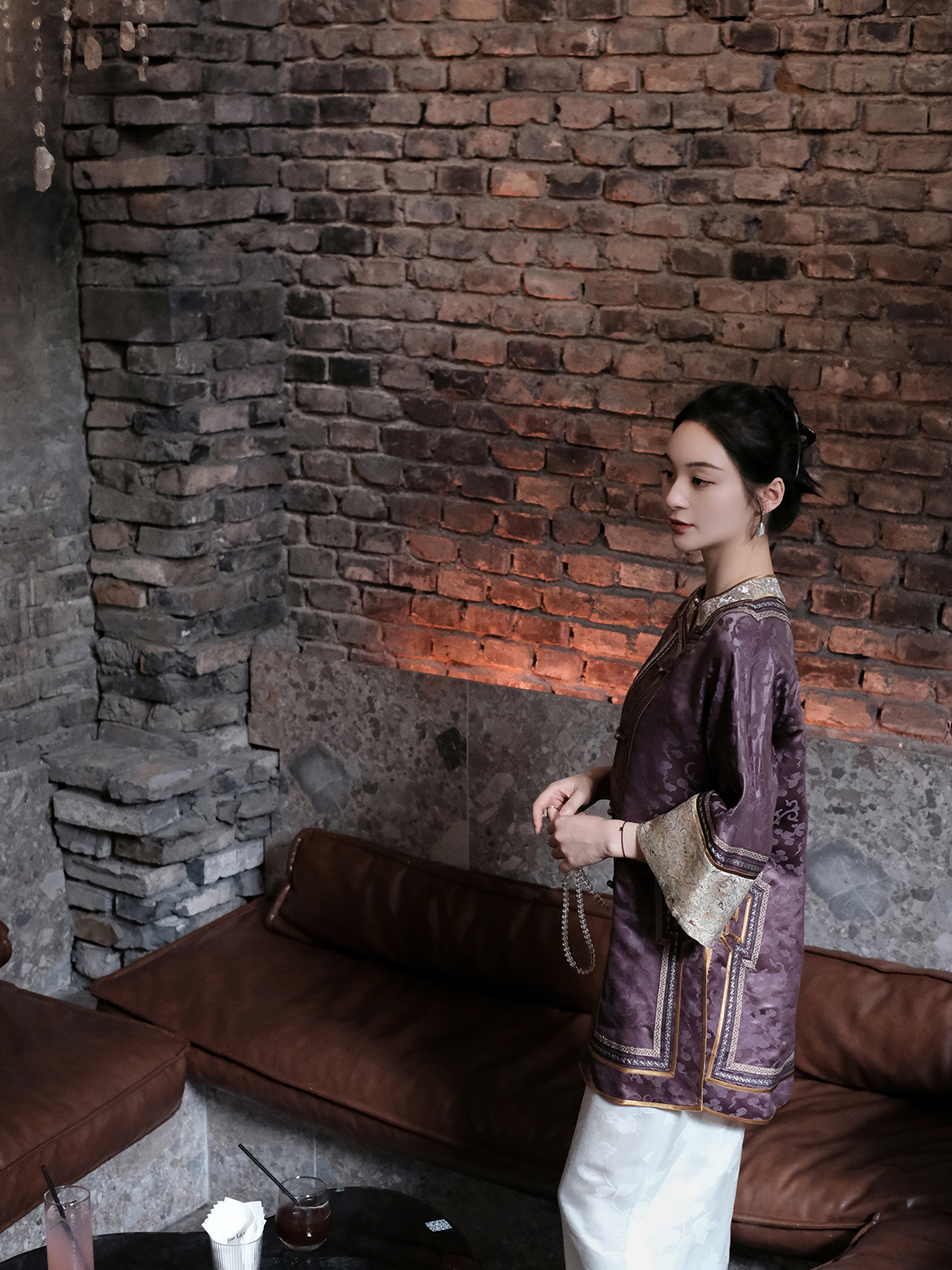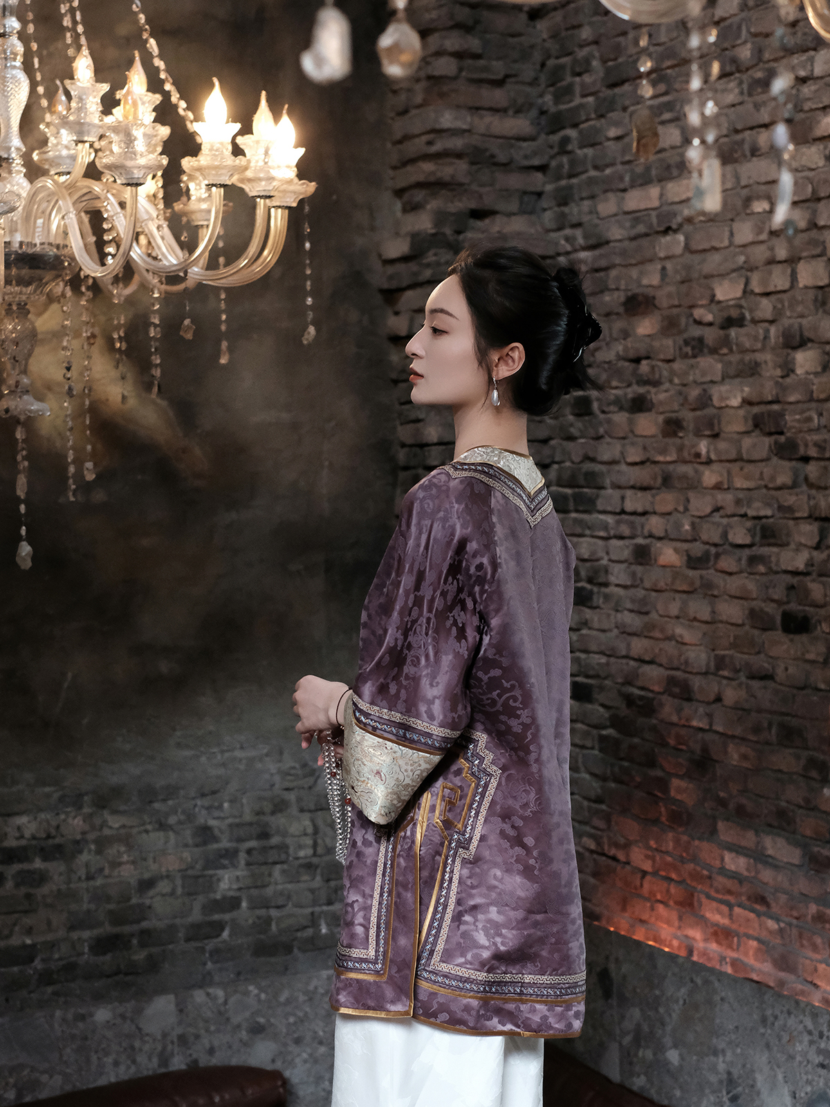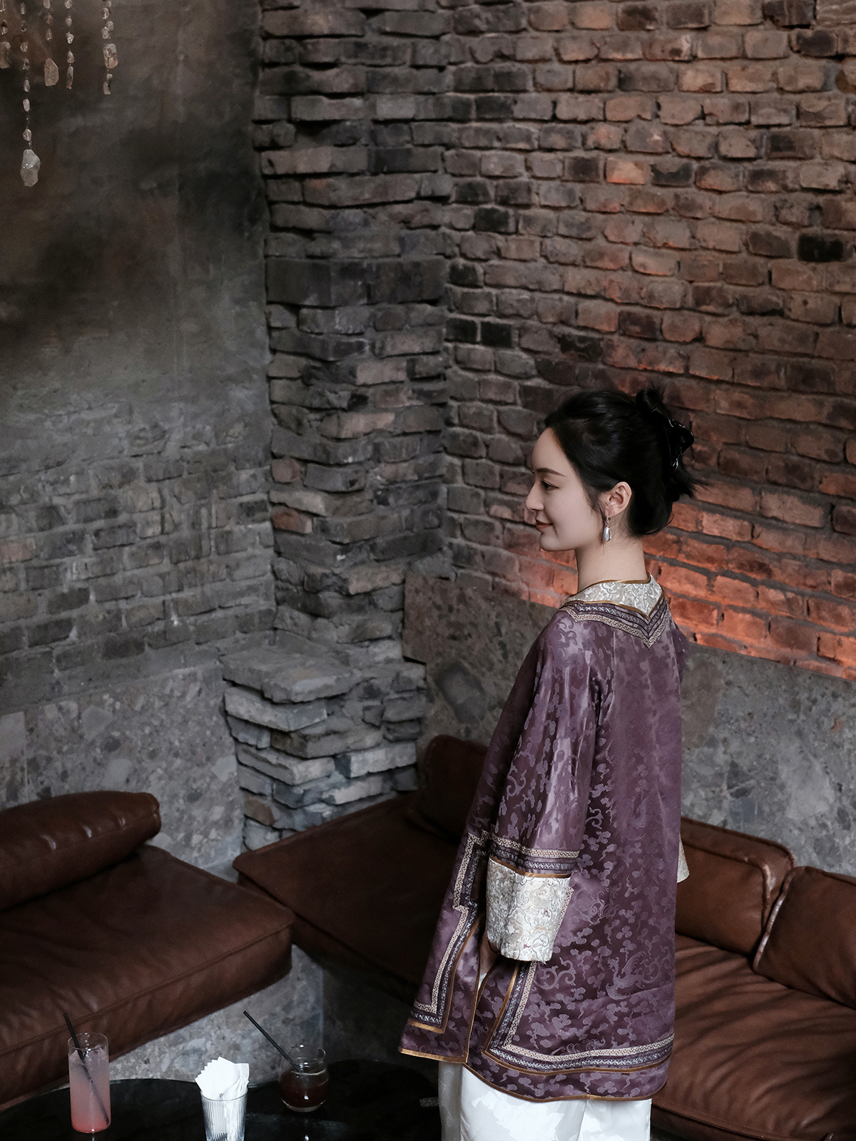 盛唐牡丹 |勃艮第红冠乐绉斜襟上衣