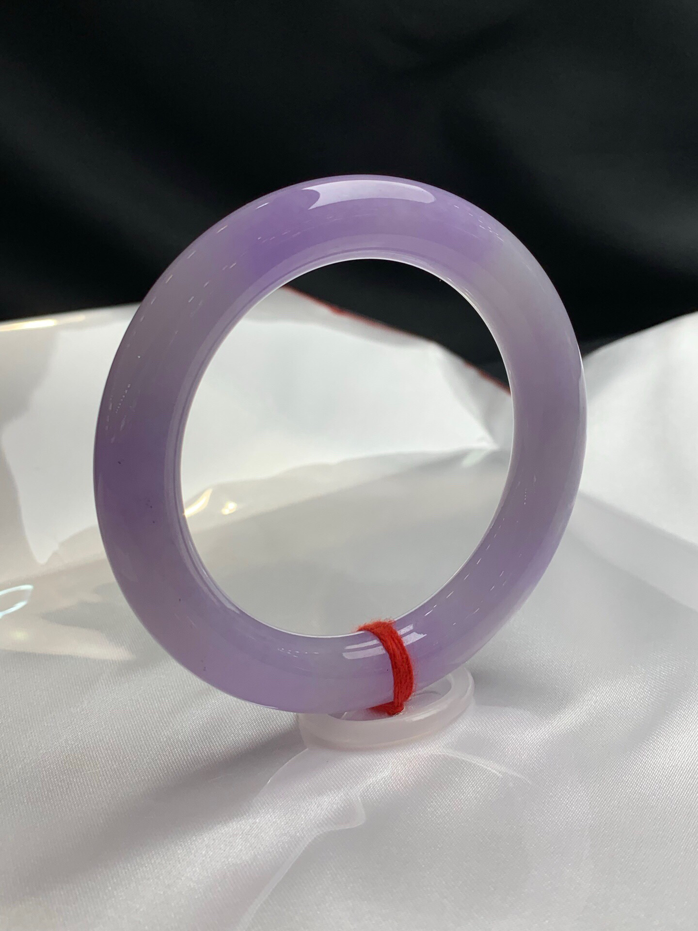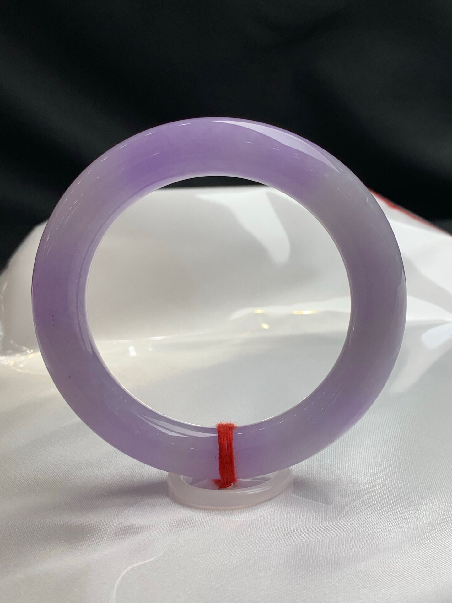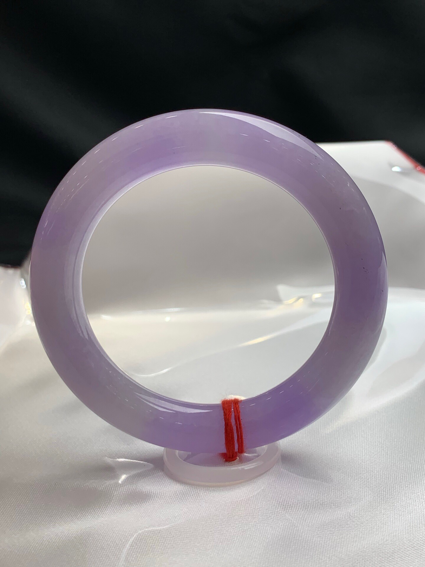 620640,58.2圈口,糯化满紫圆条福镯,几乎满全紫色,色泽浓郁,水头好