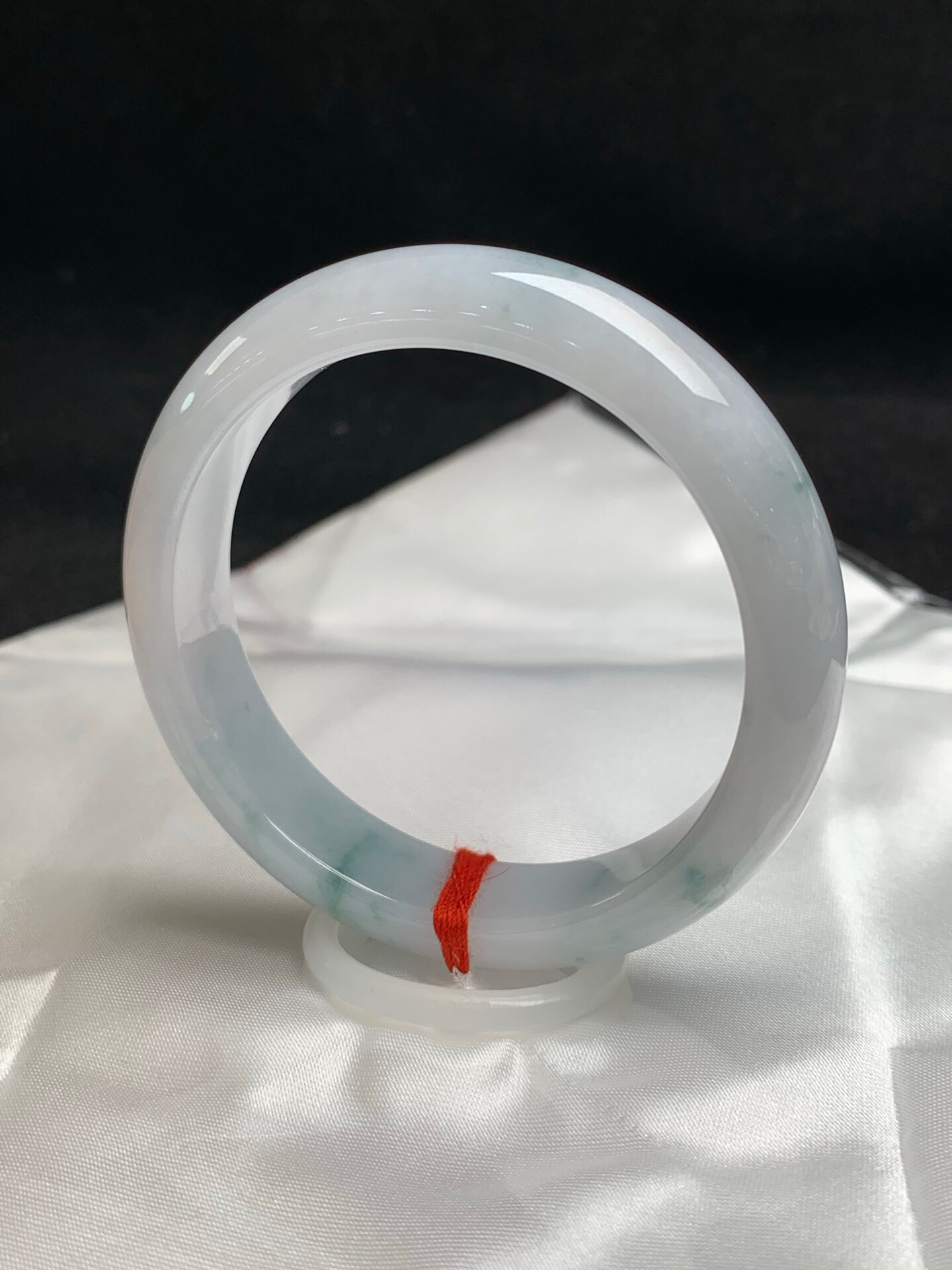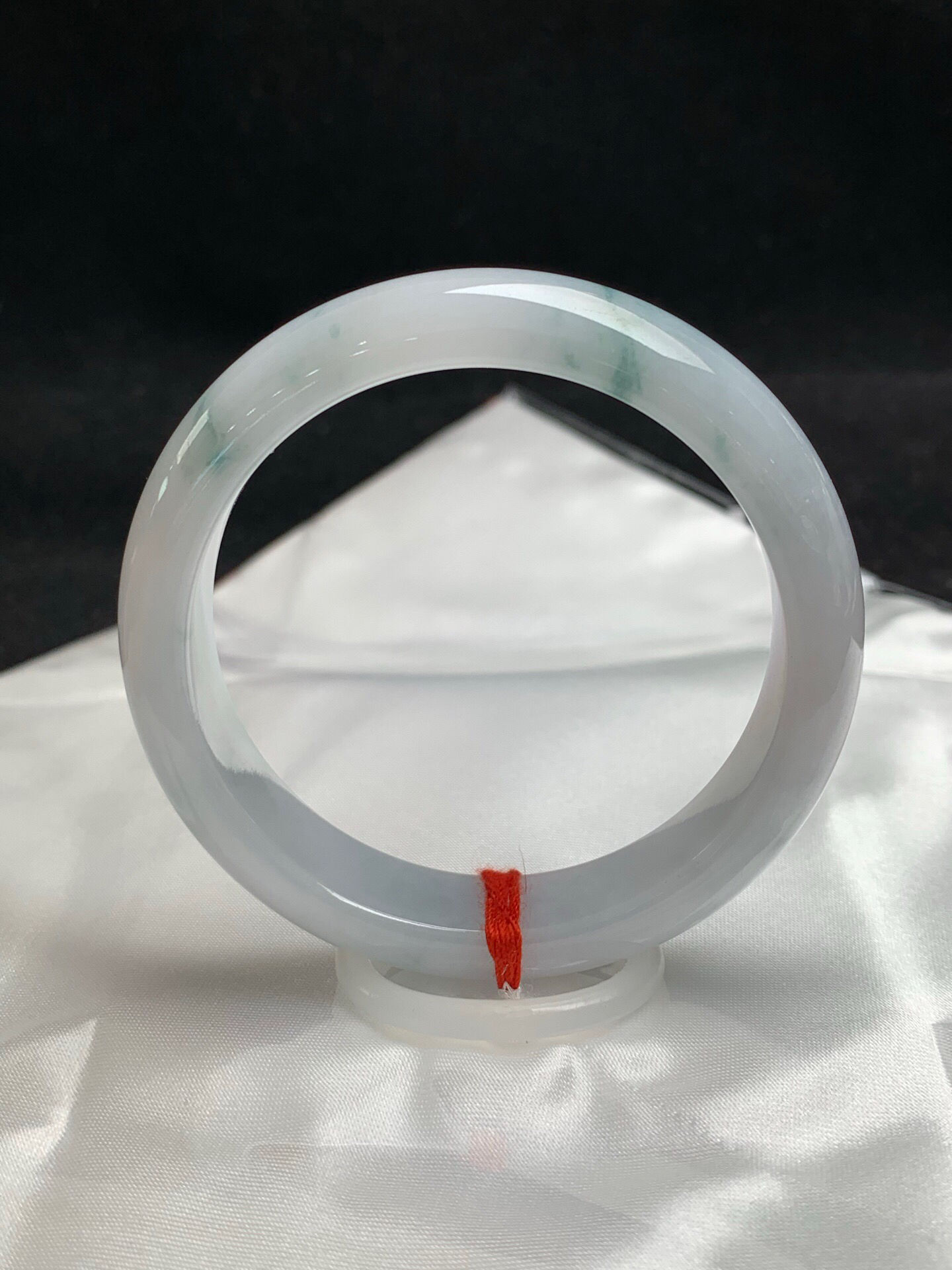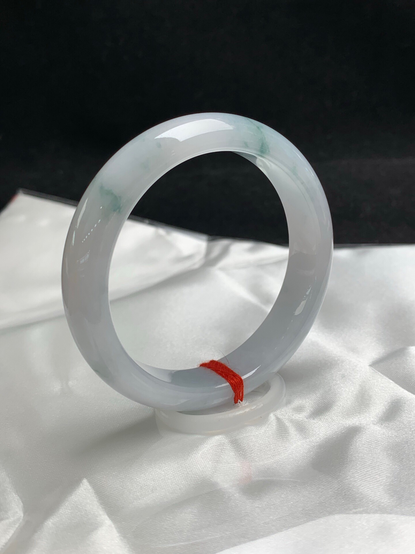 612449,52圈口细糯飘花正圈平安镯,白底飘蓝花,底子细润,清爽完美,尺寸:52-12.3-7.5,💰5250 #优石客珠宝 #香玉荟萃