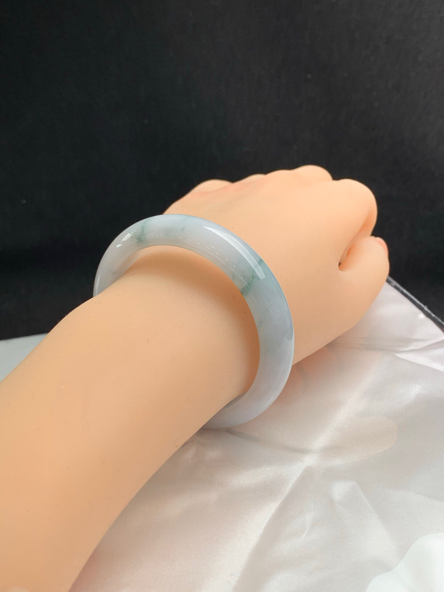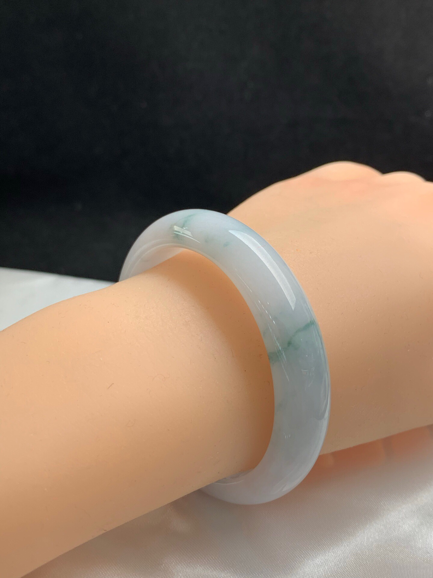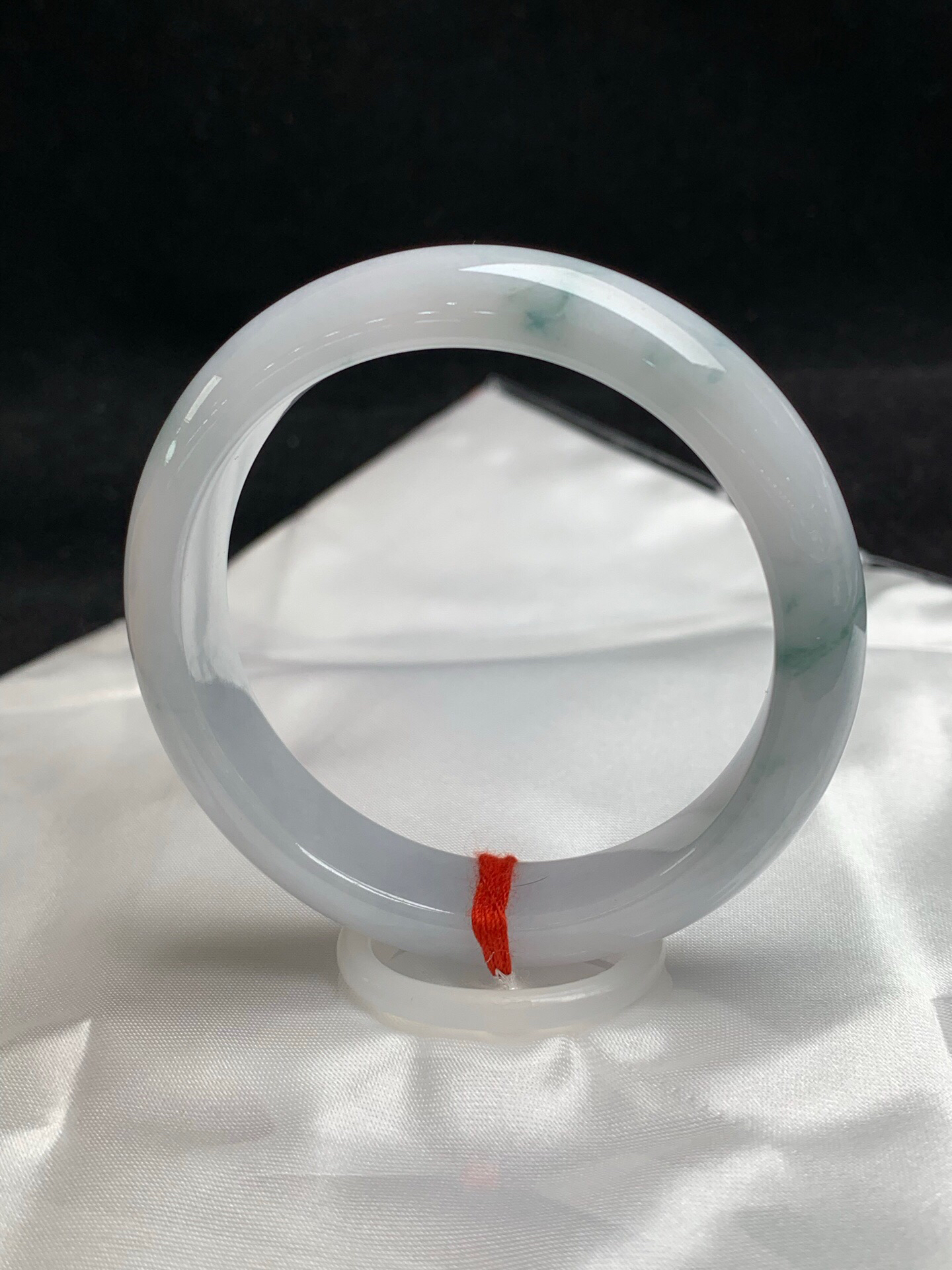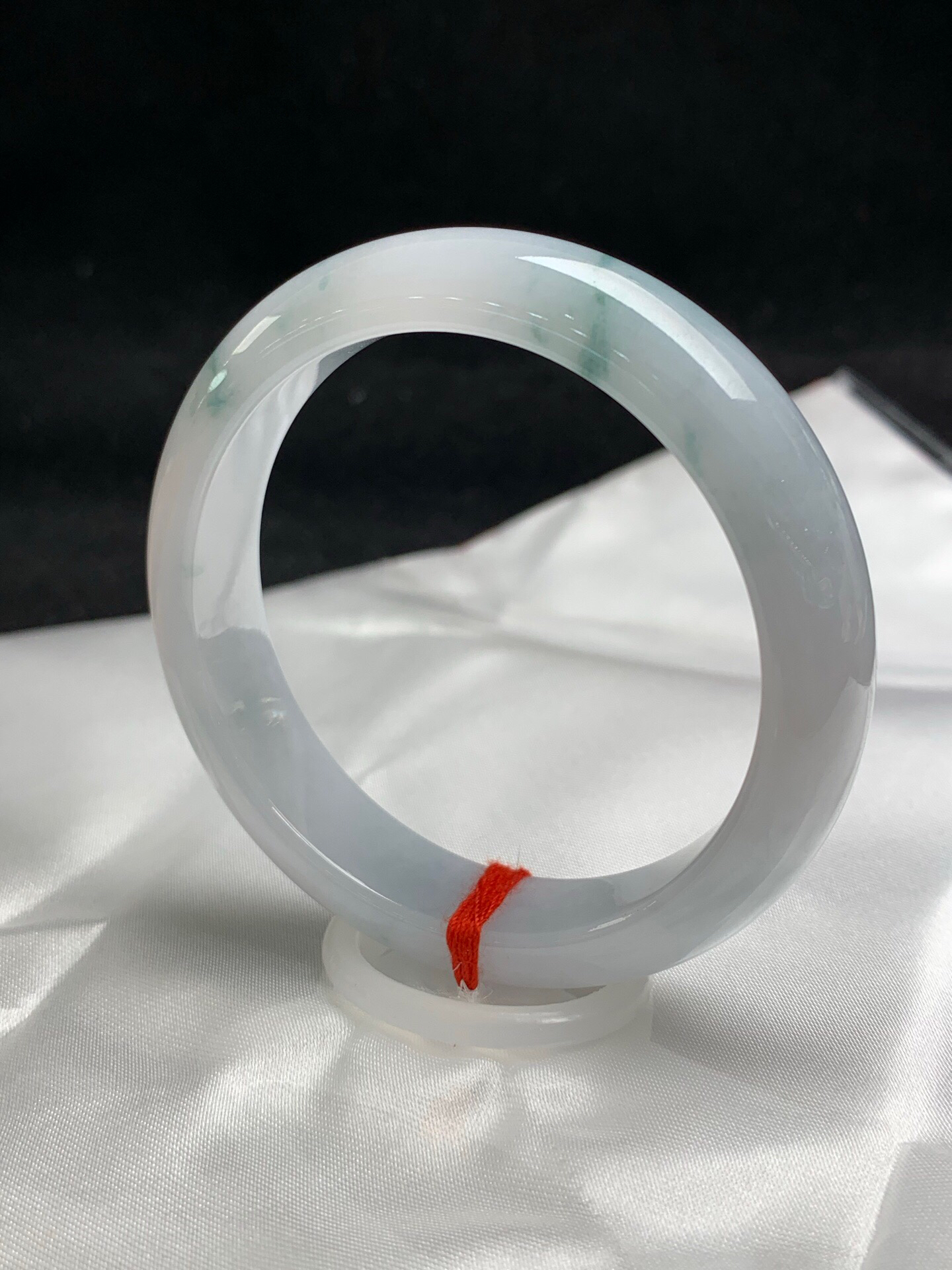 612449,52圈口细糯飘花正圈平安镯,白底飘蓝花,底子细润,清爽完美,尺寸:52-12.3-7.5,💰5250 #优石客珠宝 #香玉荟萃