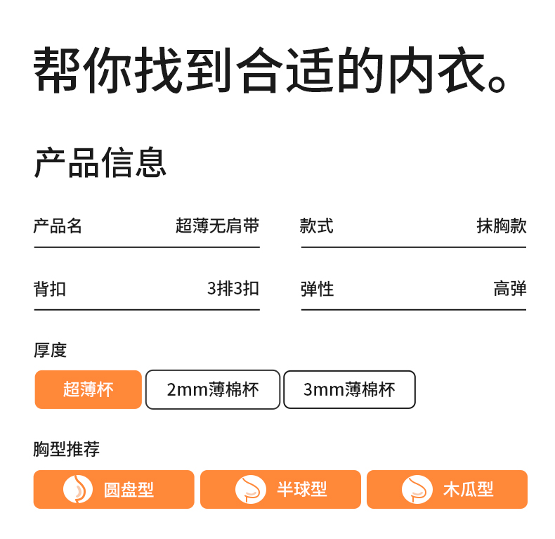 【零感超薄无肩带文胸】抹胸裹胸防滑轻薄大胸内衣