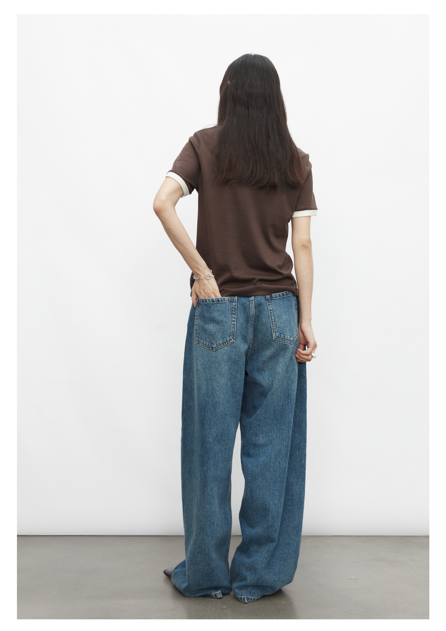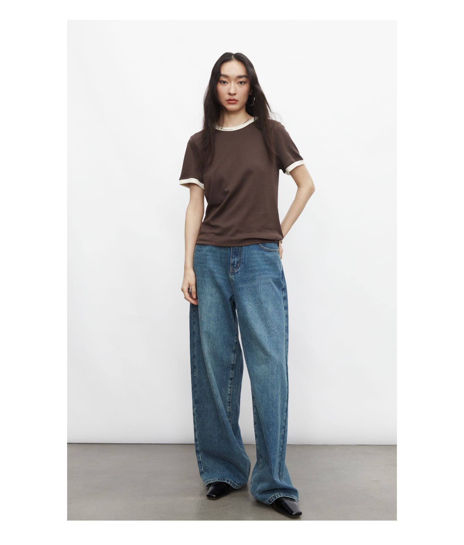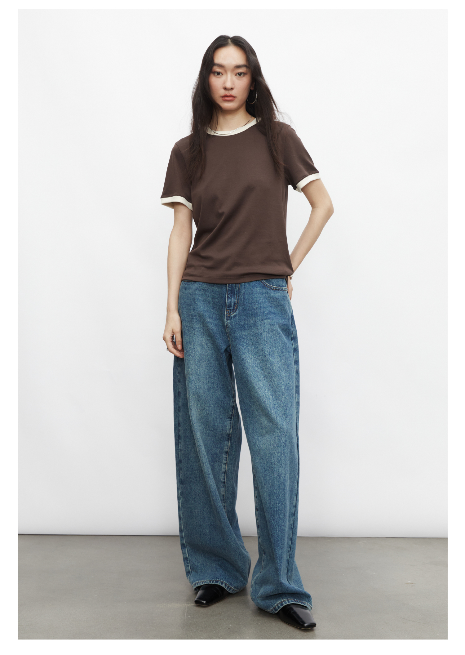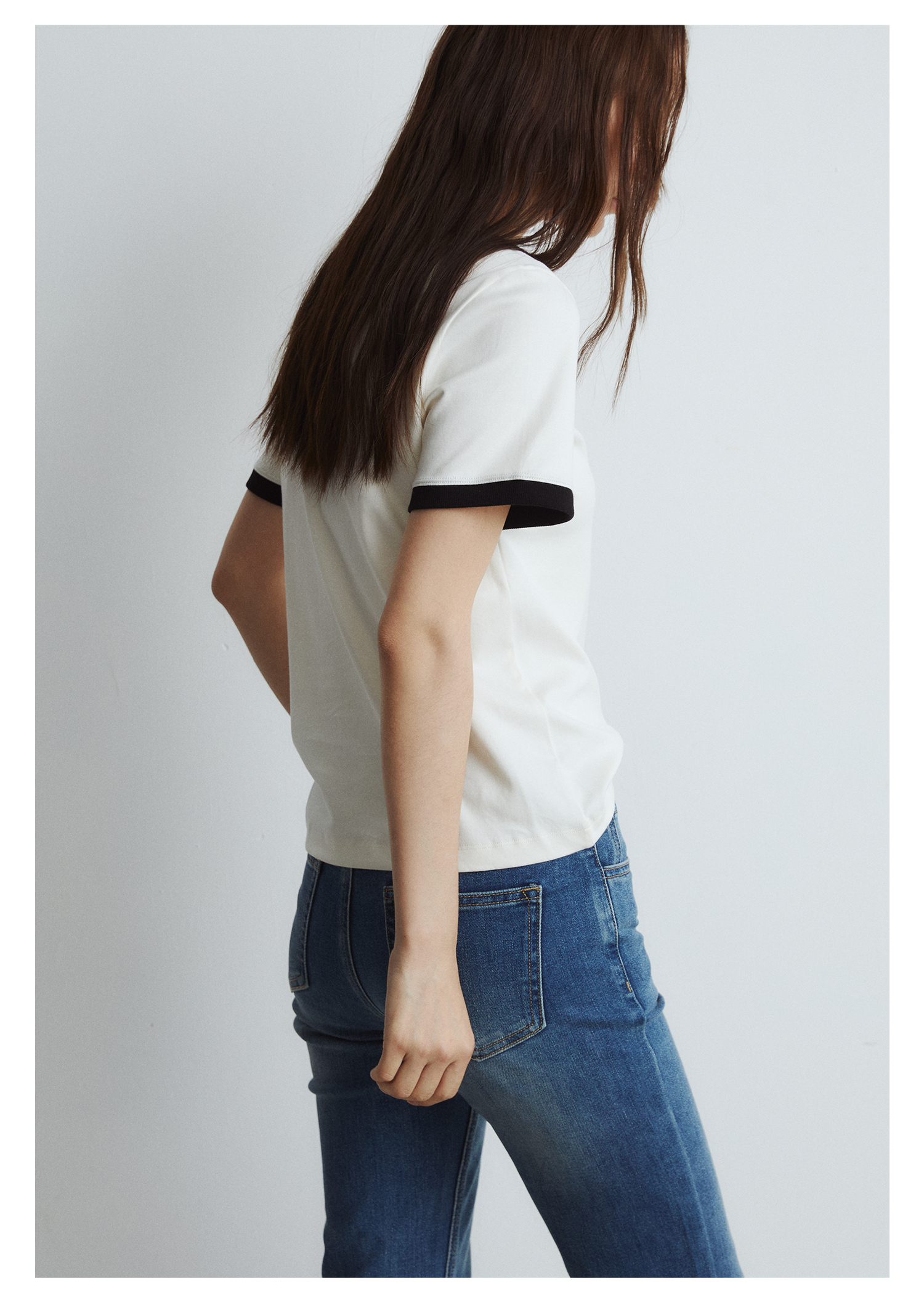 棉仓3431501010 24SS夏季新品多色镶边短袖T恤女真丝棉打底上衣
