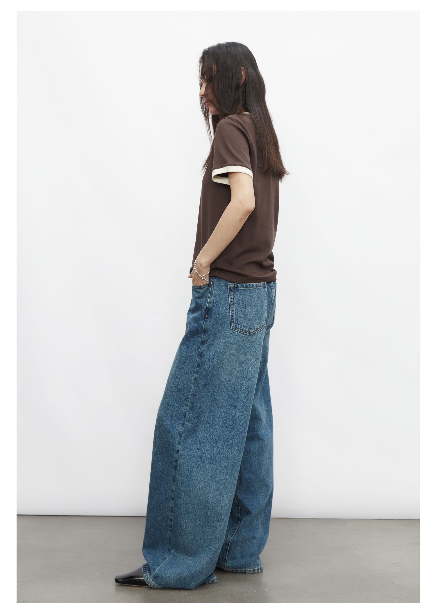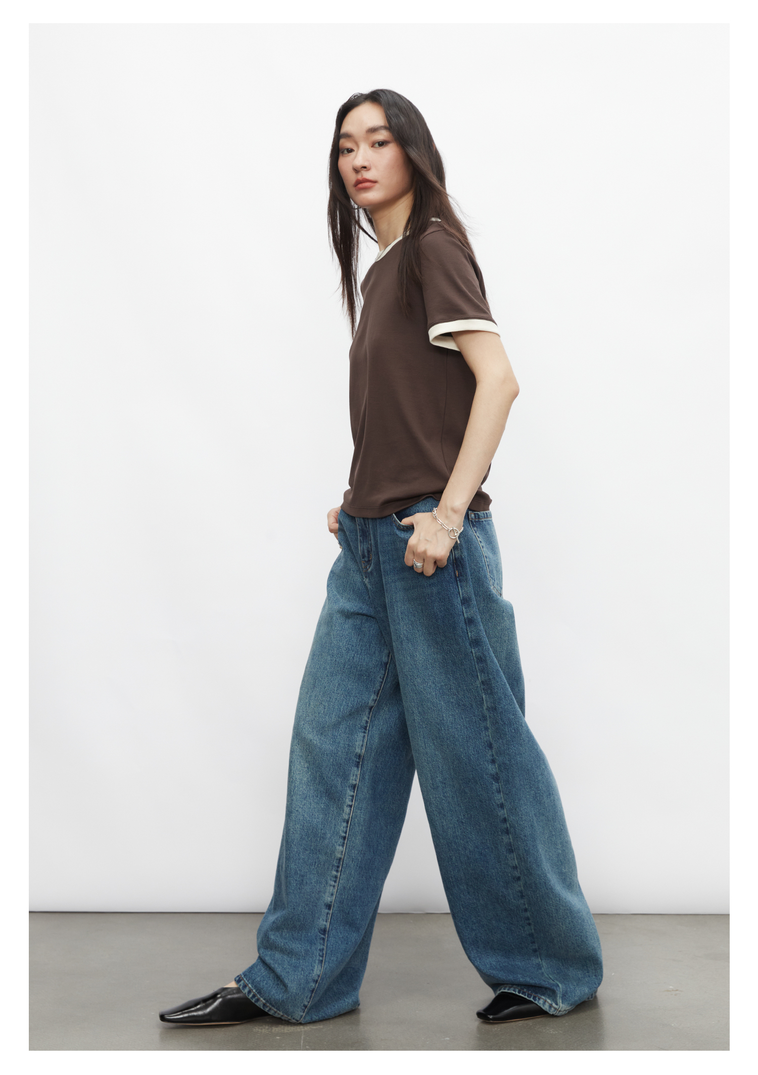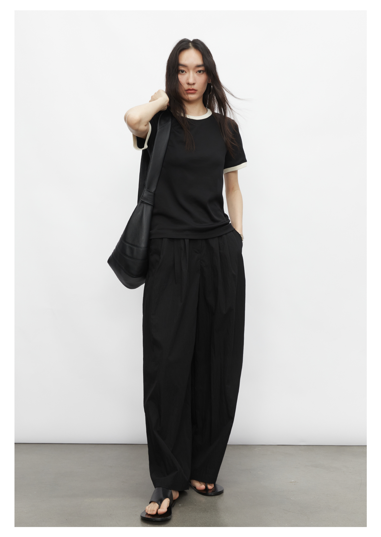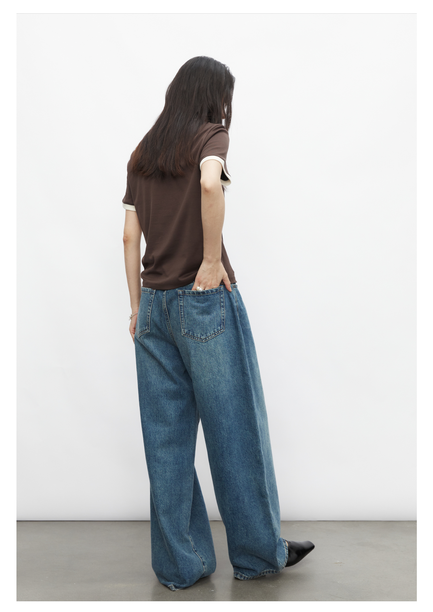 棉仓3431501010 24SS夏季新品多色镶边短袖T恤女真丝棉打底上衣