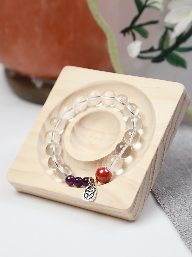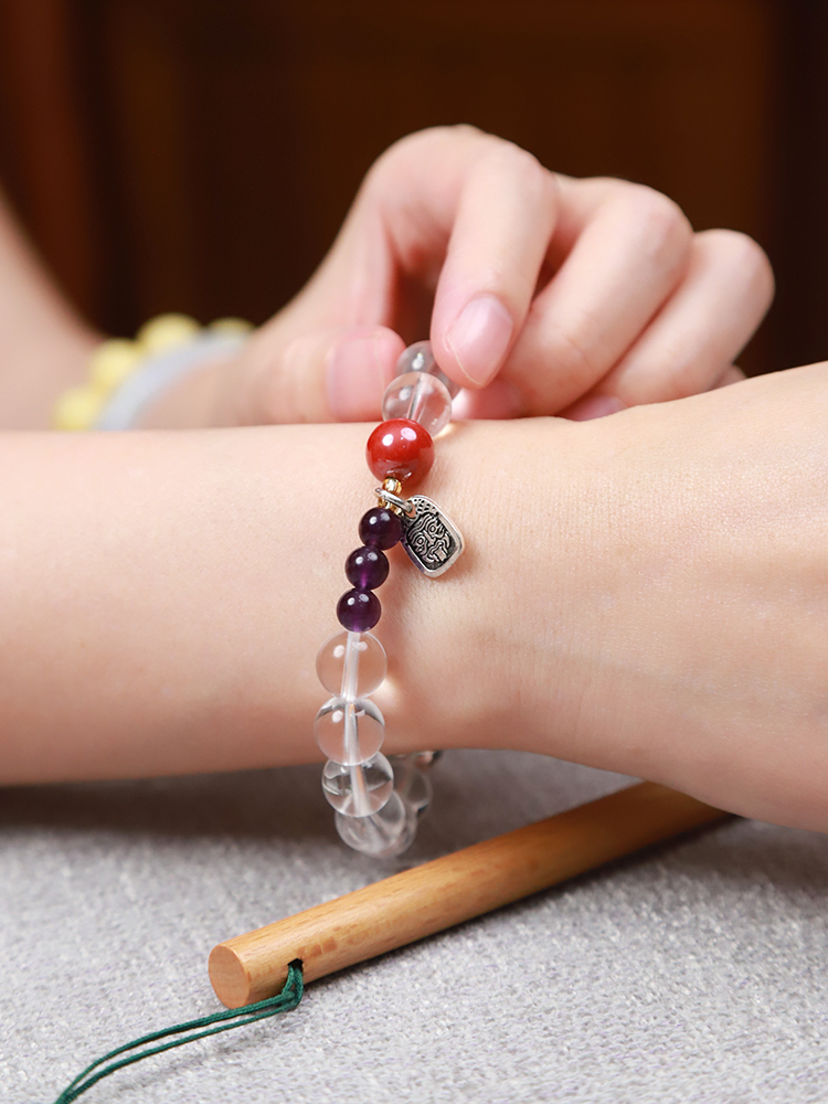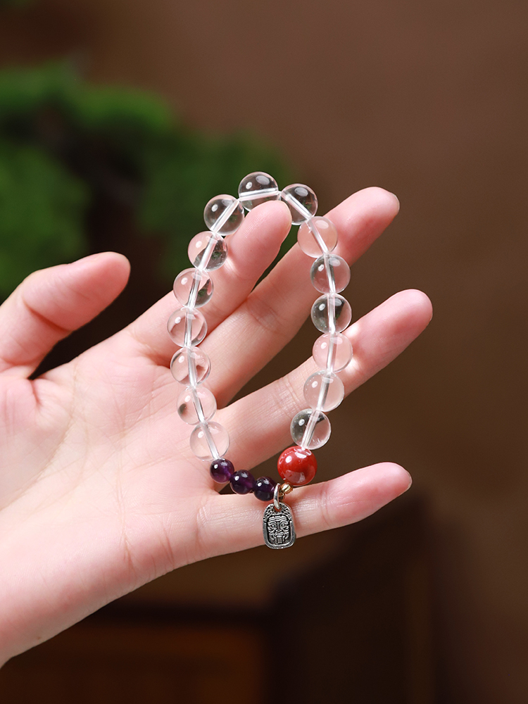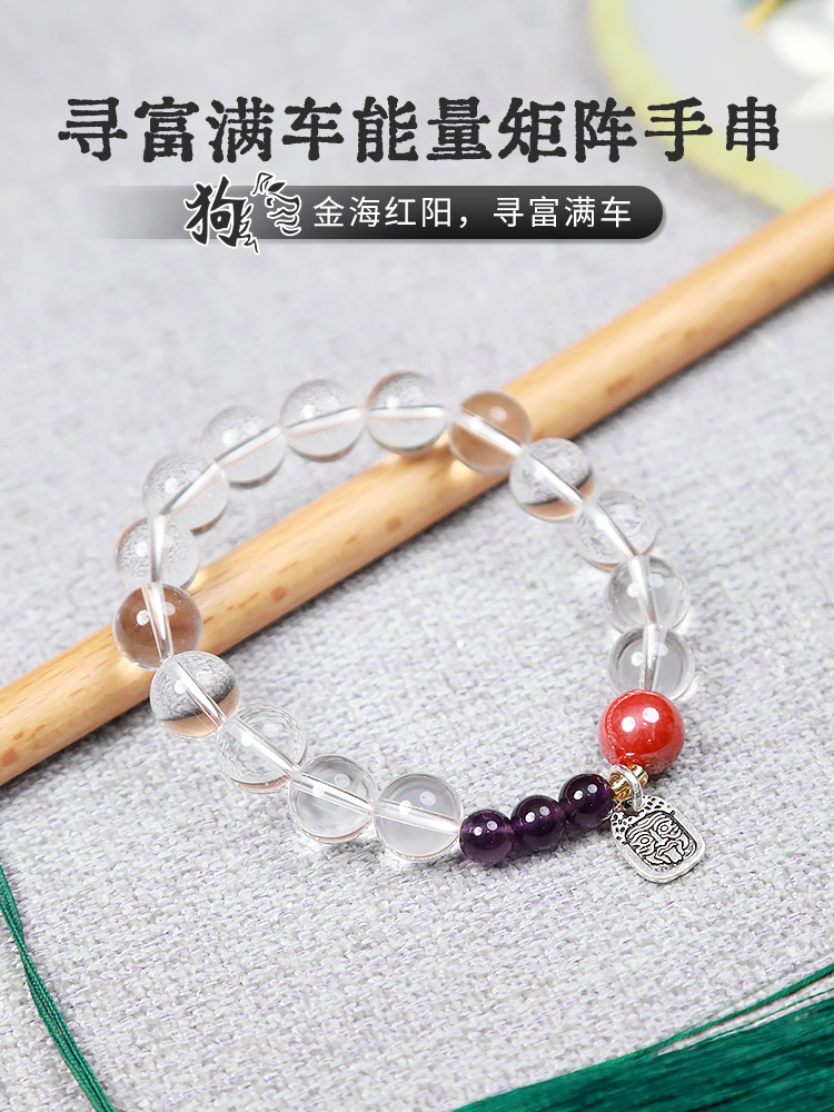 【2025年十二生肖手串】狗女 能量矩阵“寻富满车”白水晶朱砂水晶手串手链 女士单圈手串配饰【狗女-建议戴右手】