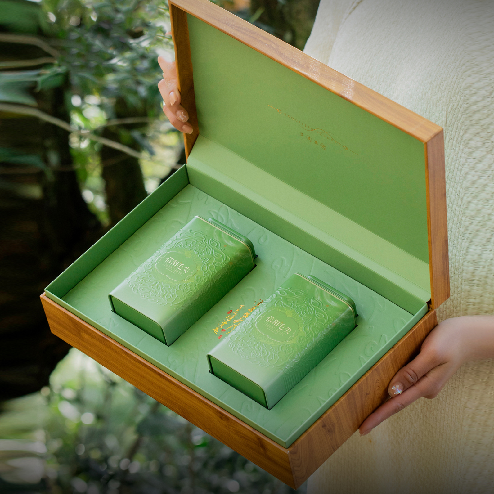 景致【绿.滴塑面.2听毛尖】25元1套.整箱16套