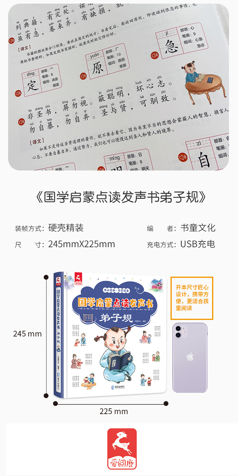 弟子规国学启蒙点读发声书早教幼儿点读发声书3-6岁会说话的早教有声书宝宝轻松点读启蒙认知学习神器有声读物点读书自主阅读亲子